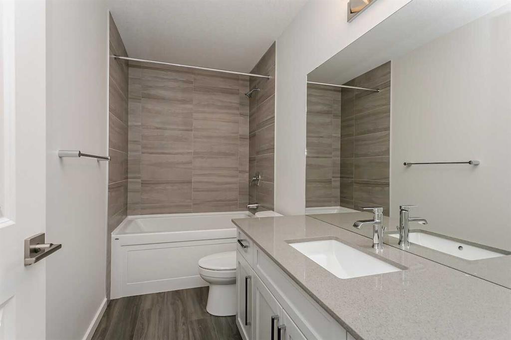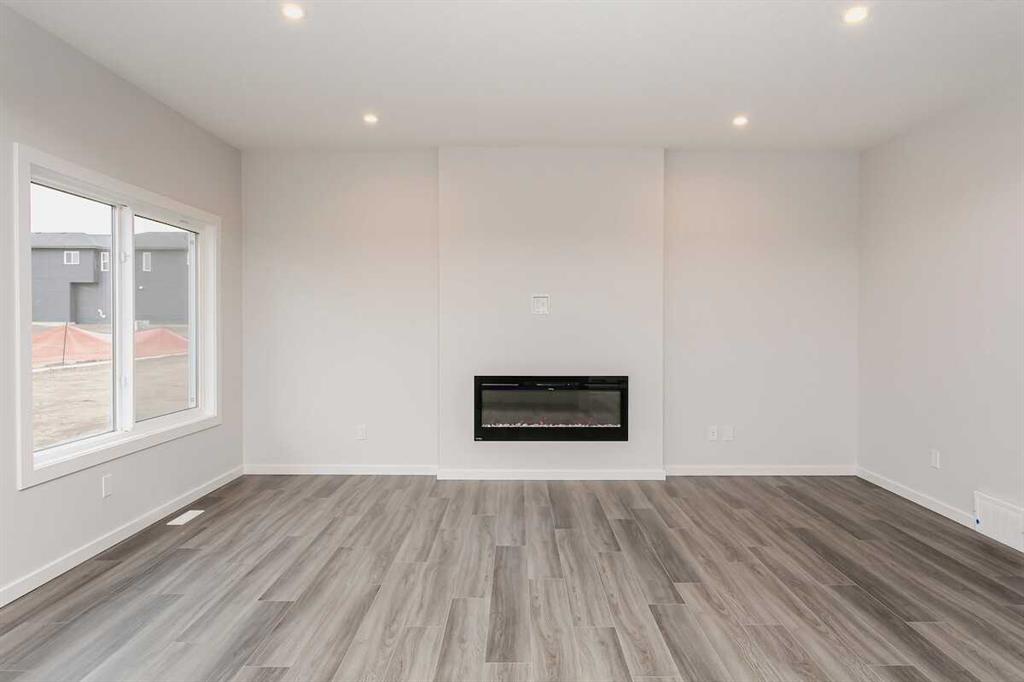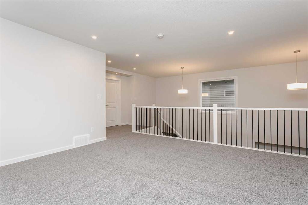Welcome to this Bedrock Homes quick possession, ideally located on a premium corner lot in the vibrant Heartwood community of SE Calgary. Offering over 2,500 sq ft of thoughtfully designed living space, this home features a central flex room perfect for a home office or guest area, and a striking open-to-below staircase that fills the home with natural light. The chef’s kitchen is equipped with built-in microwave, chimney hood fan, and a large island that opens to the dining area and great room—ideal for entertaining. A 50” electric fireplace adds warmth and style, while metal spindle railings and custom melamine shelving elevate the finish throughout. Upstairs, enjoy a spacious bonus room and retreat to the luxurious primary bedroom featuring a freestanding tub, tiled shower, dual sinks, and private water closet. Complete with a walk-through mudroom and pantry and double attached garage, this home offers exceptional comfort, design, and location close to amenities and parks. Photos are representative.