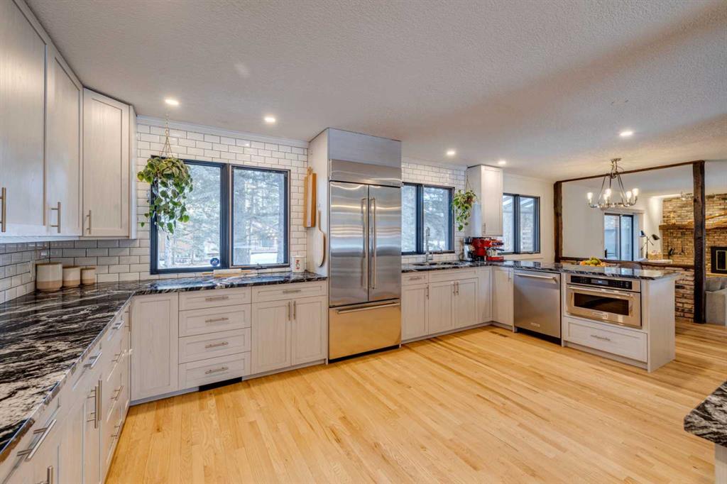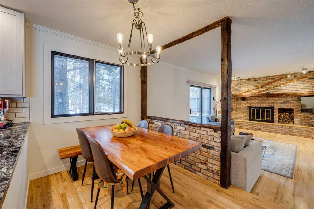 Welcome to this beautifully updated home on a spacious, treed corner lot on the quiet side in the heart of Redwood Meadows! Step inside and you’ll immediately notice the inviting flow and many thoughtful features. The main level boasts a large kitchen with high-end stainless-steel appliances, warm hardwood floors, two stunning brick fireplaces, and an open layout that’s perfect for both relaxing and entertaining. A well-positioned den adjacent to a newly renovated 3 pc bathroom off the foyer offers flexibility for a home office or guest space. Upstairs, you’ll find a generous primary suite with a stylish en-suite bath, along with a second bedroom and additional upgraded bathroom. The home’s character shines through with custom finishes and quality craftsmanship throughout. One of the newest additions is the large, charming front mud room, a practical and stylish space that makes coming home a delight after your outdoor pursuits to drop off your gear for all the seasons. Outside, enjoy a large private well maintained natural country yard with mature trees, a covered rear deck, river rock fire pit and sunny front patio to soak in the great outdoors. There is a versatile shed complete with its own verandah, ideal for storage or a creative retreat. Redwood Meadows offers a vibrant community with amenities including a golf course, tennis and basketball courts, and easy access to the Elbow River. Plus, you’re just steps from trails for hiking, biking, and cross-country skiing. This home combines comfort, functionality, and a touch of rustic elegance, don’t miss this chance to make it yours!
