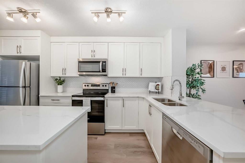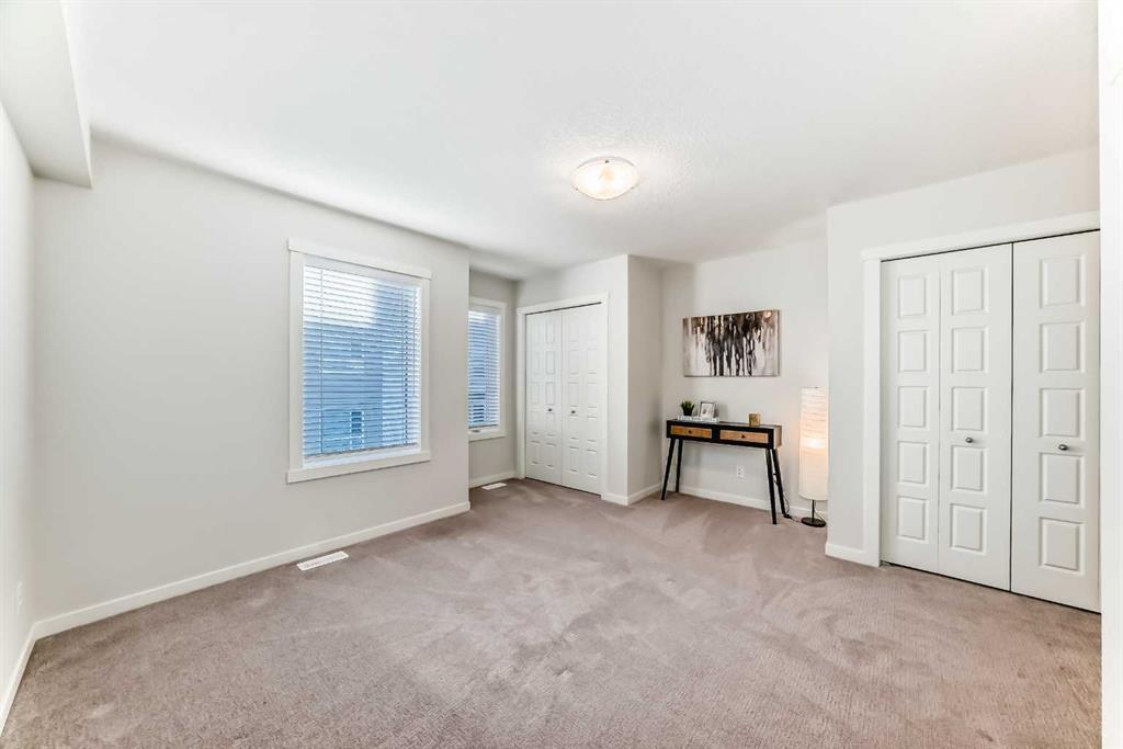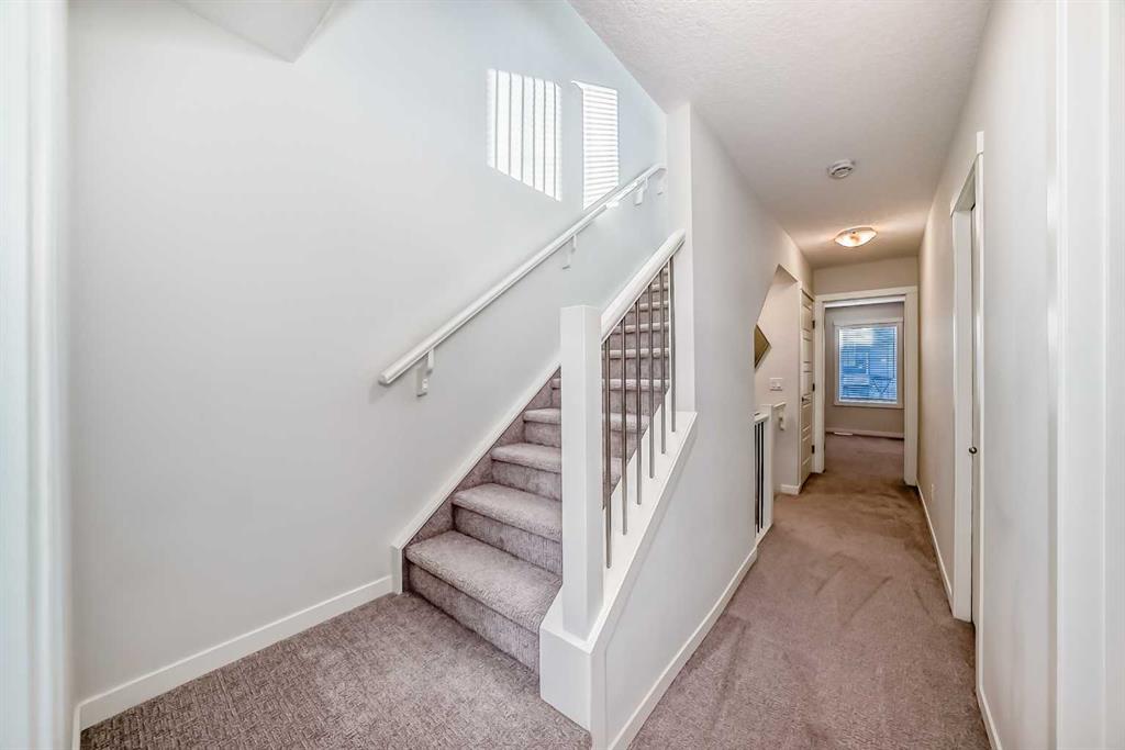 Meet your elevated escape! This like-new, pet-friendly townhome offers chic, low-maintenance living with low condo fees and almost 1400 sq ft of thoughtfully designed space. The home features 2 spacious primary bedrooms, each with its own ensuite, plus a convenient main-floor powder room and a versatile bonus room - perfect for an additional bedroom, home office, kid's play area, etc. The bright, modern interior of this beautiful home showcases white cabinetry and white quartz countertops throughout plus stainless steel appliances, an upgraded kitchen backsplash, and a kitchen island that adds extra storage and workspace. A breakfast bar makes casual meals easy, while a dedicated dining room is perfect for entertaining. Upgraded window coverings and a smart mix of laminate and carpet flooring will make a stylish statement that you can be proud of. The upper-floor laundry adds everyday convenience while central air conditioning keeps things comfortable year-round. Relax and finish the day on your large, private rooftop patio with mountain view - ideal for enjoying summer evenings with family and watching sunsets with that special someone. Located in amenity rich Seton, your new home is walking distance to numerous restaurants, dental clinic, pharmacy, nail salon, gas station, gym, playground and the Seton Homeowner's Association. Immediate possession, Move-in ready, 'Like-New' condition, and packed with an array of lifestyle perks, this home truly lives large!