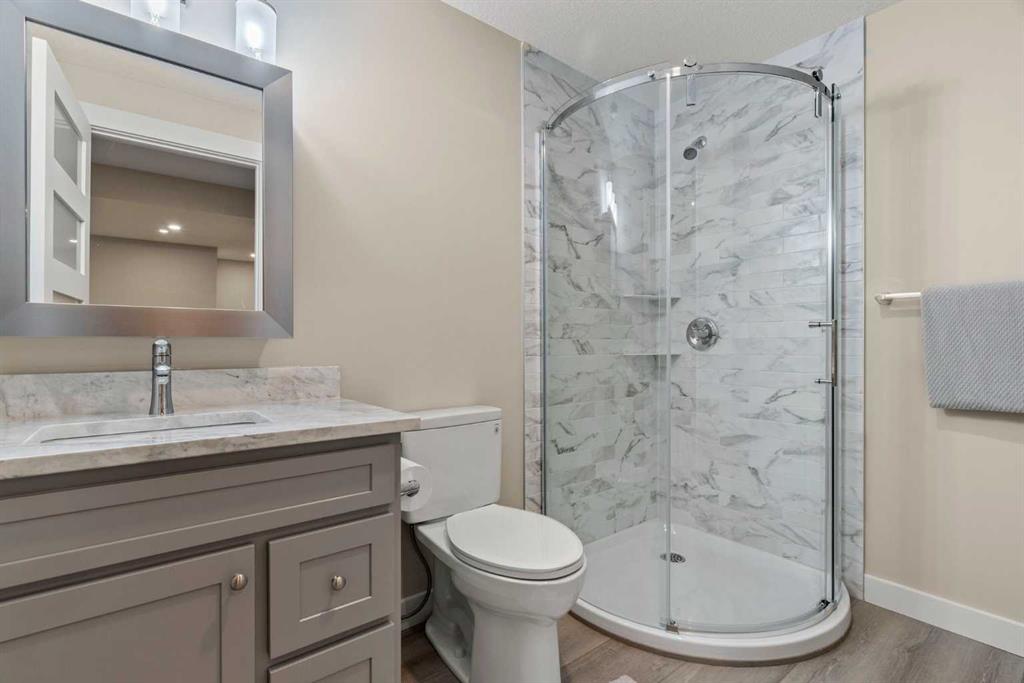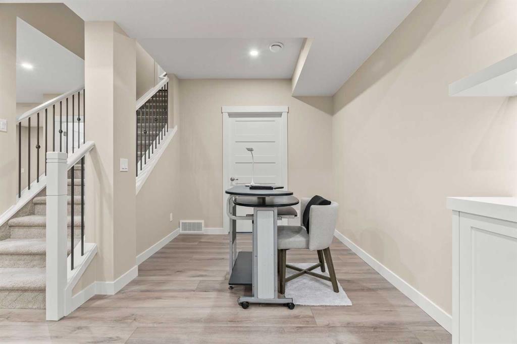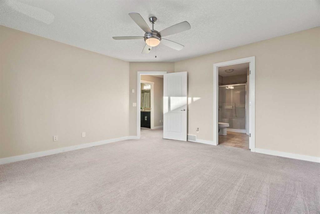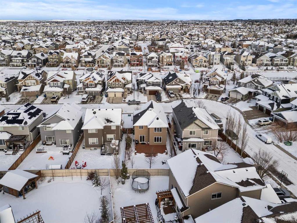 Immaculate, beautifully upgraded, and ideally located on a quiet crescent, this stunning home in Airdrie’s sought-after Bayside community offers the perfect blend of comfort, functionality, and long-term potential—just steps from scenic canals, walking paths, and a nearby elementary school. With nearly 2,000 sq ft above grade plus a fully developed basement, this 3-bedroom, 3.5-bathroom home is designed for modern family living. The bright main level features 9 ft ceilings, hardwood flooring, and an open-concept layout centered around a cozy gas fireplace. The kitchen is both stylish and practical, offering quartz countertops, maple cabinetry, stainless steel appliances, and ample storage and prep space. A main-floor office/den adds valuable flexibility—ideal for working from home or creating a private study. Upstairs, you’ll find a spacious bonus room, convenient upper-floor laundry, and three generous bedrooms. The primary suite is a true retreat, complete with a walk-in closet, soaker tub, and separate shower. The fully developed basement adds even more versatility and includes a separate entrance with private foyer, offering excellent potential for future suite development (subject to City of Airdrie guidelines). Additional updates include a new gas on-demand hot water system for improved efficiency and peace of mind. Outside, enjoy the sunny south-facing backyard featuring a full-width cedar deck and beautifully landscaped yard—perfect for summer BBQs and relaxing evenings. With access to over 6 km of walking paths and the scenic canals of Bayside, this is a home and lifestyle you’ll love. Move-in ready and filled with upgrades in one of Airdrie’s best family communities—book your private showing today!
