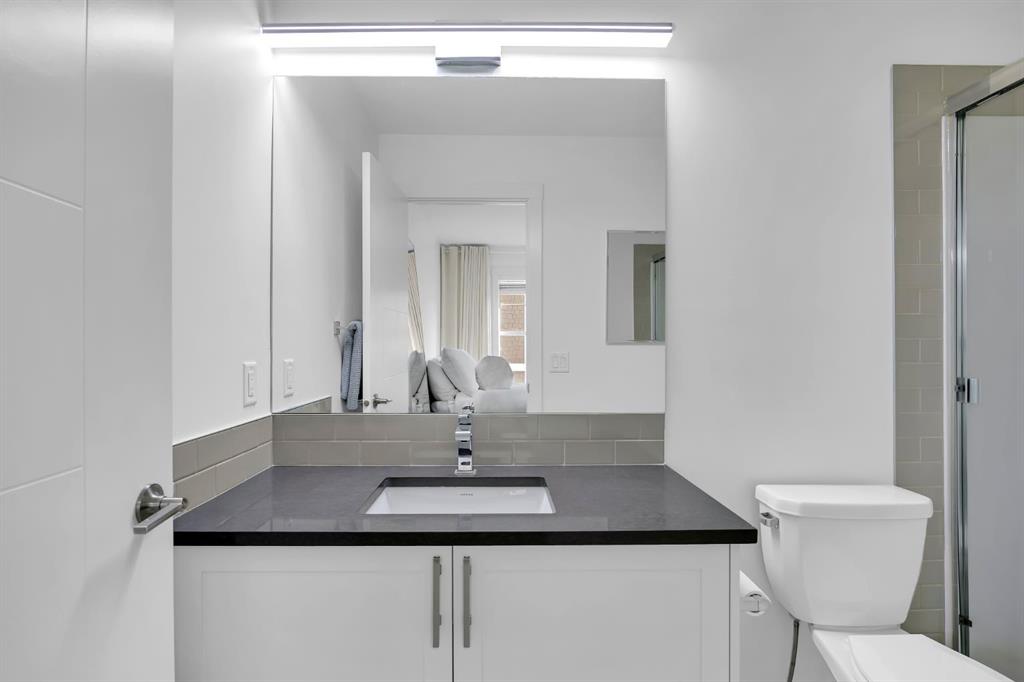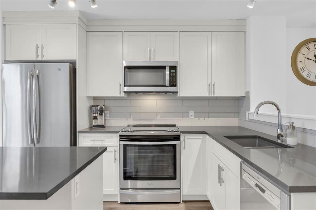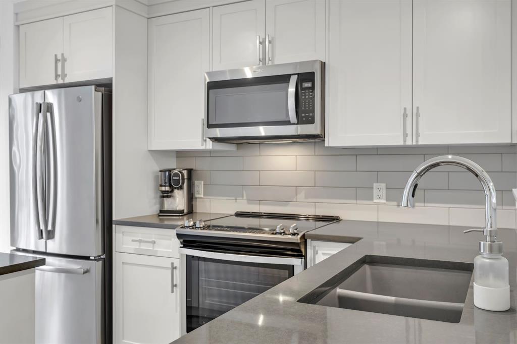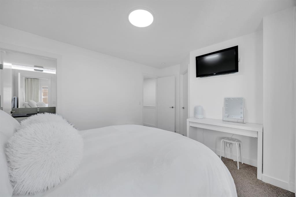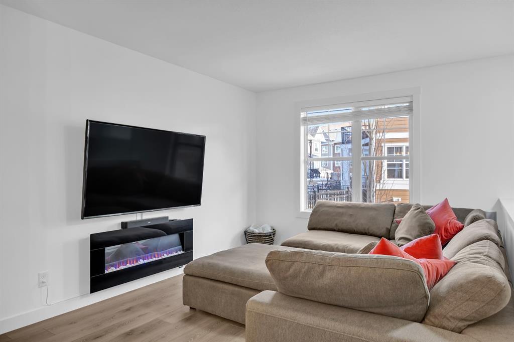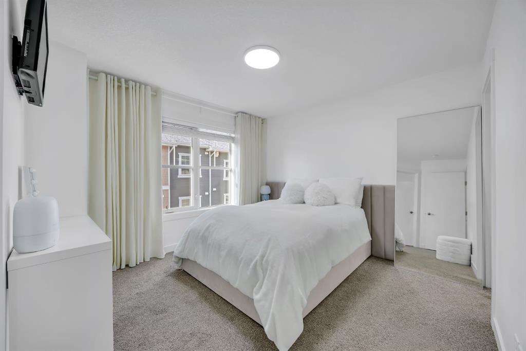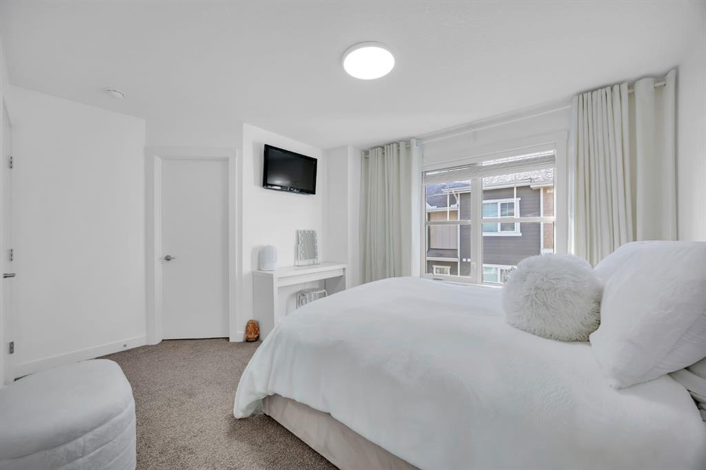 Welcome to this like-new, beautifully maintained townhome offering 2 bedrooms, 2.5 bathrooms, and over 1,200 sq. ft. of thoughtfully designed living space, complete with a private double attached garage. Located in a quiet building, this home is the perfect blend of comfort, function, and stylish upgrades. The bright, open main level features a spacious living room with a cozy fireplace, ideal for relaxing evenings. The kitchen is both timeless and practical with bright cabinetry, quartz countertops, a subway tile backsplash, stainless steel appliances (including a slide-in range), and a large island with seating, perfect for entertaining. You’ll also love the smart storage throughout, including pull-out drawers in the kitchen cabinetry and under-stair storage with added shelving/built-ins. Step outside to enjoy your outdoor space with a BBQ gas line, making summer evenings effortless. Upstairs, you’ll find two spacious primary bedrooms, each complete with a walk-in closet and its own ensuite. The stacked upper-floor laundry makes day-to-day living convenient. Added touches like closet organizers, upgraded lighting throughout, and thoughtful bathroom updates (including updated towel bars and toilet paper holders) elevate the home’s feel. The basement offers additional flexible space and storage, perfect for keeping everything organized. Additional upgrades include central A/C, and a fully finished garage featuring an epoxy floor, finished and painted walls, and a garage heater, a standout feature for Calgary winters. This home is ideally located close to the Bow River with extensive pathways and beautiful scenery. Everyday amenities are also close, with quick access to major roads for an easy commute. This townhome is an incredible opportunity to own a well-cared-for, move-in-ready property.