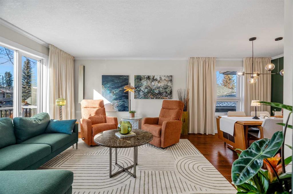 Welcome to 4636 Montana Drive NW, a meticulously maintained and thoughtfully updated 4 bedroom, 3 bathroom home on a rare oversized lot in the highly sought-after NW Calgary community of Montgomery, where homes on this street are rarely offered for sale. Ideally located minutes to downtown, University District, Market Mall, Foothills Hospital, and Alberta Children’s Hospital. The main level offers a spacious living room that flows naturally into the dining area, which features an electric fireplace, creating a warm and functional layout for everyday living and entertaining. The kitchen is a true highlight of the home, thoughtfully designed for both function and connection. It features quartz countertops, a large custom island, built-in bench seating, upgraded appliances including a gas stove, and excellent flow directly into the sunroom. The sunroom offers additional flexible living space with large windows, wood ceiling detailing, and a natural gas fireplace, creating a bright and comfortable extension of the main floor. Two generous bedrooms on this level provide excellent flexibility, including a spacious primary retreat with a beautifully renovated five-piece ensuite. The second bedroom has been thoughtfully reimagined as an expansive custom walk-in dressing room connected to the ensuite, creating a boutique-style primary retreat, while still offering the flexibility to function as a secondary bedroom if desired, and is conveniently located near the four-piece main bathroom featuring a jetted tub. The fully developed lower level adds significant flexibility. A large family room offers generous space for movie nights, games, or a second living area. Two additional well-sized bedrooms are complemented by a thoughtfully designed bathroom with a private vanity room and a separate enclosed shower. A spacious laundry area and ample storage complete the level. The outdoor space is equally impressive. A long paved driveway, rear RV parking, and a fully fenced yard provide exceptional usability of the lot. Mature trees and established landscaping create a sense of privacy and permanence. A two-person Spaberry hot tub and large poly shed are included. Two heated garages and further enhance the functionality of the property. The newer 24’x33’ oversized rear garage is fully insulated and heated and offers excellent space for parking, workshop use, hobbies, or organized storage, including metal shelving. The second 16’x24’ heated garage is currently set up as a gym and provides additional flexible space depending on lifestyle needs. This dual-garage setup is a rare offering. Additional features include air conditioning, on-demand hot water system, water softener, security system, and thoughtful storage throughout. Backing onto green space and within walking distance to an off-leash park, playgrounds, shops, restaurants, and everyday amenities, this property offers space, character, and flexibility in one of NW Calgary’s most desirable communities.