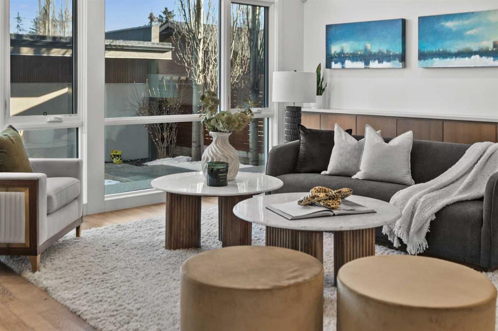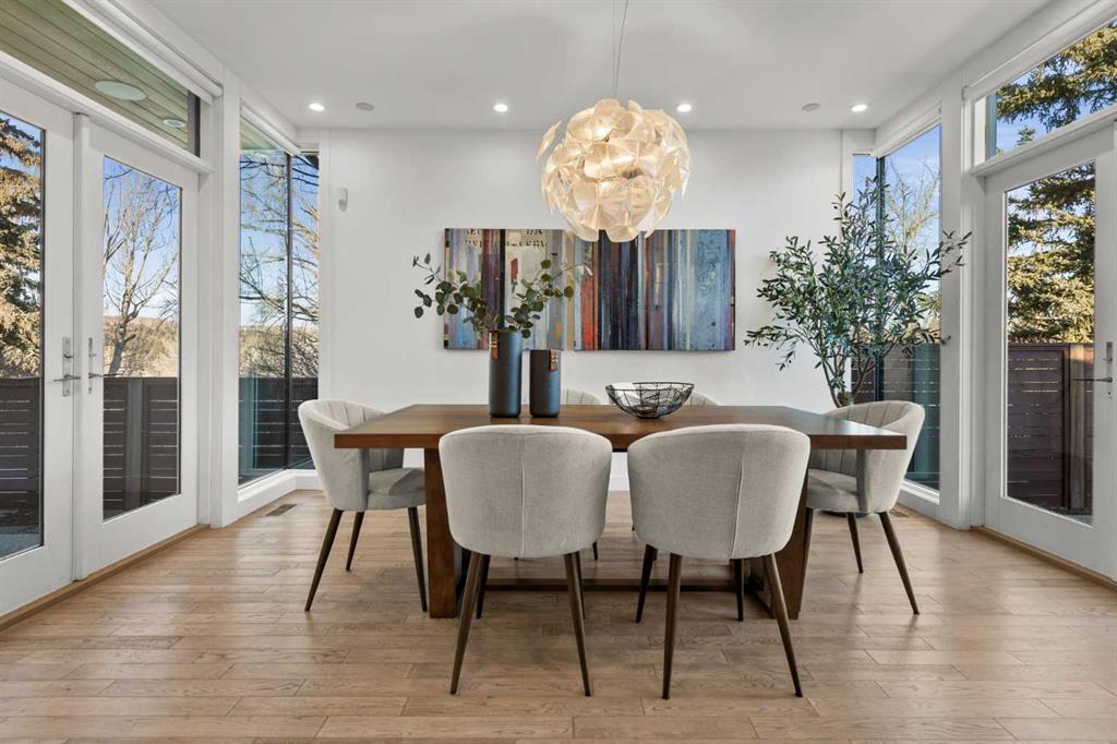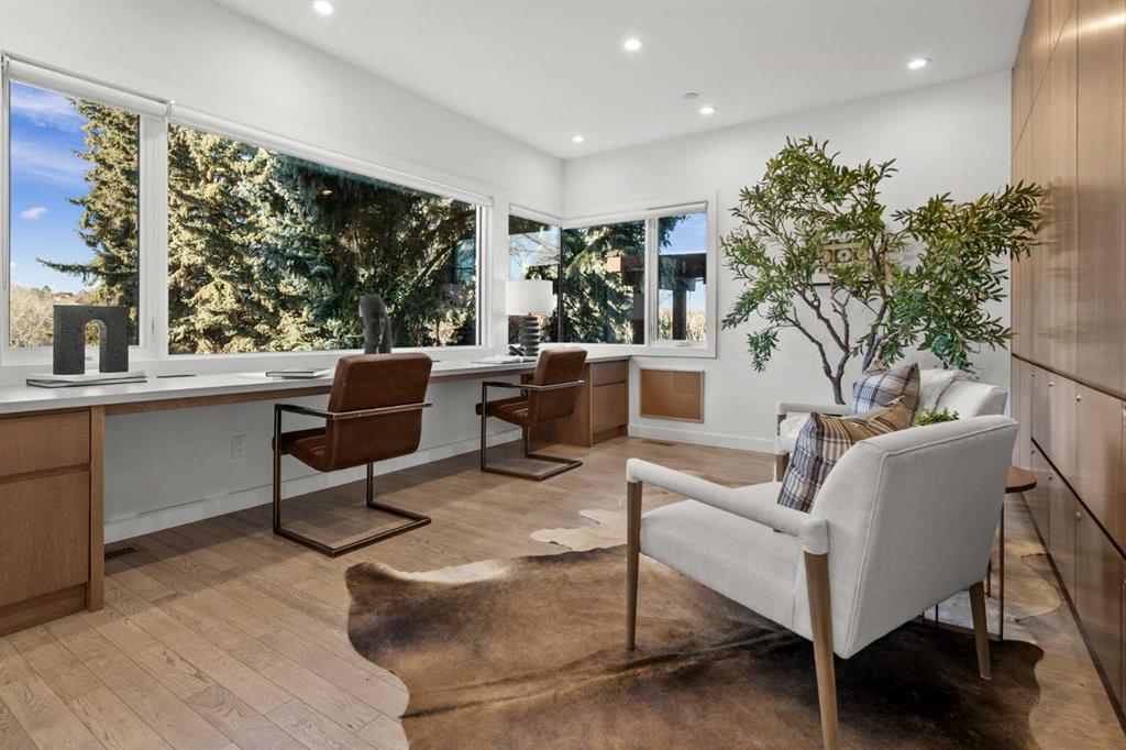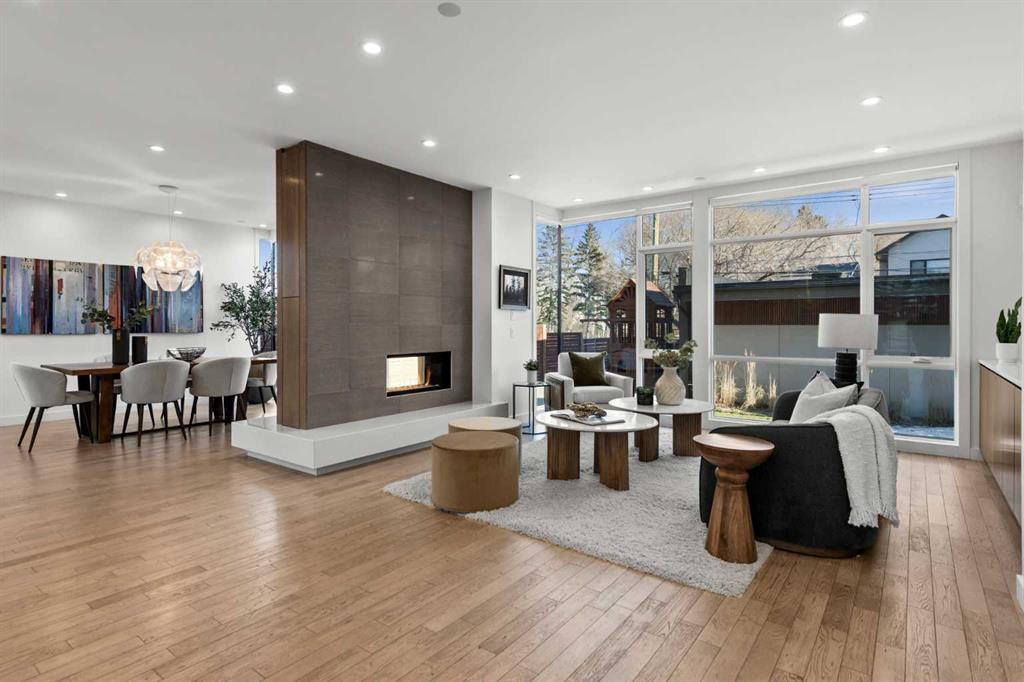 This custom Alloy architectural masterpiece offers over 4,500 sqft of thoughtfully designed living space on a prime 50’ x 120’ inner-city lot in the highly desirable community of Mount Pleasant. The home is ideally positioned at the end of a quiet street with west-facing views overlooking Confederation Park. Designed for both everyday living and elevated entertaining, the home blends exceptional architecture, premium construction, and seamless indoor–outdoor flow. The main level features an open-concept layout with 9’ ceilings, floor-to-ceiling windows, and expansive glazing that floods the living, dining, and kitchen spaces with natural light. A spectacular chef’s kitchen anchors the home, showcasing custom solid wood quarter-sawn cabinetry to the ceiling, Caesarstone backsplash and countertops, a large central island with seating for four, Viking 6-burner gas range, and Miele built-in appliances, complemented by a dedicated coffee station with filtered water hookup. The formal dining area opens to outdoor living spaces through two sets of French doors, while the great room is highlighted by custom built-ins and a double-sided gas fireplace with floating hearth and tile feature wall. A private home office or library overlooks Confederation Park and includes extensive built-ins and lockable file cabinetry. The main level is completed by a thoughtfully insulated powder room, generous storage, a functional mudroom with lockers and exterior-vented closet, and an oversized walk-in pantry with stand-up freezer and wine fridge provision. Upstairs, the primary retreat offers stunning park views, his-and-hers walk-in closets, and a spa-inspired ensuite fully tiled throughout, featuring heated floors, a glass-enclosed walk-in shower, double vanity, heated towel rack, and a four-person cedar sauna. Two additional bedrooms include window seats with storage and custom closets, while a large bonus room with built-in desk offers flexibility as a media space, homework hub, or future bedroom. Upper-level laundry, heated bathroom floors, and rockwool sound insulation enhance comfort and privacy. The lower level is equally impressive, with a large media room with surround sound, dedicated fitness room, large flex space, stand-alone gas fireplace, cork flooring with in-floor hydronic heating, oversized fourth bedroom, full bath, and a generous mechanical/storage room with integrated A/V tower. Outdoor living is exceptional with nearly 700 sqft of poured concrete patio space on piles, 2 natural gas hook-ups, outdoor speakers, mature trees, professional landscaping, a multi-zone irrigation system, and a children’s play structure (convertible to additional parking). Completing the property is a detached heated triple garage, built-in storage, workbench, EV-ready electrical panel, A/V connectivity, underground conduit, and a paved back lane. A rare offering combining architectural integrity, park-side living, and enduring quality.