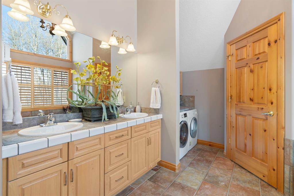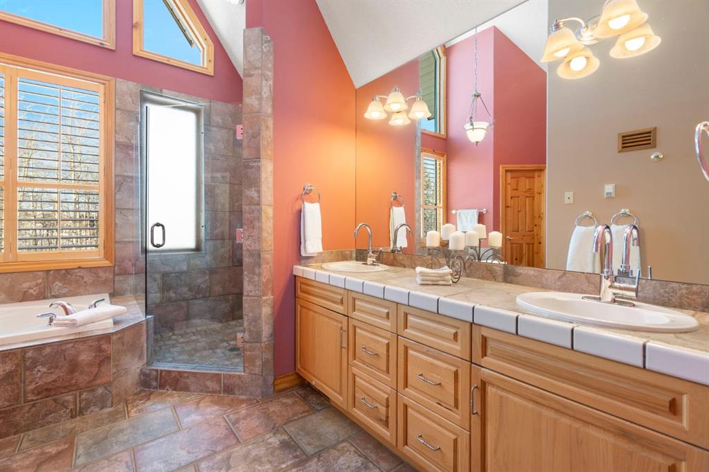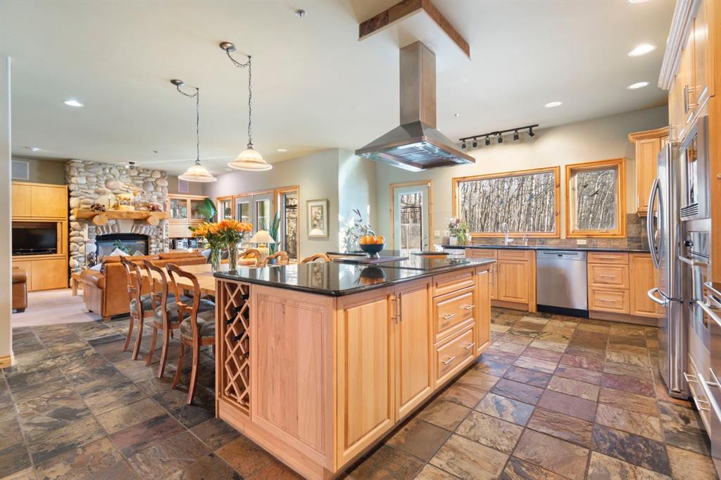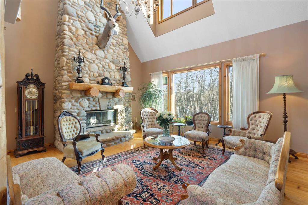 ** Watch the full CINEMATIC property tour*** Masterfully crafted by McKinley Masters, this stunning alpine residence is a celebration of rustic elegance and unparalleled craftsmanship. Nestled among towering pines on a sprawling lawn, the home exudes timeless lodge-inspired charm while offering every modern comfort. 10 min drive to all amenities in NW Calgary, and easy access to Hwy 1. The foyer adorned with hand-selected knotty pine sets the tone for the alpine detailing that flows seamlessly throughout the entire home. The living room, covered in natural light, features heated floors and a striking grand stone fireplace—a perfect gathering place for family and friends. The custom kitchen is a masterpiece of design, with a central island, hickory cabinetry, stainless steel appliances, and sweeping views of the backyard. Adjacent, for seamless entertaining and high functionality for family meals is the formal dining room, framed by exposed pine beams. This floor also has 1 oversized bedroom with 4-piece ensuite bathroom with a private entrance for ultimate flexibility. Designed for multi-generational living, the second floor offers a fully independent illegal suite with its own kitchen with eating area, laundry room 5- piece bathroom ensuite and private backyard access. All 3 additional bedrooms on this level feature vaulted ceilings, rich alpine accents, 1 with a 4-piece ensuite bathroom and another 6-piece bathroom that services the other 2 bedrooms creating a serene retreat atmosphere for all. The great room impresses with soaring ceilings, a 2nd wood burning masonry fireplace, and sun-drenched south-facing windows—an ideal space to entertain or unwind. The third-floor primary wing is a sanctuary of alpine luxury: vaulted ceilings, oversized windows, personal seating area, spacious kitchenette, private balcony overlooking lush greenery, dual walk -in closets and your own spa; five-piece bath with jetted tub, cedar lined sauna, with water access, dual vanities, separate glass door shower with frosted windows. Every detail—from hickory cabinetry and built-in shelving to expansive outdoor spaces and cedar garden plots—reflects thoughtful design and artisanal quality. The exterior elevation boasts 40 foot pine timber columns, a paved patio space, fenced in dog run, knotted pine railings, firepit, shed and landscaped cedar gardens. This estate is more than a home—it’s a celebration of alpine architecture, craftsmanship, and multi-generational living, offering a private, luxurious retreat in one of Woodlands Estates’ most coveted settings.