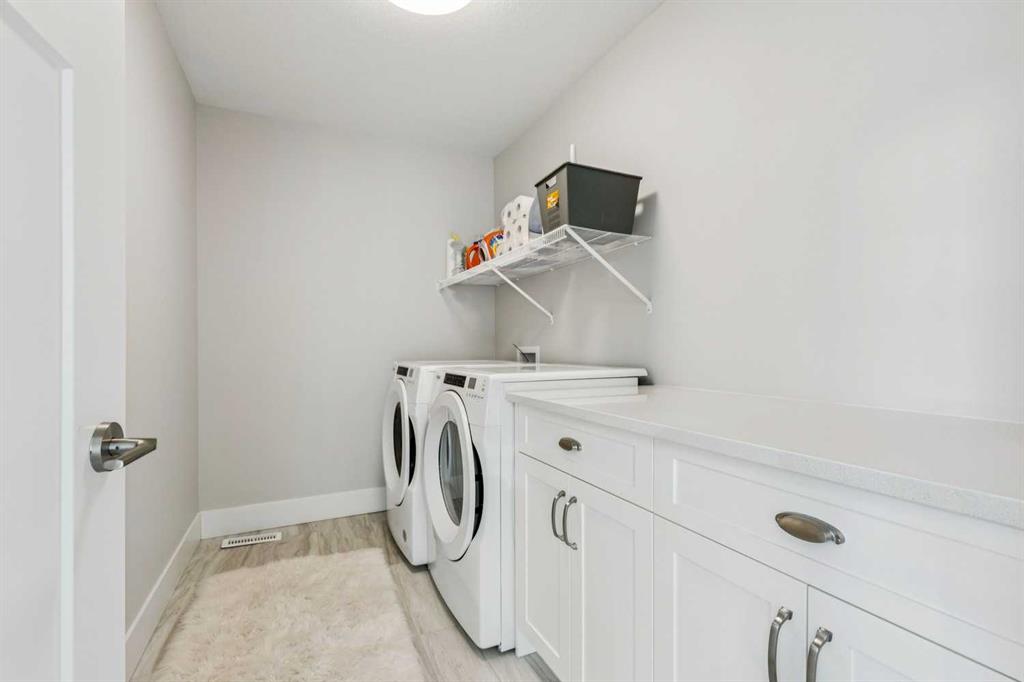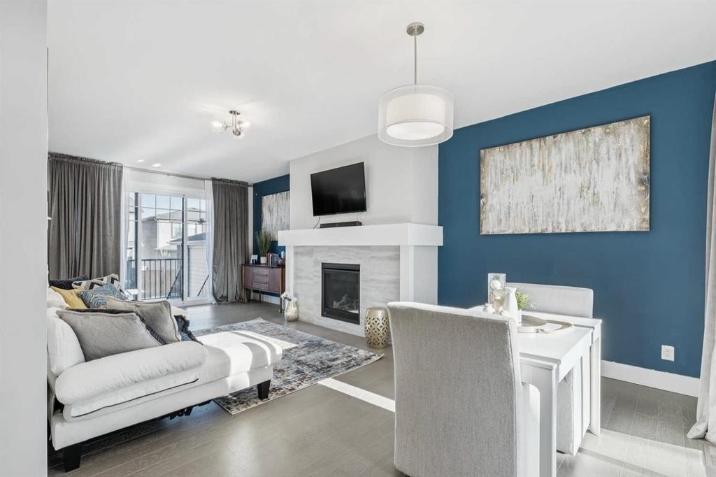 Welcome to this beautifully designed former showhome by Dream in the sought after new community of Alpine Park. This detached two storey home with a third level loft features a smart, functional layout that prioritizes purposeful spaces over wide open floor plans, reflecting one of the leading design trends for 2026. The main floor features distinct yet connected living and dining areas that integrate seamlessly with outdoor spaces. Windows at both the front and back of the home allow natural light to flow throughout the day. The living and dining rooms sit on the west side of the home, anchored by a cozy gas fireplace. Sliding patio doors on both sides of the space create easy indoor and outdoor living and allow for flexible furniture arrangements. The kitchen is spacious and well designed, perfect for the home chef. A moody blue colour palette paired with crisp white cabinetry creates striking contrast against the rich hardwood floors. Features include upgraded stainless steel appliances, open shelving, a large island, and a corner walk through pantry. Just off the kitchen is a bright front flex room, ideal for a home office or playroom. A large south facing bay window fills the space with natural light and offers views of the private park across the street. A discreet powder room and rear mudroom lead to the full width back deck, yard, and oversized garage. The second level offers three generous bedrooms, including a primary retreat that impresses with a vaulted ceiling and sun filled atmosphere. The large walk in closet leads to a spa inspired ensuite featuring dual sinks, a standalone tub, and a full walk in shower. Two additional bedrooms, a four piece bathroom, and a conveniently located laundry room complete this level. The third level loft is a valuable upgrade from the standard plan and adds exceptional flexibility and square footage. This space is ideal for a media room, play area, study space, or teen retreat, with views to the north toward downtown and to the south toward the mountains. This home is ideal for buyers seeking flexible living spaces, a low maintenance exterior with no shovelling, seamless indoor and outdoor flow, and elevated finishes throughout. Alpine Park offers the perfect balance of city and nature, located approximately 15 minutes from downtown Calgary and 30 minutes from the Rocky Mountains. Designed to bring people together, the community features parks, pathways, and convenient access to everyday amenities just minutes away. The small monthly condo fee of $102 includes the HOA fee for Alpine Park as well a snow removal and upkeep of greenspace's' /common areas.