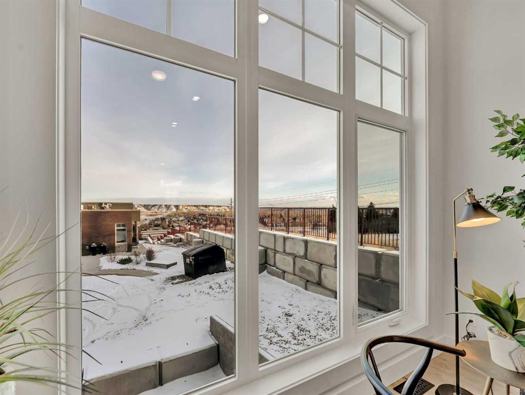 The Palisades welcomes you to this exquisite executive condominium, a stunning 2-storey walkout that perfectly combines luxury and comfort. Nestled alongside the river valley, this home offers unparalleled views and features an rough-in for a future elevator for your convenience. Upon entering, you’ll be captivated by the expansive windows that frame the spectacular river valley, creating a bright and airy ambiance throughout. The main floor boasts a spacious open-concept design, seamlessly blending the living room and kitchen areas. The gourmet kitchen, with ample counter space, is perfect for entertaining or enjoying quiet meals. An adjacent bedroom provides a serene sleeping area for guests, while a 3-piece bathroom adds to the main floor's functionality. Ascend to the lower level, where the primary bedroom serves as a private retreat. Here, you’ll find large windows that radiates the natral light, a private patio for relaxing outdoors, and a huge 5-piece ensuite with luxurious finishes. The walk-in closet provides ample storage, completing this perfect sanctuary. The lower level is designed for comfort and leisure, featuring a large family room with more of those impressive windows that flood the space with natural light. A laundry room/furnace room, ensuring all your needs are met. Every detail of this home has been thoughtfully designed to maximize the stunning natural surroundings while providing all the modern amenities close by. Experience the best of luxury living with this exceptional river valley condominium. The Palisades is in the final phase with only ( 5 sold one now only 4) units left to choose from, these last units have some impressive layouts. So don't be disappointed at this stage, you have time to choose your own finishings to your tastes. Come on out and take a look at the Show Home on site. The Price on this unit includes the GST.