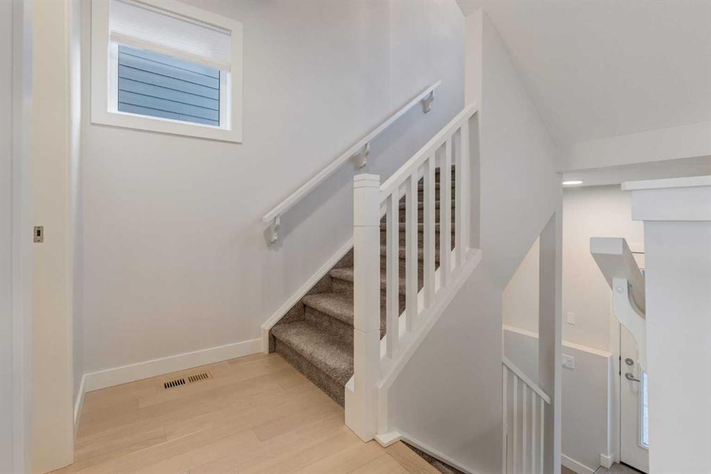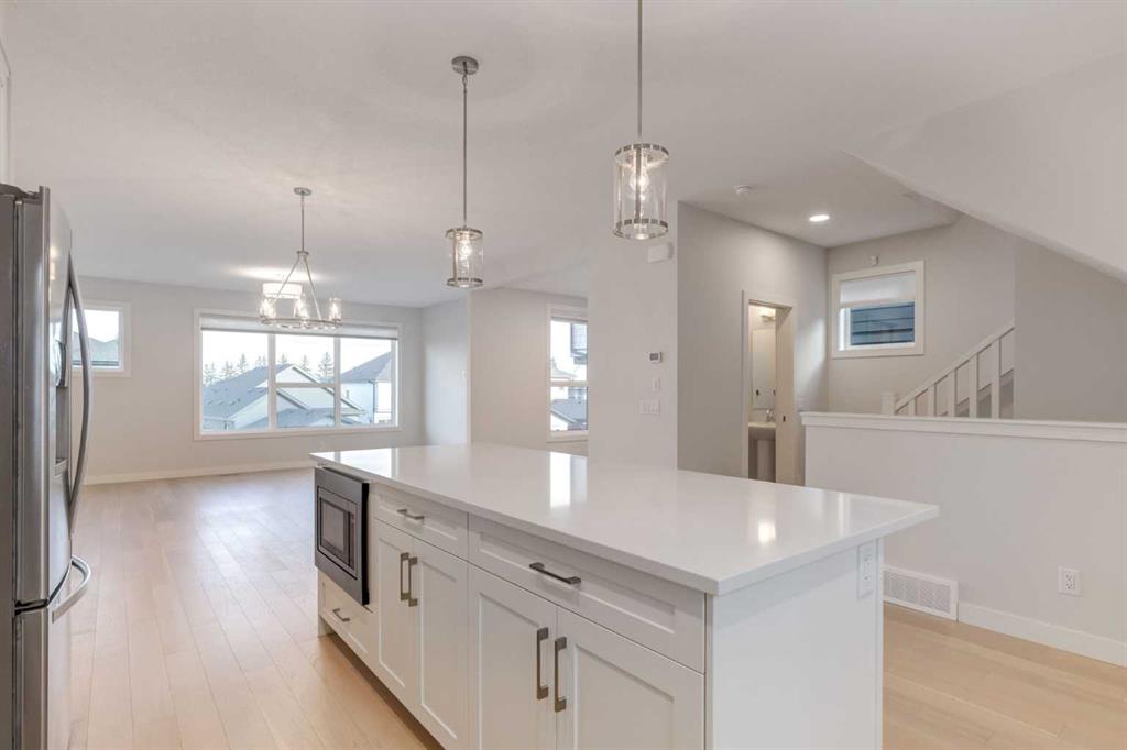 Welcome Home to your like-new double attached garage townhome offering modern design, exceptional functionality, and generous living space in the desirable community of Shawnee Park. The large, open floor plan creates a bright and welcoming atmosphere, perfect for both everyday living and entertaining. A chef’s kitchen anchors the main living area with ample counter space and a seamless flow into the dining and living rooms. The main floor also includes a flexible office space, ideal for working from home or adapting to your lifestyle needs. The entry level features a large utility and storage room that offers incredible versatility and could easily be converted into a home gym, home office, or hobby space. With loads of storage throughout the home, everything has its place. The original builder’s plan shows approximately 1,880 square feet of living space, providing plenty of room to live comfortably. Upstairs, the spacious primary suite is a true retreat, complete with a walk-in closet and a well-appointed ensuite featuring dual vanities. Two additional good-sized bedrooms and a four-piece bathroom provide space for family or guests, while an oversized upper-floor laundry room adds everyday convenience. Set within Shawnee Park, a neighbourhood known for its abundance of greenspace, parks, walking paths, and even a new pickleball court, this home offers a perfect balance of stylish living and an active, outdoor lifestyle. ** all of Shawnee Park is registered as Bareland Condominiums. The low condo fee covers all snow removal and common area landscaping **