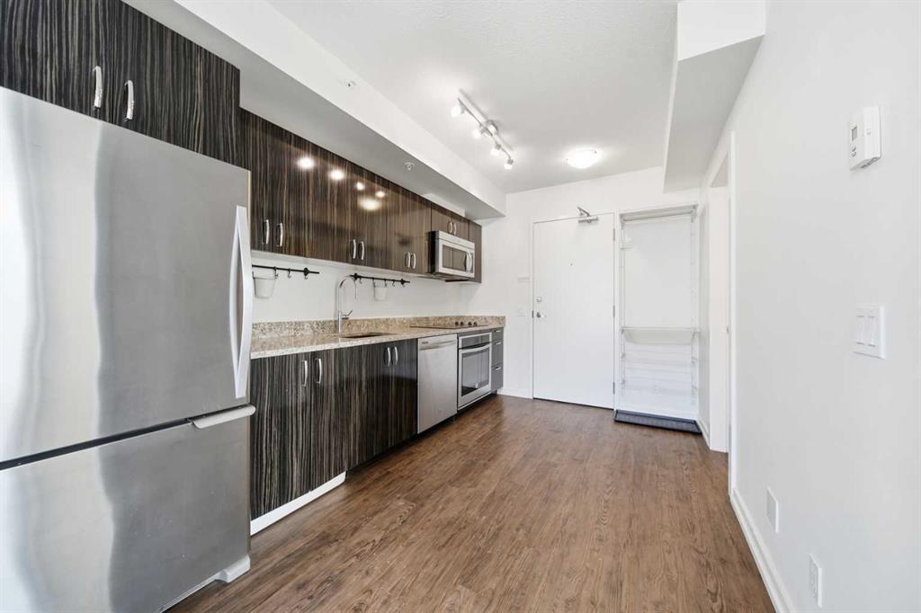 Bold city living meets everyday ease in this west-facing, two-bedroom corner residence offering expansive city views and beautiful natural light throughout the day. The smart, open layout balances comfort and functionality, making it easy to personalize the space to suit your lifestyle—whether that means a dedicated home office, added storage solutions, or a relaxed urban retreat. The kitchen is both stylish and practical, featuring granite countertops, built-in stainless steel appliances, and an abundance of cabinetry for streamlined storage and everyday efficiency. Open to the living and dining areas, it’s a welcoming space for both quiet nights in and casual entertaining. The well-proportioned primary living areas enjoy sun-filled west-facing views, while the two bedrooms provide flexibility for guests, work-from-home needs, or shared living. A modern four-piece bathroom and in-suite European-style laundry add convenience and thoughtful design to this downtown home. Step outside and immerse yourself in one of Calgary’s most energetic and evolving neighbourhoods. From morning coffee at Caffè Rosso to evenings at Studio Bell or the iconic King Eddy, the best of East Village is just moments away. Enjoy effortless access to the Bow River pathways and C-Train stations within easy walking distance, making commuting simple and stress-free. Daily errands are a breeze with a new grocery store only one block away, while parking options available nearby for monthly rental add flexibility for residents and visitors alike. Just next door, the award-winning Calgary Public Library, internationally recognized for its striking architecture, anchors the neighbourhood with culture and community. N3 refines urban living with standout amenities, including a state-of-the-art fitness centre on the 16th floor with city views, rooftop patios ideal for entertaining, a secure storage locker, and dedicated bike storage for an active downtown lifestyle. Whether you’re investing in lifestyle, location, or long-term value, this East Village condo delivers modern design, exceptional walkability, and a neighbourhood poised to thrive for years to come.Whether you’re investing in lifestyle, location, or long-term value, this East Village condo offers a compelling blend of modern design, walkable convenience, and a vibrant urban setting that continues to grow and thrive.