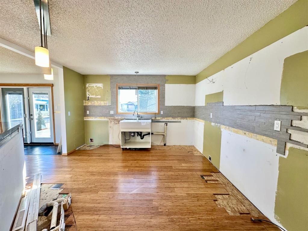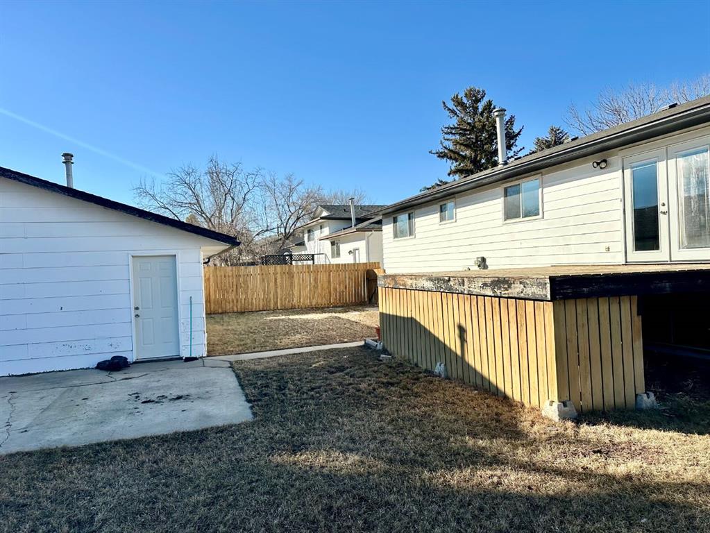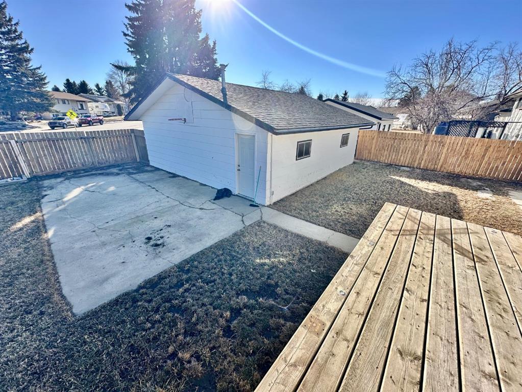 Family home with double detached garage on a spacious corner lot! This 5 bedroom and 2.5 bathroom home features an open-concept layout with a living room fireplace flowing into the kitchen and dining area. The kitchen has no cabinetry and is ready for your renovation ideas. The main level offers 3 bedrooms, a full bathroom, and a 2pce ensuite. The mostly developed basement adds valuable additional living space, featuring a family room, 2 bedrooms, a 3pce bathroom, and a laundry room. Features include a tankless hot water system and central vacuum, all sold “as is”. Situated on a corner lot, the exterior offers a deck, fully fenced yard, and a double detached garage. A great opportunity to renovate and build equity. Property is being sold “as is, where is” with no representations or warranties. Schedule “A” must accompany all offers.