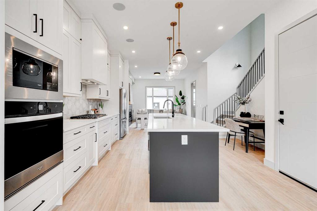 This modern semi-detached home is a stunning blend of thoughtful design and functionality, perfect for anyone looking to elevate their living experience! Located in the heart of Bowness, it offers the perfect mix of urban convenience and peaceful surroundings. Outside, this home has serious curb appeal, w/ a sleek black and white Smartboard exterior that pairs beautifully w/ carefully designed landscaping, and has a 10/10 location next to the park! Out back, there’s a private patio ready for summer BBQs, complete w/ a gas hookup to make entertaining a breeze. Inside, the space is bright and airy w/ 10-ft ceilings on the main floor. The kitchen is a dream for anyone who loves to cook or entertain, w/ custom two-tone shaker cabinets, quartz countertops, and a massive island that acts as both a centrepiece and functional workspace. High-end stainless-steel appliances, including a gas cooktop and built-in oven-microwave combo, make it as practical as it is beautiful, along w/ the large walk-in pantry for all your storage needs. Enjoy everyday meals and family get-togethers in the dedicated dining room w/ a designer chandelier and stunning feature wall, then spread out into the open-concept living room, which features a stunning gas fireplace w/ crystal glass details. Rounding off the main floor is a lovely custom mudroom w/ a built-in bench and private powder room perfect for guests and everyday use. Upstairs, the primary suite is an absolute sanctuary, w/ oversized windows, an extra-large walk-in closet, and a 5-pc ensuite that acts as your own private spa, w/ a freestanding soaker tub, a walk-in shower w/ rain showerhead, dual vanity, and a full-height mirror w/ inset lighting that adds a touch of luxury. Two additional bedrooms on this floor are spacious and bright, w/ quick access to the main bathroom and a convenient upper-level laundry room. The basement is fully finished and includes a LEGAL SUITE w/ its own private entrance. It’s a fantastic option for generating rental income, hosting long-term guests, or even creating a separate space for family members. The suite features a full kitchen, a cozy living area, two bedrooms, and a full bathroom—all finished w/ durable luxury vinyl plank flooring for a sleek and modern look. Throughout the home, you’ll find matte black finishes on all hardware and stylish LED pot lights. It’s also ready for easy upgrades, w/ rough-ins for air conditioning already in place. And the location? Couldn’t be better! You’re next to a park with a skating rink, minutes from the beautiful trails and lagoon at Bowness Park, a local favourite for outdoor activities. The neighbourhood is packed w/ amenities, including charming cafes, boutique shops, and more. For families, there are fantastic schools and playgrounds nearby, including Bowness High School, and commuting is simple w/ quick access to Stoney Trail and 16th Ave! Call today to view!