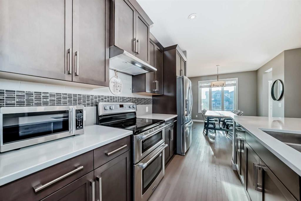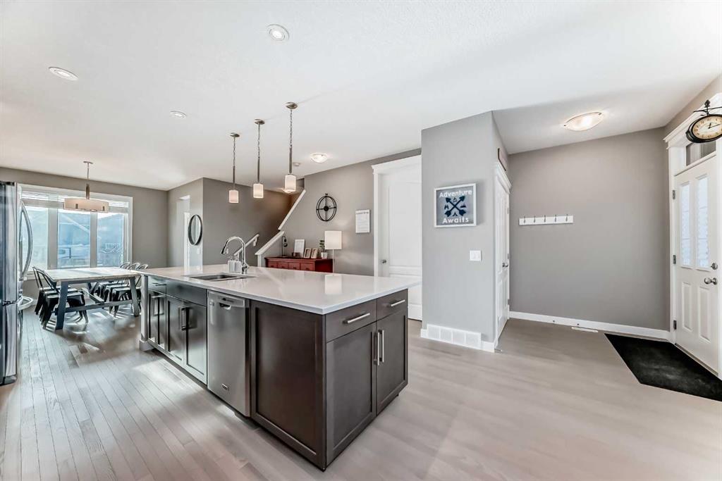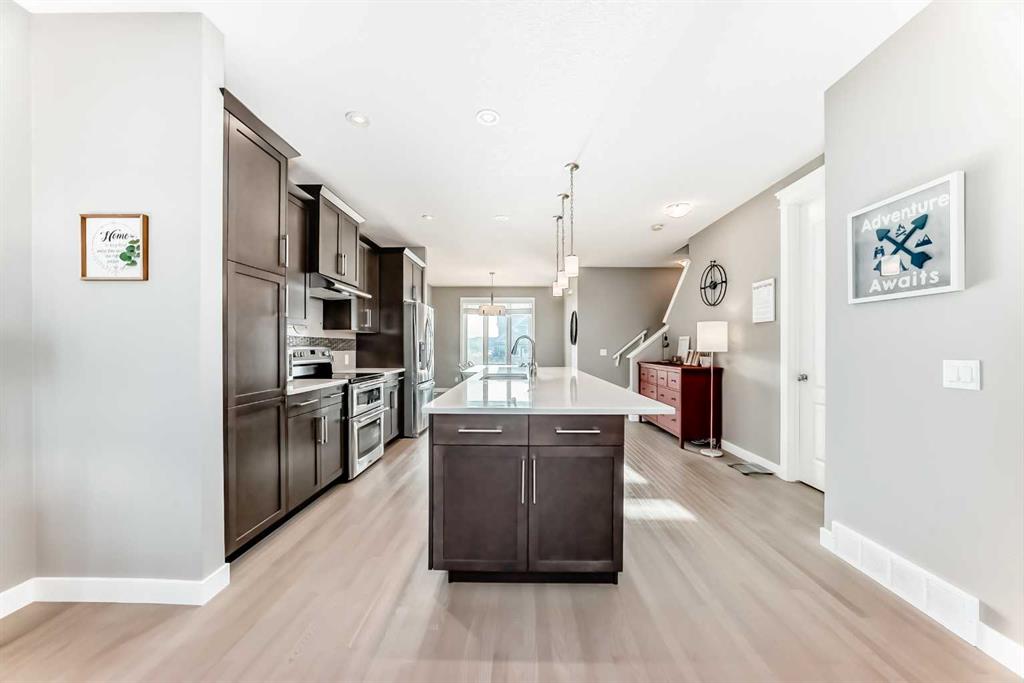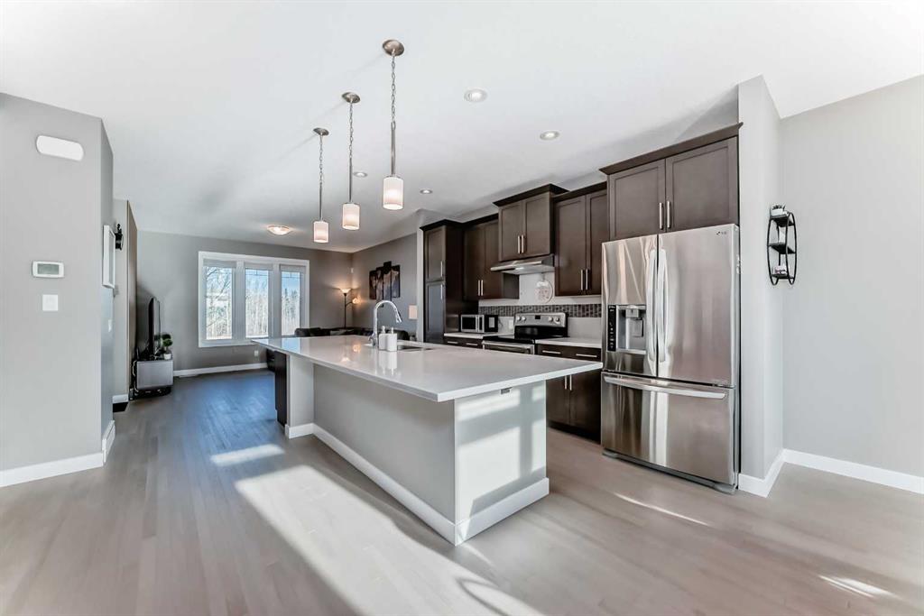 This impeccably maintained home is in immaculate condition and ready for a new family. Located in a new and rapidly growing neighborhood, the property offers excellent long-term value with additional commercial & residential developments planned nearby and a new public elementary school scheduled to open and Bow Valley High School is located in walking distance. Just in time for summer, this home features RV parking with a gate that opens, a fully fenced yard, a south-facing deck, and two large storage sheds—perfect for outdoor living and extra storage. Inside, you’ll find 9 ft ceilings, decorative feature walls, and a bright, open-concept main floor. The upgraded kitchen is a standout, offering shaker-style cabinetry, quartz countertops, stainless steel appliances including a double oven, a new kitchen hood fan and a large central island ideal for entertaining. Triple-pane windows and extra-tall interior doors enhance both comfort and modern appeal. The back entry includes a 2-piece powder room and built-in lockers, keeping daily life organized and functional. Upstairs, the spacious primary bedroom features a 5-piece ensuite with quartz counters, a corner soaker tub, separate shower, and a large walk-in closet. Two additional bedrooms, a full bathroom, and the convenience of upper-level laundry complete this floor. The fully finished lower level offers a fourth bedroom with walk-in closet, a full bathroom, a large recreation room, and ample storage space. Ideally located with easy access to Calgary and Banff, this home is perfect for families seeking comfort, space, and a thriving community.