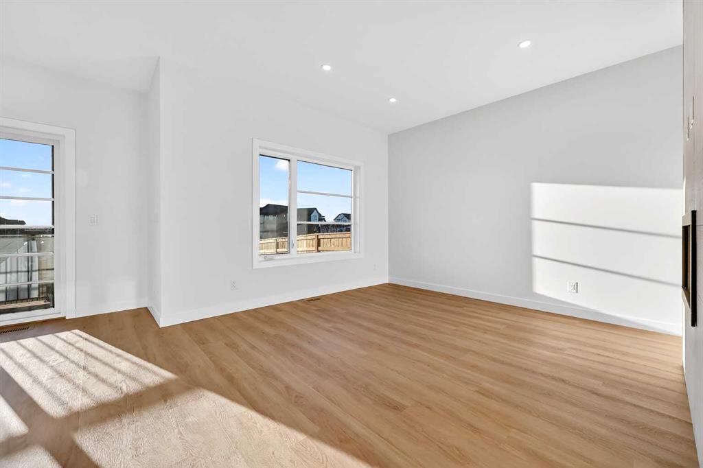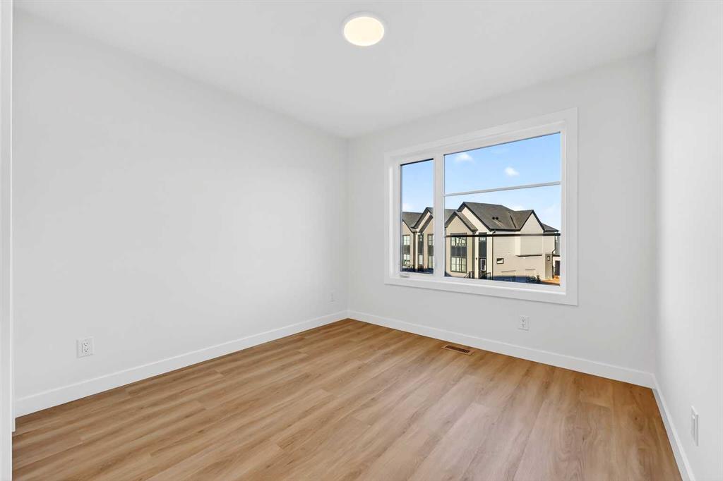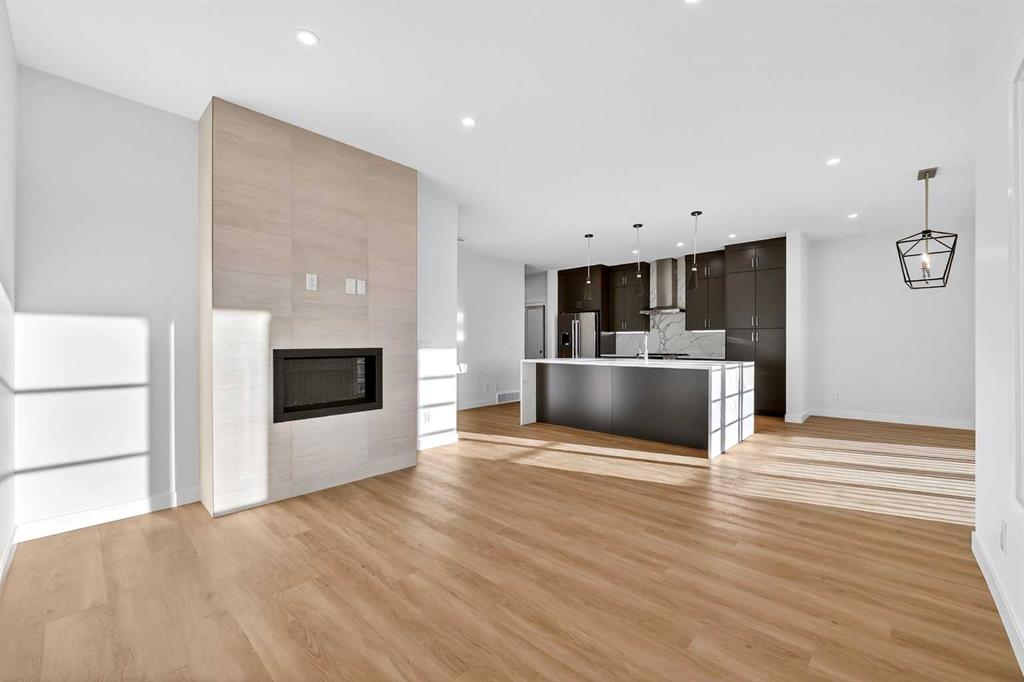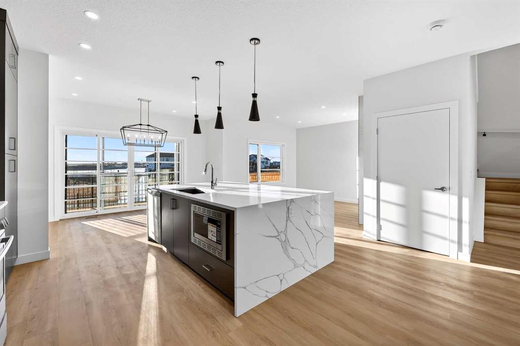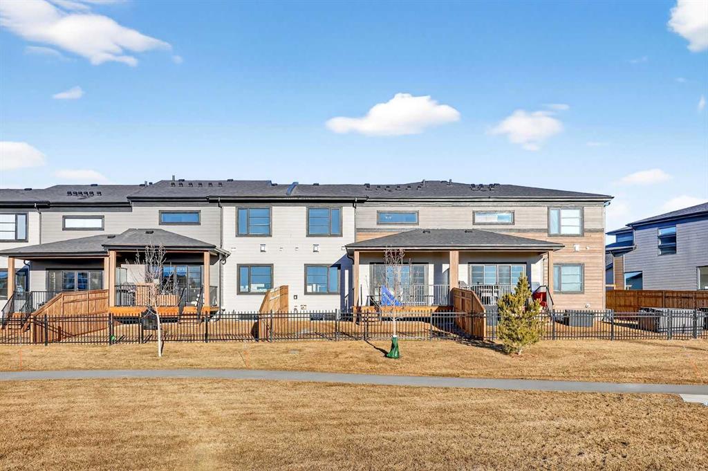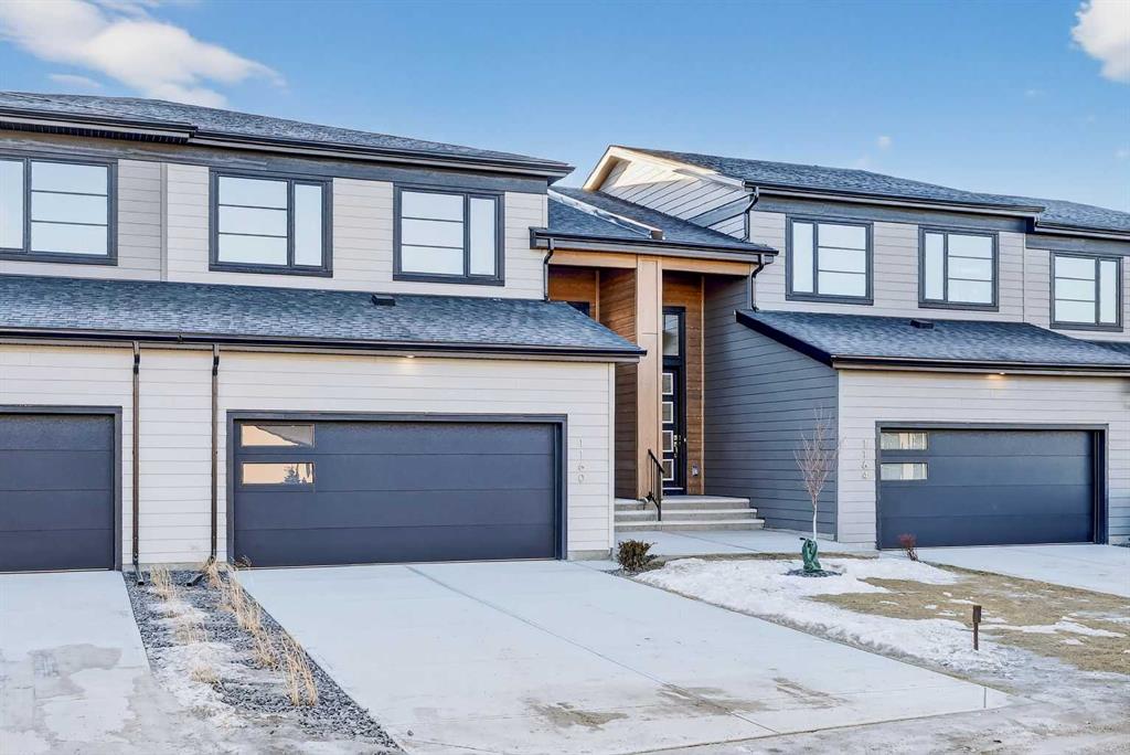 OPEN HOUSE on Saturday, January 31st AND Sunday, February 1st from 1-4pm. Please go to the Show Home located at 1176 Sailfin Heath for access. Experience the height of sophisticated living in this highly coveted luxury townhome, where a generous floor plan meets modern comfort and refined finishes. Proudly presented by StreetSide – this thoughtfully designed unit features 3 bedrooms, 2.5 bathrooms, and a front attached double car garage. The heart of the home is a spacious kitchen with a large central island, polished white quartz countertops, upgraded stainless steel appliances including a gas range, and elegant sliding French patio doors that opens to your covered deck area - ideal for both everyday living and entertaining. A cozy fireplace anchors the living room, while luxury vinyl plank flooring flows throughout the main living areas, complemented by gorgeous tile in the entry and bathrooms. The primary ensuite is a private sanctuary, complete with heated tile flooring, double sinks, a freestanding soaker tub, and an oversized tile-and-glass shower delivering spa-inspired comfort at home. The unfinished basement with roughed-in plumbing provides future potential for additional living space tailored to your needs. Professional landscaping and fencing complete your new home. Ideally located in the award-winning community of Harmony, residents enjoy Mickelson National Golf Course, private lake amenities, scenic walking and biking trails, and a wellness-focused lifestyle—just a shorty drive from Calgary city minutes and 45 minutes from the Rocky Mountains, where nature and convenience come together effortlessly