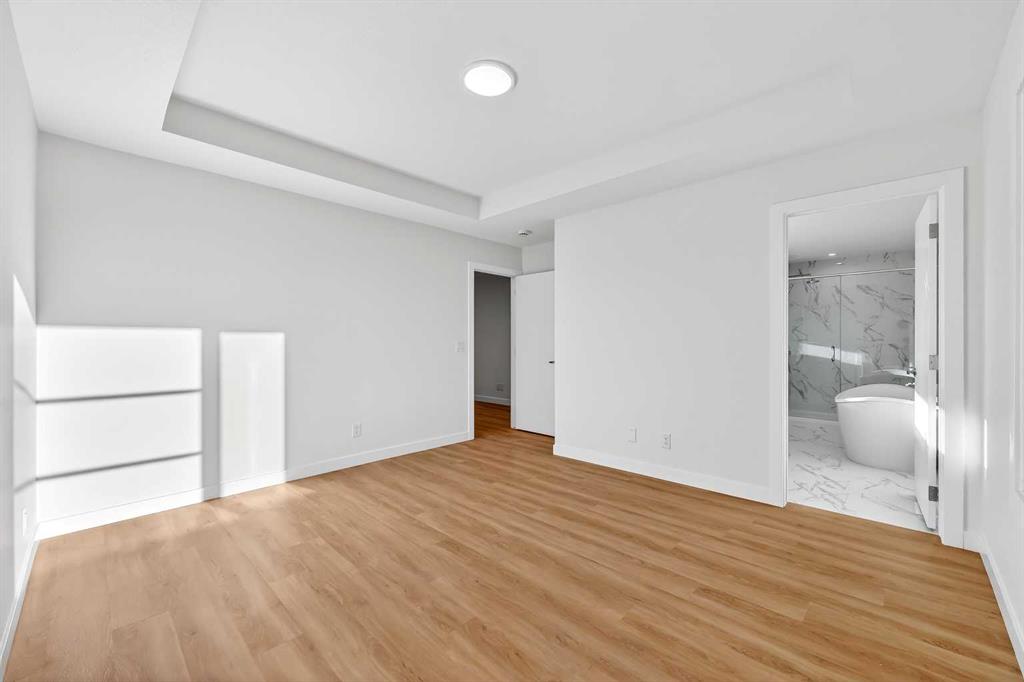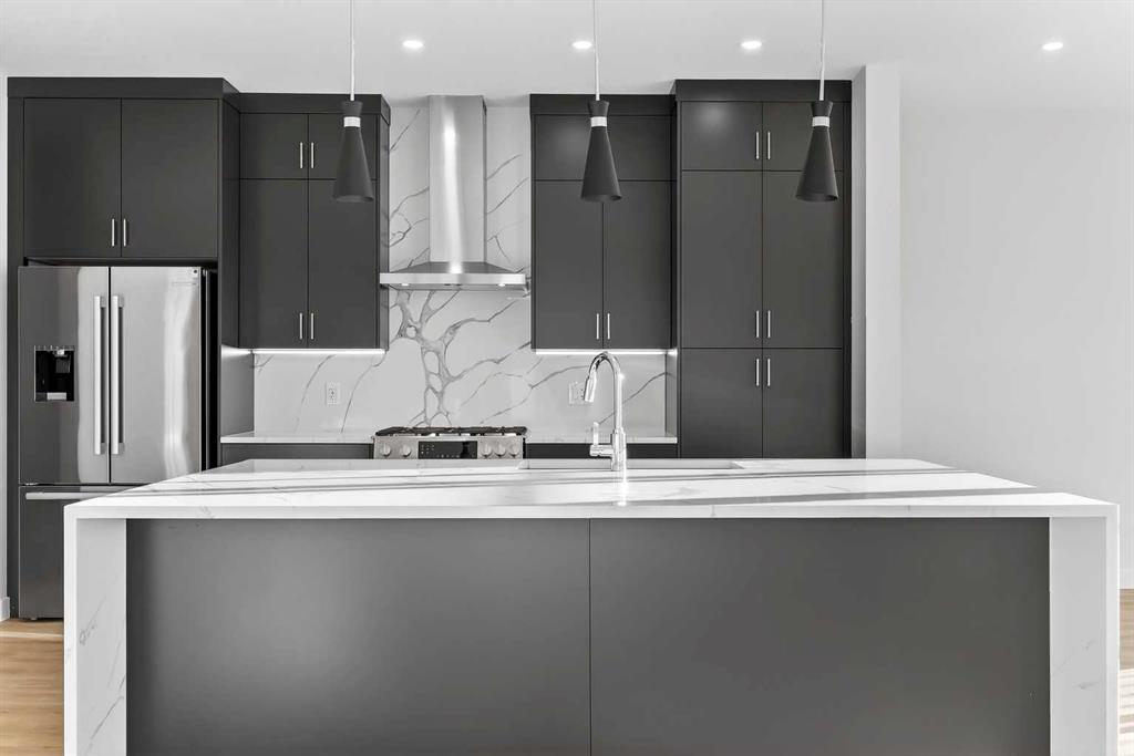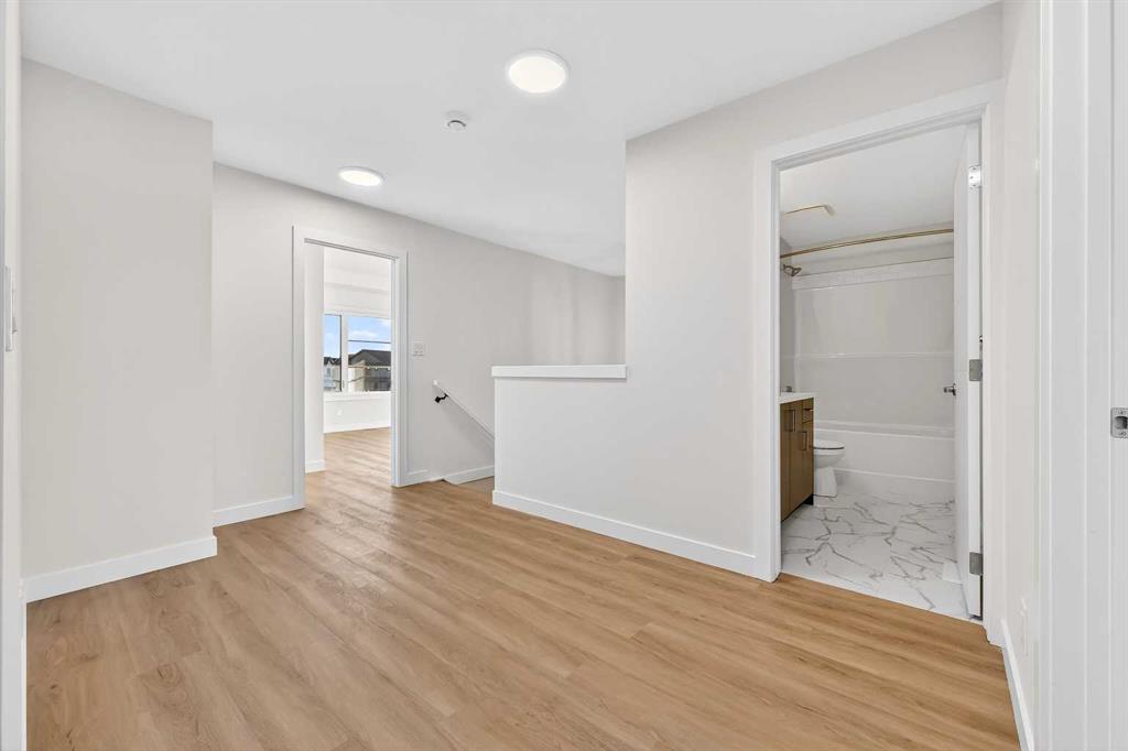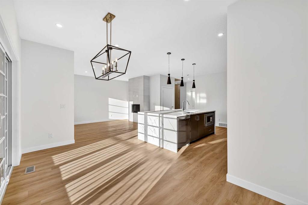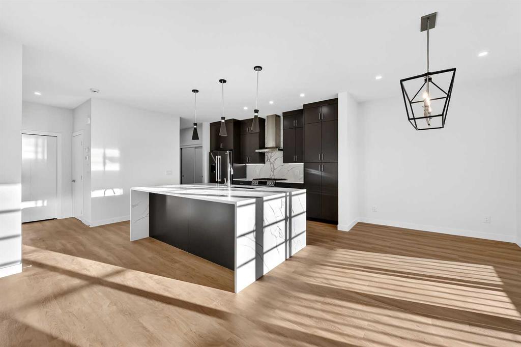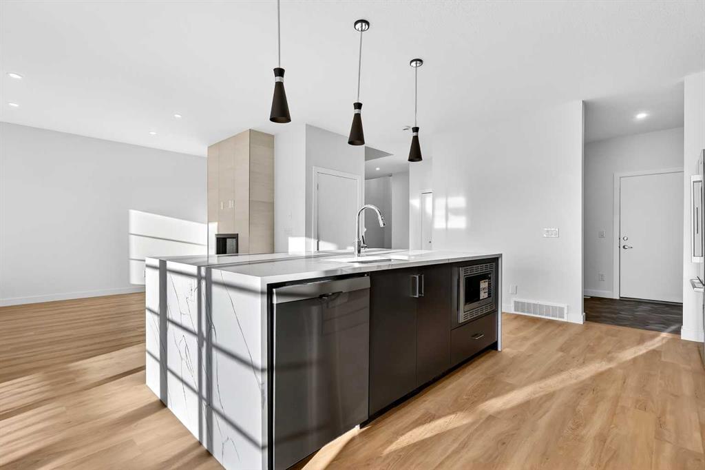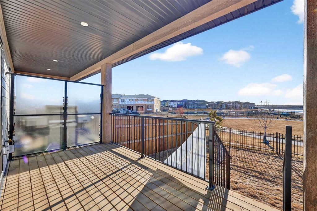 OPEN HOUSE on Saturday, January 31st AND Sunday, February 1st from 1-4pm. Please go to the Show Home located at 1176 Sailfin Heath for access. Experience the height of sophisticated living in this highly coveted luxury townhome, where a generous floor plan meets modern comfort and refined finishes. Proudly presented by StreetSide – this thoughtfully designed unit features 3 bedrooms, 2.5 bathrooms, and a front attached double car garage. The heart of the home is a spacious kitchen with a large central island, polished white quartz countertops, upgraded stainless steel appliances including a gas range, and elegant sliding French patio doors that opens to your covered deck area - ideal for both everyday living and entertaining. A cozy fireplace anchors the living room, while luxury vinyl plank flooring flows throughout the main living areas, complemented by gorgeous tile in the entry and bathrooms. The primary ensuite is a private sanctuary, complete with heated tile flooring, double sinks, a freestanding soaker tub, and an oversized tile-and-glass shower delivering spa-inspired comfort at home. The unfinished basement with roughed-in plumbing provides future potential for additional living space tailored to your needs. Professional landscaping and fencing complete your new home. Ideally located in the award-winning community of Harmony, residents enjoy Mickelson National Golf Course, private lake amenities, scenic walking and biking trails, and a wellness-focused lifestyle—just a shorty drive from Calgary city minutes and 45 minutes from the Rocky Mountains, where nature and convenience come together effortlessly