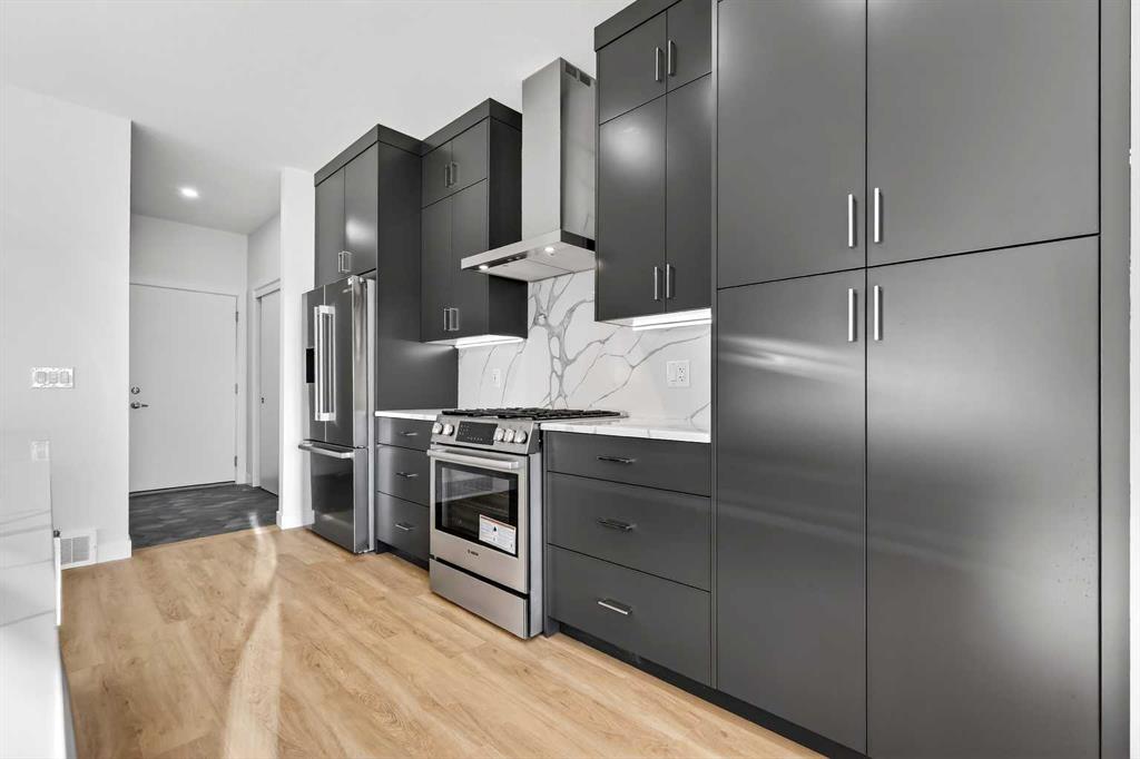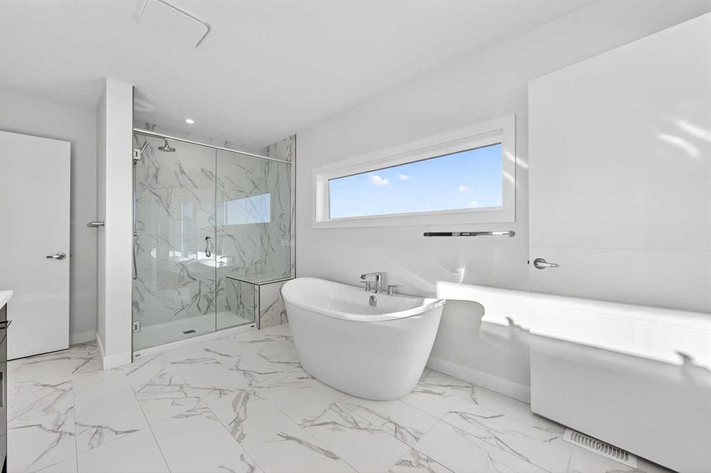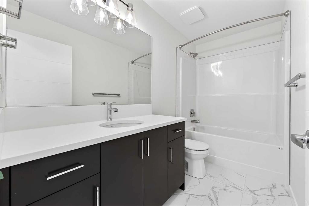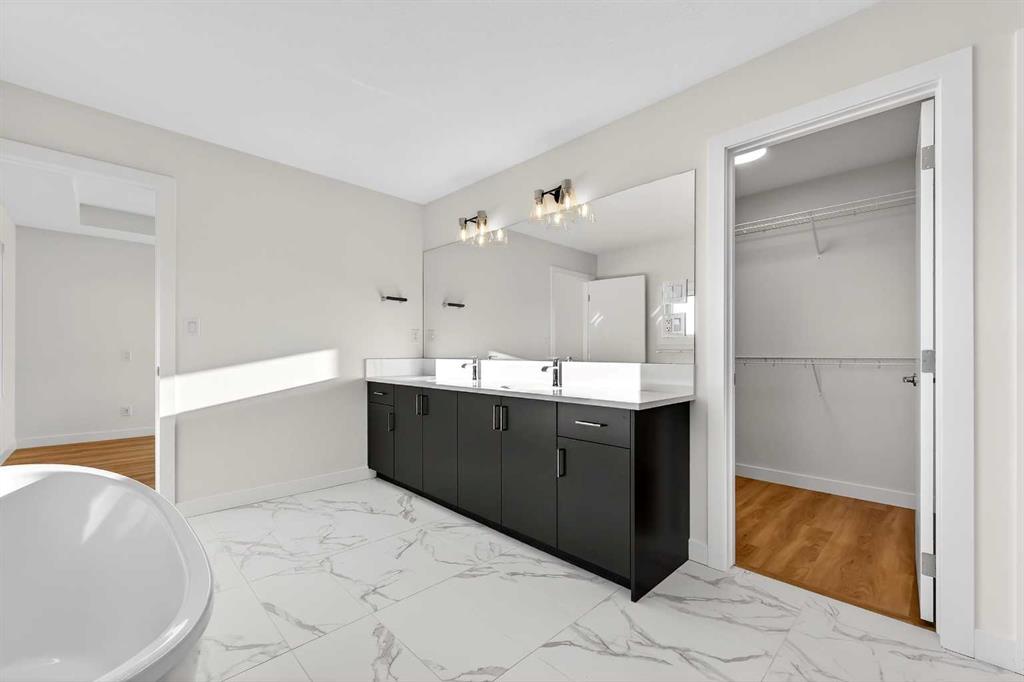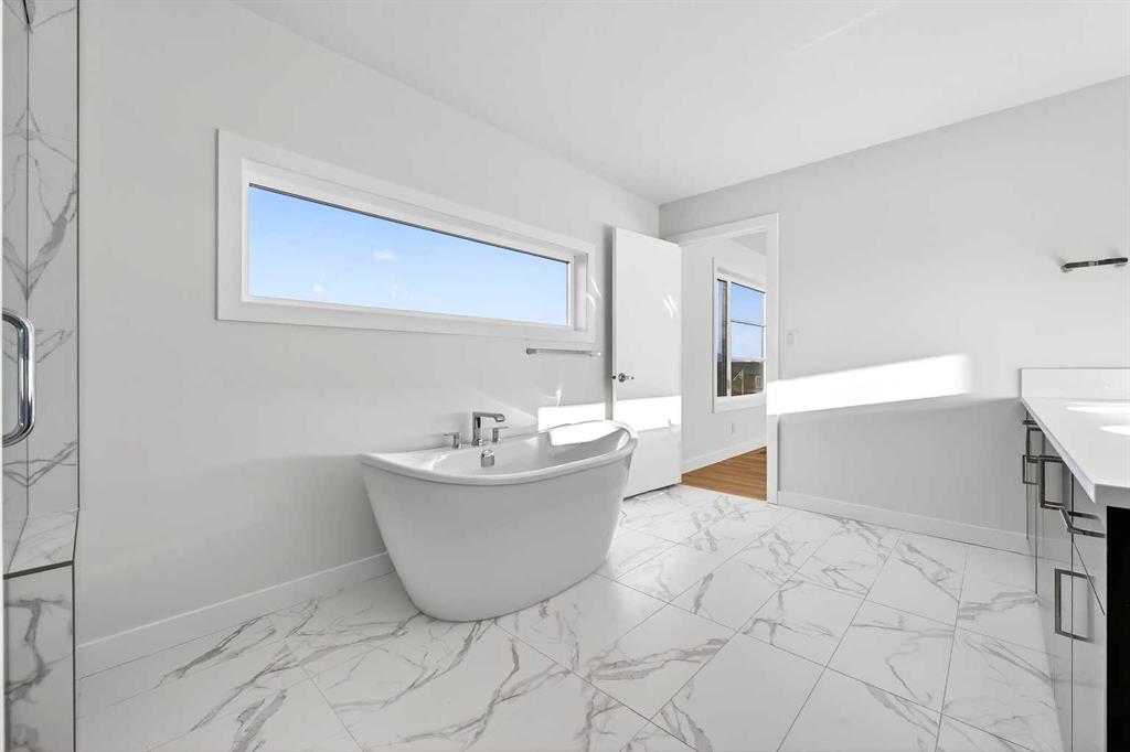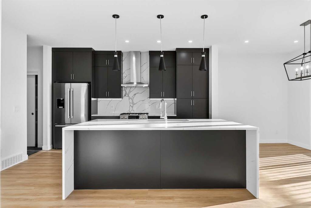 OPEN HOUSE on Saturday, January 31st AND Sunday, February 1st from 1-4pm. Please go to the Show Home located at 1176 Sailfin Heath for access. Experience the height of sophisticated living in this highly coveted luxury townhome, where a generous floor plan meets modern comfort and refined finishes. Proudly presented by StreetSide – this thoughtfully designed unit features 3 bedrooms, 2.5 bathrooms, and a front attached double car garage. The heart of the home is a spacious kitchen with a large central island, polished white quartz countertops, upgraded stainless steel appliances including a gas range, and elegant sliding French patio doors that opens to your covered deck area - ideal for both everyday living and entertaining. A cozy fireplace anchors the living room, while luxury vinyl plank flooring flows throughout the main living areas, complemented by gorgeous tile in the entry and bathrooms. The primary ensuite is a private sanctuary, complete with heated tile flooring, double sinks, a freestanding soaker tub, and an oversized tile-and-glass shower delivering spa-inspired comfort at home. The unfinished basement with roughed-in plumbing provides future potential for additional living space tailored to your needs. Professional landscaping and fencing complete your new home. Ideally located in the award-winning community of Harmony, residents enjoy Mickelson National Golf Course, private lake amenities, scenic walking and biking trails, and a wellness-focused lifestyle—just a shorty drive from Calgary city minutes and 45 minutes from the Rocky Mountains, where nature and convenience come together effortlessly