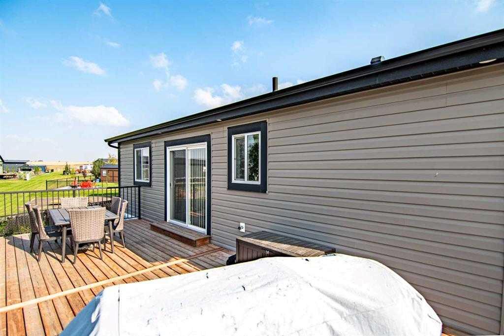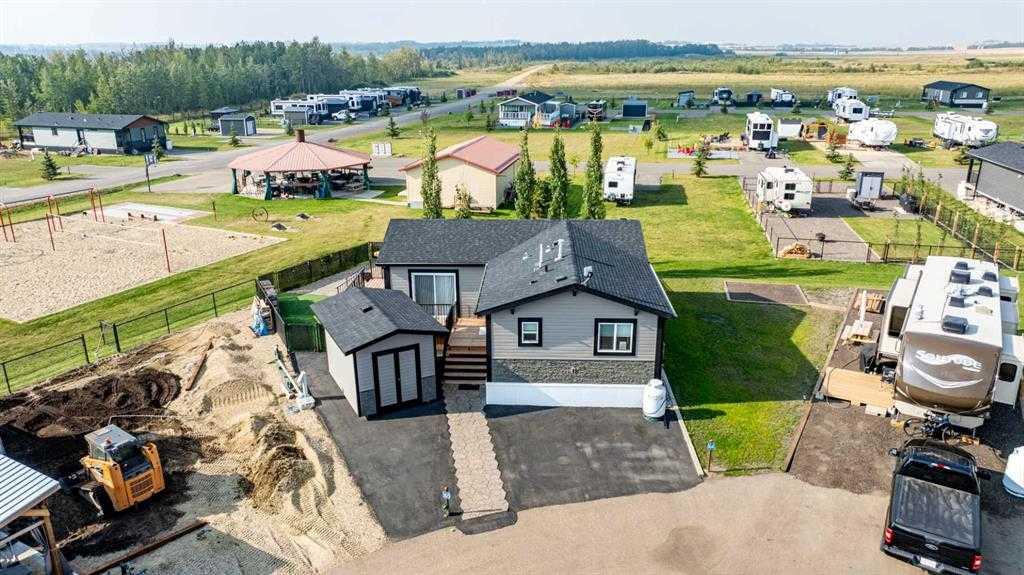 Year-Round Luxury at Sandy Point – A Recreational Paradise! Discover the ultimate four-season retreat at Sandy Point, a premier lakeside community on the west shores of Gull Lake, near Bentley with access to beautiful bike trail system. Whether you’re looking for adventure or relaxation, this vibrant resort has it all. Enjoy an inland marina, boat launch, playgrounds, laundry/shower facilities, a community gazebo with a fire pit, and boat/RV storage. Plus, opening in spring 2025—a 12-hole golf course, a future clubhouse and a pickleball court/skating rink! With direct access to the beautiful and clean County Beach, Sandy Point is truly a recreational haven. A Custom-Built 2019 Home Designed for Comfort & Style This one-of-a-kind custom 3 bedroom-built home stands apart, offering exceptional quality, thoughtful design and 1078 sq.ft. spacious living. Strategically designed to maximize the pie-shaped lot, it boasts an extra-wide open-concept living area with vaulted ceilings in the kitchen, dining, and living spaces—creating a bright and airy atmosphere perfect for entertaining. Thoughtful Interior Features • Welcoming Entryway: Bright and spacious, featuring large windows and two sliding doors leading to front and back decks. • Gourmet Kitchen: Custom-designed with beautiful countertops, a large island, a corner pantry, stunning cabinetry and a full appliance package. • Everything like new! Southeast-Facing Deck: Step outside from the dining/kitchen area to enjoy morning coffee with the sunrise, host a BBQ or soak in the warmth of the sun. • Primary Bedroom Retreat: A peaceful escape with a clothes/storage closet and a private entrance to the main bathroom (complete with shower, toilet, and sink). • Two Versatile Guest Bedrooms: Perfect for a queen bed, office, or flex space. • Stackable Washer & Dryer for added convenience. • Ample Storage: Smartly designed closets throughout to maximize space, plus additional storage in the entryway. Outdoor Oasis: The landscaped backyard is a true highlight, featuring mature trees, perennial shrubs, a grassy area, a shed and a fire-pit for cozy evenings or afternoon gatherings. A large storage shed offers plenty of room for a workshop, golf cart storage, or extra gear, with under-home access for additional storage. The front of the property provides parking for two vehicles. Additional Features & Utilities • Central A/C for summer comfort • **Heat tape on all water plumbing. Shed is 9x14, Deck: back 44x10 and front 22x8. Propane tanks are owned by the seller.AC added in 2022, Dishwasher new in 2024, front paved in 2022 sealed in 2023.
