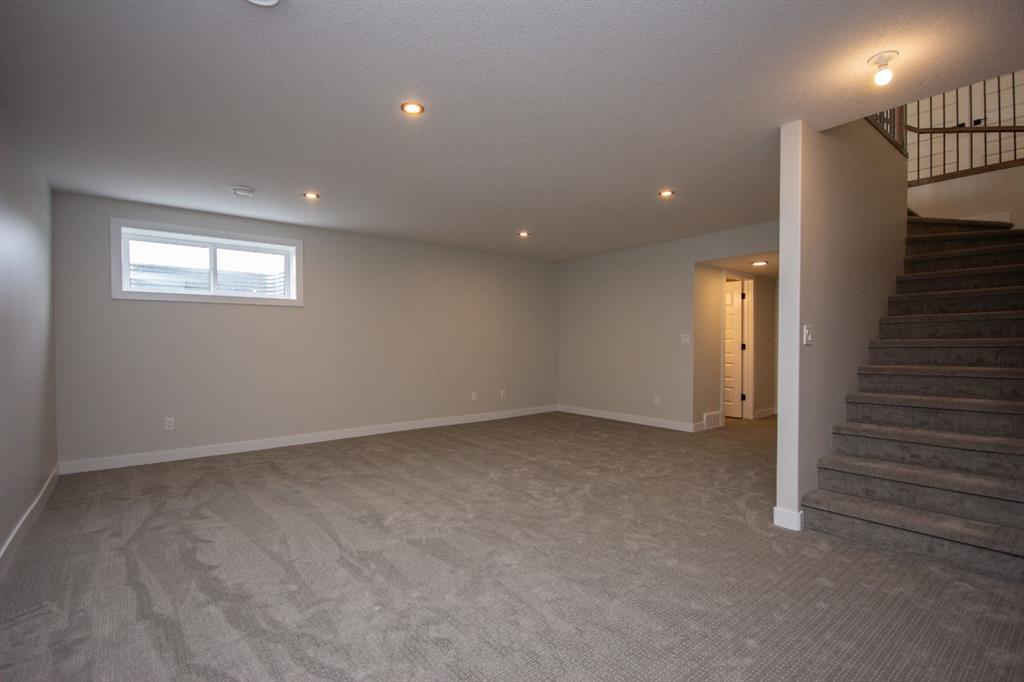 Executive living in one of Red Deer's best communities! The Timbers is a maintenance free community (lawn and snow removal completely looked after!) offering fully fenced and landscaped single family homes with no restrictions on age or pets, so you can bring the dog, the kids, and the grand kids if desired! The Tamarack is a beautiful fully finished bungalow offering a wide open plan with 9' ceilings and large windows that fill the space with natural light. The kitchen features raised two tone cabinetry, quartz counter tops, upgraded stainless steel appliances including an induction range, and a convenient corner pantry. The dining room enjoys views of the yard through sliding patio doors, and you'll love relaxing in the large living room space. The primary suite enjoys a spa like ensuite with a freestanding tub, oversized shower, dual sinks, private water closet, and dual walk in closets. The main floor office provides a place to work or read, and main floor laundry is an added convenience. The basement is fully finished with a massive family room and rec room area with plenty of space for a pool table and home theatre. Two bedrooms share a 4 pce bath and in-floor heat is roughed in for future use. Condo fees of $192.81/mo cover mowing and landscape maintenance, street cleaning, driveway snow shovelling and street clearing in winter, and maintenance of common property and trails. Allowances can be provided for blinds, and a washer and dryer through the builders suppliers to make this a completely move-in ready package. GST is already included in the purchase price, and 1 year builder warranty and 10 year Alberta New Home Warranty are included. Taxes have yet to be assessed. This home has an estimated completion date of February 2026.