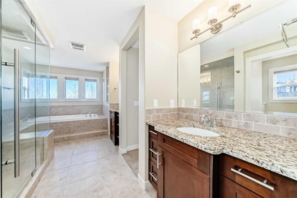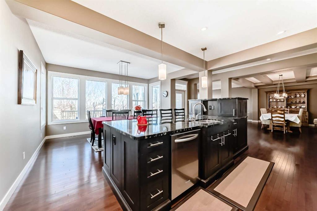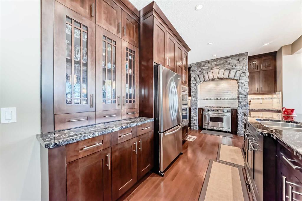 This spectacular home in Crestmont is set on a beautifully landscaped lot with sweeping views and offers an impressive sense of arrival with a grand entrance, soaring ceilings, and dramatic staircase. The gourmet kitchen features abundant counter and cabinet space, a large island, wine fridge, walk-in pantry, and a butler’s pantry or coffee station with prep sink—perfect for both daily living and entertaining. The dining and living areas are anchored by a striking stone-faced gas fireplace, creating a warm and inviting atmosphere. A main-floor study with custom built-ins adds versatility and function. Upstairs, the primary retreat enjoys stunning views, dual walk-in closets, and a spa-inspired ensuite. Two additional bedrooms with walk-in closets, a 5-piece bath, loft area, and upper laundry complete this level. The finished walkout lower level offers exceptional space with a games/rec room, family room with gas fireplace, wet bar, 3-piece bath, media room, and a workout area that can easily convert to a fourth bedroom. Outside, relax in the professionally landscaped yard. An oversized triple heated garage provides exceptional parking and storage. An outstanding home in the scenic community of Crestmont—must be seen to be appreciated.