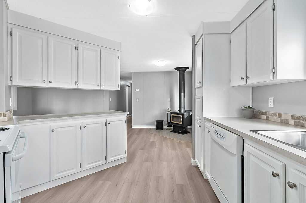 Welcome to this beautifully renovated, move-in-ready mobile home, boasting just over 1,400 square feet of living space and designed for comfortable, easy living with a bright and open feel. This bright and open-concept home offers 3 spacious bedrooms and 2 full bathrooms, including a large primary ensuite featuring a relaxing soaker tub and dual sinks. Large windows throughout fill the home with natural light, while generous closet space and abundant storage make everyday living easy and organized. A separate laundry room adds to the home’s thoughtful layout. Recent upgrades provide true peace of mind, with extensive renovations completed throughout, far too many to list. Major improvements include a new roof, new furnace, newer hot water tank, and a wood stove with current WETT inspection, perfect for cozy evenings at home. Outside, enjoy a large covered porch, fenced yard, storage shed, and a covered carport—the next best thing to a garage. The park itself offers excellent amenities such as a playground, RV storage, plenty of guest parking, and a welcoming, family-oriented atmosphere. Located close to schools, shopping, walking paths, and with easy highway access, this home delivers both tranquility and convenience. Don’t miss this opportunity to own a beautifully updated home in a fantastic location, schedule your private showing today!