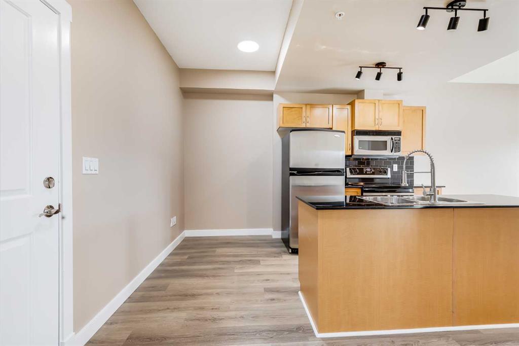 Welcome to Gateway Southcentre -Proudly recognized as the 2025 Condominium of the year. This 1-bedroom, 1 Bathroom apartment combines comfort and convenience. In-suite laundry, storage and a sunny east exposure. This condo has been refreshed with new paint throughout, vinyl plank flooring, and updated light fixtures. This is such a well-designed building with all comforts, with a fitness center, yoga room, party room, and guest suites. This concrete building is fully air-conditioned to enjoy the hot summer days. A sunny, exposed apartment will truly please, including a 1 Titled parking space and a storage locker. Immediate access to Macleod Trail, Canyon Meadows LRT, and a nearby shopping centre; other shops and professional services are close by. This location surpasses all expectations - all within your grasp. Quick possession available - no waiting. Book Your showing today.