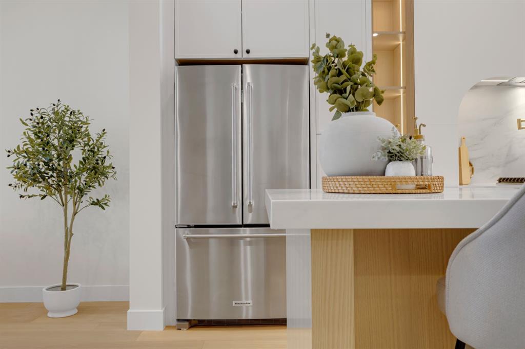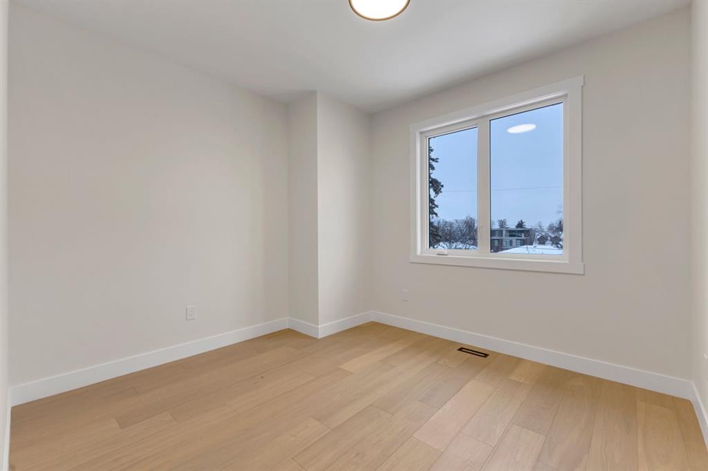 One Unit Remaining! Elegant French Chateau-Style Duplex in Richmond | Over 3,100 Sq Ft | Oversized Garage. Step into timeless sophistication with this beautifully crafted French chateau-inspired duplex, ideally located in the prestigious community of Richmond. Boasting over 3,100 sq ft of luxurious living space, this residence seamlessly blends classic charm with modern comfort. Engineered wood flooring flows throughout the main and upper levels, setting the tone for the refined finishes found throughout the home. Upstairs, you'll find three generously sized bedrooms, each complete with walk-in closets and private ensuites.. The stunning 5-piece primary ensuite is a true retreat, offering heated floors, a steam shower, a free-standing tub, a double vanity with a custom tower, and recessed lighting to create a spa-like atmosphere. The main floor is thoughtfully designed for both work and relaxation, featuring a convenient pocket office, a chef-inspired kitchen with a massive 15-foot island and high-end Kitchen Aid appliances, and an inviting living room centered around a cozy gas fireplace. A stylish mudroom with built-in cabinetry leads to the powder room and out to your private backyard through large patio doors. The fully finished basement offers a wet bar, bedroom with a 3 pc bathroom along with a huge rec area. Situated on a rare 135-foot deep lot, the backyard is generously sized—perfect for outdoor entertaining—and complemented by a double oversized garage for added convenience. This is a one-of-a-kind home that perfectly balances elegance, comfort, and versatility in one of Calgary’s most sought-after neighbourhoods.