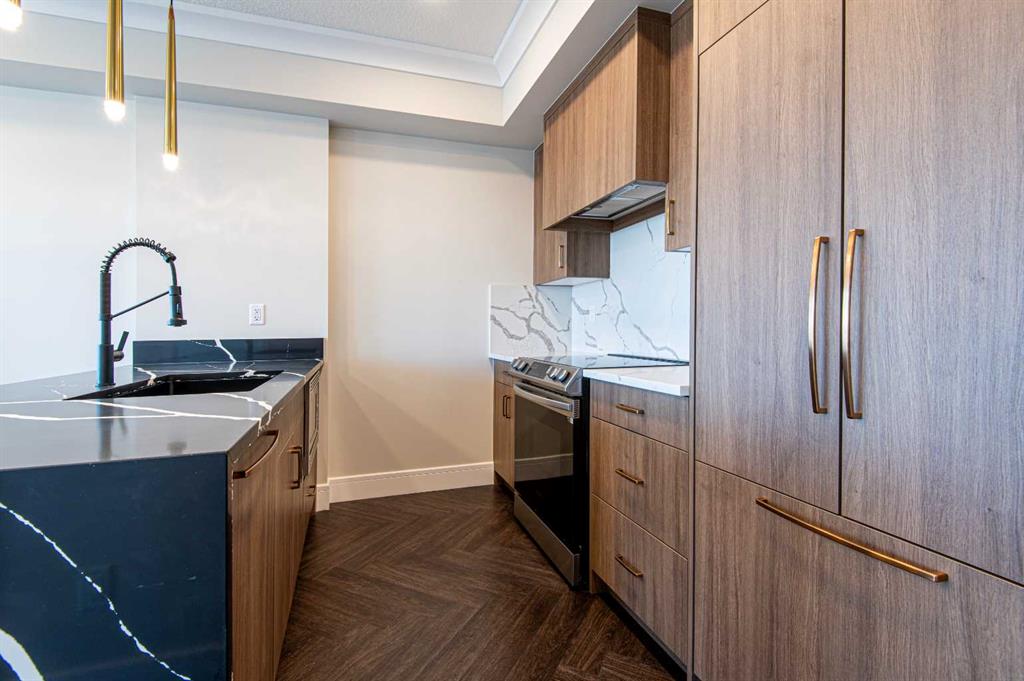 Discover modern inner-city living in this newer, upscale boutique 1-bedroom + den condo in the highly sought-after Currie Barracks community. Beautifully designed and thoughtfully laid out, this home features a private balcony showcasing downtown skyline views — the perfect spot to unwind. The sleek, contemporary kitchen flows seamlessly into the living space, complemented by a full bathroom, a versatile den ideal for a home office, and convenient in-suite laundry. Every detail is designed for comfort and functionality. This unit includes a titled underground parking stall and a titled storage locker, offering exceptional convenience for seasonal storage and everyday living. Ideally located close to shopping, amenities, transit, and all the best of Calgary’s vibrant inner city, this stylish condo offers an exceptional lifestyle opportunity for professionals, downsizers, or investors alike.