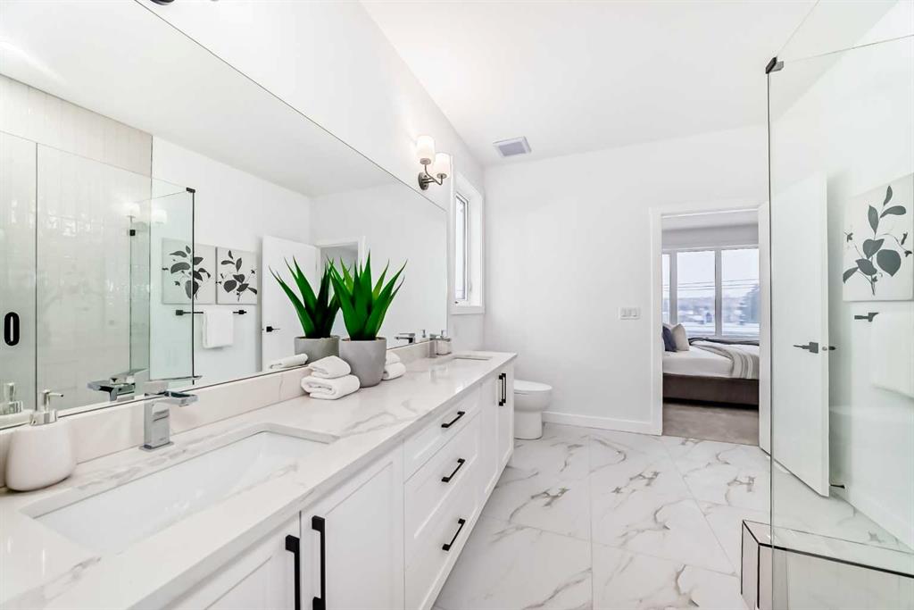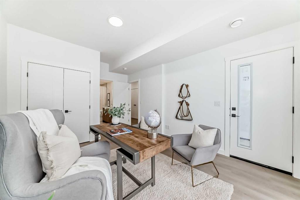 Welcome to this modern 4 Bedroom, 4 Bathroom end-unit offering an exceptional blend of family-friendly design and investment versatility in one of Calgary’s most established and sought-after communities. This thoughtfully designed home provides space to grow while offering excellent income or multi-generational living potential. A standout feature is the main-floor bedroom with a separate private entrance and attached 4-piece bathroom—ideal for extended family, older children, guests, a home office, or a potential rental setup. The open-concept main living area is bright and welcoming, featuring quartz countertops, modern finishes, and a cozy electric fireplace with mantel, creating the perfect space for family gatherings. Step outside to the private balcony, offering a comfortable outdoor space to enjoy the amazing Calgary summer nights. The generous size bedrooms include walk-in closets and spa-like ensuites, providing privacy and comfort for every family member. An oversized single garage adds valuable space for parking, storage, bikes, and strollers. Located just steps from Bowness Park and Calgary’s extensive city pathway system, this home is perfect for active families. Enjoy walking distance to schools, parks, playgrounds, and daily amenities, with quick access to major roadways and downtown—making it equally attractive to renters and owner-occupiers. A flexible, modern home that works for growing families and savvy investors alike—offering lifestyle today and value for the future.