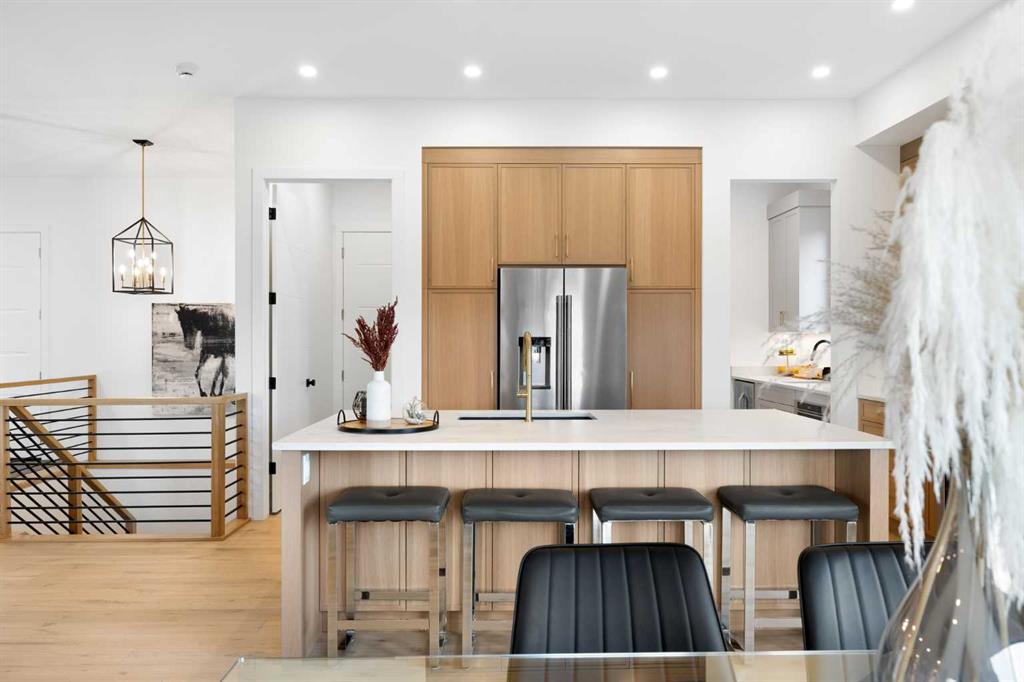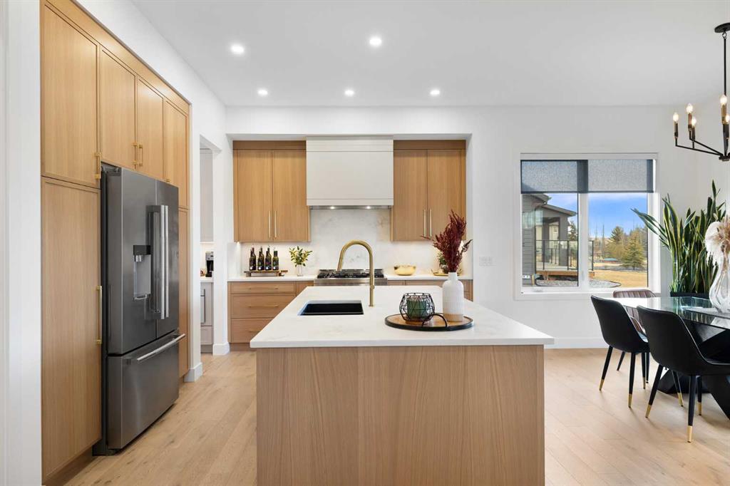 Step into refined simplicity with this exquisite newly built Scandinavian-style bungalow showcasing modern design and natural beauty. “The Olso” was created and built by Ironstone Custom Homes. Thoughtfully crafted with clean lines, organic textures, and an emphasis on light and space, this home redefines contemporary comfort with an array of high-end upgrades and sophisticated features. From the exterior, the home's minimalist architecture captures attention with its blend of SAGIWALL custom white oak exterior cladding that is a completely maintenance free product! As well James Hardie concrete infused matte black accent panels, and oversized windows that bring the outdoors in. The single-level layout offers the ultimate in ease and accessibility, while maintaining an elegant and airy presence. Inside, you're welcomed into an open-concept living space radiating warmth and functionality. Vaulted ceilings and expansive windows create a sense of volume and tranquility, enhanced by engineered wide-plank hardwood flooring, soft white walls, and the calming palette typical of Nordic design. At the heart of the home lies a gourmet kitchen, featuring sleek quartz countertops, custom cabinetry, designer fixtures, and a full suite of premium stainless steel appliances—perfect for both entertaining and everyday living. A butlers pantry awaits you with a storage on one side and additional cabinets on the other side. The spacious office over looks the landscaped front yard. A seamless transition between the gourmet kitchen, dining area and living room create perfect synergy. The bungalow offers spacious bedrooms, each designed with simplicity and comfort in mind. The primary suite is a private retreat with direct access to the outdoor deck with separate space for cooking , a retreat with a wood burning fireplace and hot tub area. This luxurious ensuite bath, featuring a double vanity, walk-in glass shower, separate tub and spa-like finishes. A massive closet with builtins galore. Every corner of the home is elevated with smart home features, upgraded lighting, and energy-efficient systems. Seamlessly extending the living space outdoors is a true highlight: an exceptional outdoor experience anchored by a grand wood-burning fireplace. This custom-built stone feature sets the tone for year-round gatherings under the covered patio. Whether you're enjoying crisp evenings beside the fire or hosting al fresco dinner parties, the space offers an intimate connection to nature, blending modern luxury with rustic charm. The basement is fully finished offering 3 massive bedrooms, builtins, a full bathroom, exercise room, wine room a family room and recreation space. Don’t miss the hidden door or the triple car garage completely done out!! Covered by New Home Warranty with upgrades galore, timeless Scandinavian design, and an unbeatable indoor-outdoor flow, this is a rare opportunity to own a home that’s both effortlessly stylish and functionally flawless.