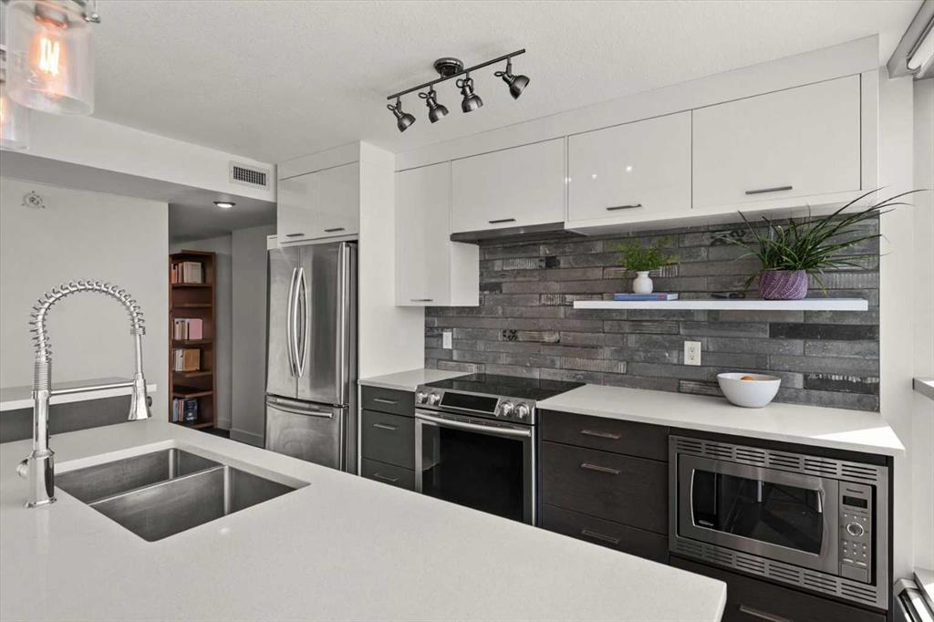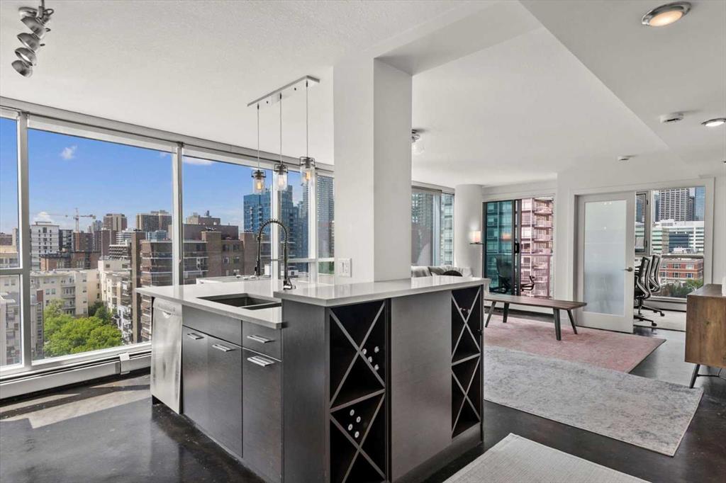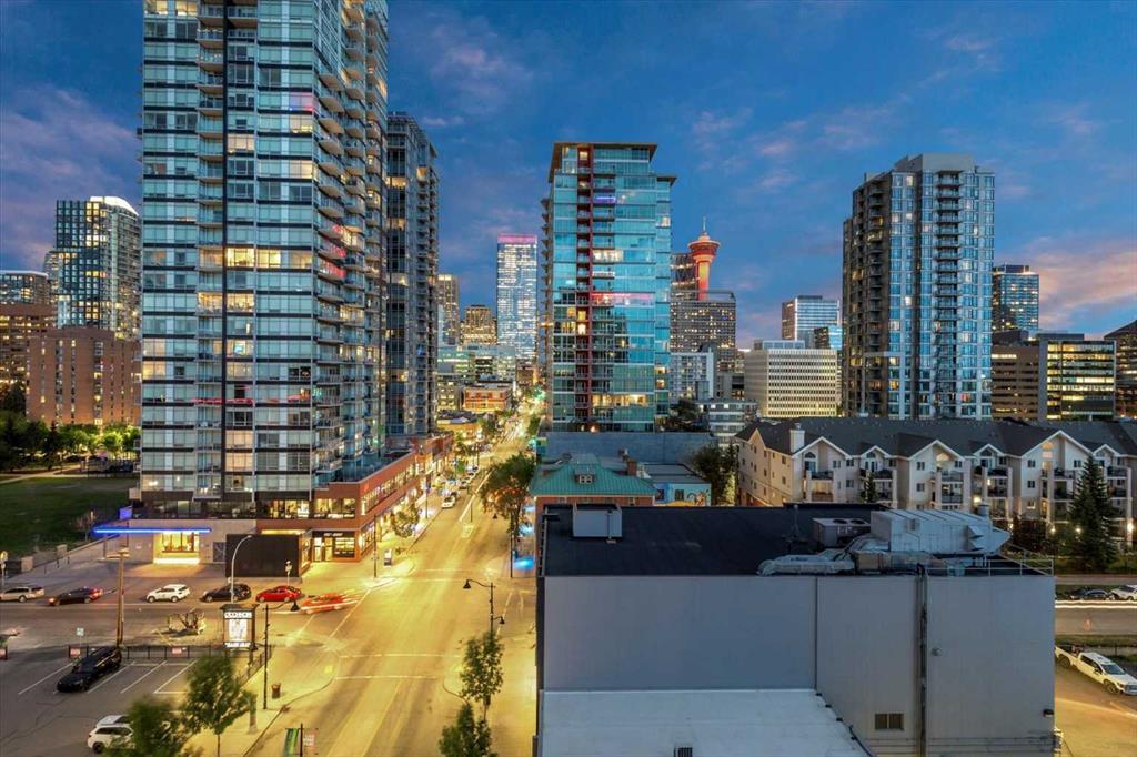 *CHECK OUT 360 VIRTUAL TOUR* West-Facing, Corner Unit with Modern Upgrades & Central A/C! Soak in the incredibledowntown views from this sleek 2 bedroom condo, where floor-to-ceiling windows bring the city skyline right into your living room. Located in TheChocolate building in the heart of The Beltline, enjoy the ultimate urban lifestyle just off 1st Street and 17th Ave, offering incredible restaurants,cocktail bars, and coffee shops, all while just a short distance from the Calgary Saddledome and Stampede Park. Designed for both comfort and style,the open-concept layout features polished concrete floors and a fully upgraded kitchen complete with quartz countertops, sleek stainless steelappliances, bright cabinetry, and a large island offering plenty of space to host and entertain. The main living area is the perfect spot to relax andenjoy the city views with floor-to-ceiling windows throughout. Wake up each morning to breathtaking views of the iconic Calgary Tower, perfectlyframed from your NW facing patio, the ideal spot to enjoy your morning coffee, or enjoy evening BBQs. The second bedroom offers versatile space,perfect for a comfortable home office or guest room. The updated 4-piece bathroom features a sleek modern vanity and ample storage. Additionalfeatures include in-suite laundry, a titled underground parking stall, complimentary bike storage, and a common courtyard patio for you to enjoyduring the summer months. Whether you're a first-time buyer, urban professional, or investor, this condo delivers exceptional value and anunbeatable location!