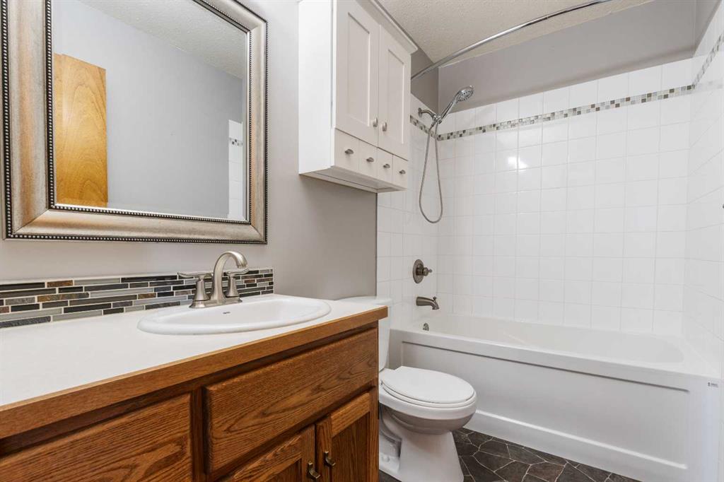 Welcome to this meticulously maintained 1,121 sq. ft. bungalow, a 1989-built gem with pride of ownership with no neighbours behind. Spacious front driveway and 14' x 22' front attached garage, perfect for storage and parking. You'll appreciate the convenience of a covered front path that leads directly to the entryway. Inside, the home is exceptionally clean and features timeless solid wood cabinetry throughout the kitchen and bathrooms, complemented by a fresh coat of paint across the entire main floor. This home has been thoughtfully updated with longevity in mind, including a 30-year shingle roof (2012) and a fully renovated main bathroom that beautifully integrates the original vanity to maintain the home's character. Recent professional improvements include stunning new flooring (2015) across the living room, hallways, bedrooms, and stairs, as well as a 2018 kitchen refresh featuring new countertops, sink, and backsplash. The master ensuite was also updated in 2017 with a new toilet, backsplash, sink, and lighting. Natural light floods both levels through oversized windows, highlighting the nearly finished basement which boasts a Dri-Core subfloor for year-round warmth and a bathroom rough-in (including shower drain) ready for your final touches.