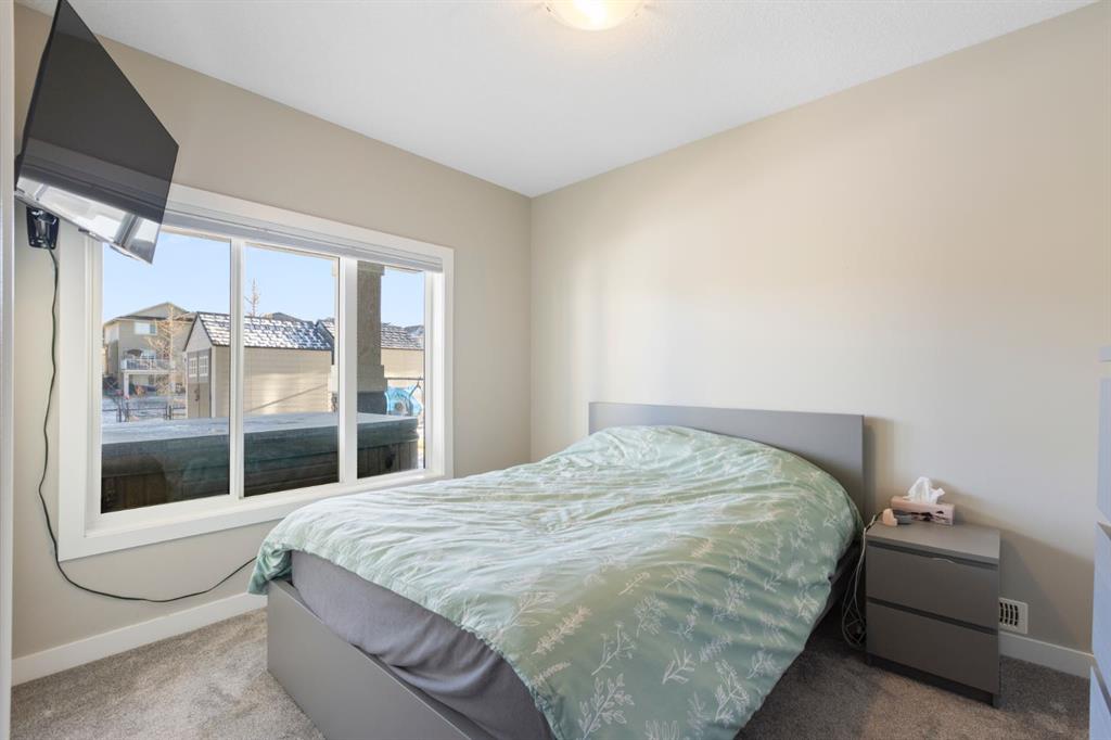 Wake up to water views in this stunning walk-out bungalow backing directly onto the Bayview canal, a rare opportunity to enjoy privacy, tranquility, and year-round outdoor living in one of Airdrie’s most desirable communities. With just water, pathways, and open sky, this home offers the peaceful retreat so many buyers are searching for but rarely find. Designed for effortless main-floor living, the home features vaulted ceilings throughout the main level, including the primary bedroom and living room, creating a bright, open atmosphere filled with natural light. The kitchen is both stylish and functional, showcasing a gas range, stainless steel appliances, quartz countertops, and a full side pantry, making it ideal for those who love to cook and entertain. Step outside to the east-facing back deck overlooking the canal—perfect for enjoying morning sun, coffee, or hosting guests. The primary suite is a true retreat, offering serene water views, a walk-in closet plus a second closet, and a spa-inspired 5-piece ensuite with dual sinks and a deep soaker tub. The main level also includes a second bedroom, full bathroom, convenient laundry room, and a spacious mudroom off the garage, adding everyday practicality to the elegant layout. A cozy gas fireplace anchors the living room, enhancing both comfort and ambiance. The finished walk-out basement extends the living space with a large family room, two additional bedrooms, a full bathroom, and a wet bar with patio access, making it ideal for entertaining, guests, or multigenerational living. Tucked away beneath the stairs is a hidden “secret room,” accessed through a closet—perfect as a play space, dog den, or additional storage. The fully landscaped backyard is complete with a hot tub and a gate providing direct access to the walking path and canal, where residents enjoy skating, hockey, canoeing, kayaking, paddle boarding, and peaceful strolls throughout the seasons. Located in a family-friendly, well-maintained neighbourhood, this home is just a short walk to Nose Creek Elementary, multiple parks, playgrounds, a bike track, tennis courts, basketball courts, and an outdoor fitness area. Bayview Park, with its creeks, picnic areas, amphitheater, and additional tennis courts, is minutes away. In winter, the community comes together to create skating rinks enjoyed all season long—right outside your back door. This 4-bedroom, 3-bathroom walk-out bungalow delivers a lifestyle defined by convenience, comfort, and connection to nature. Backing onto the Bayview canal, it offers a rare blend of privacy, views, and low-maintenance luxury in a quiet, established setting—an exceptional place to call home.