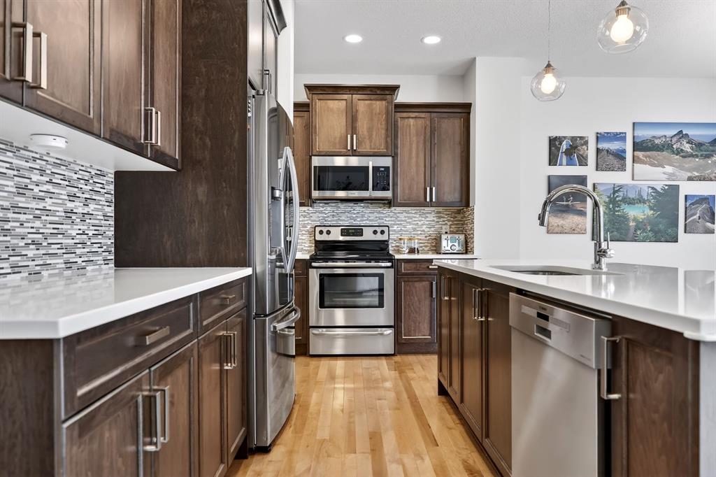 Welcome home to 276 Hillcrest Drive. Backing onto green space and a walking path with a sunny west-facing backyard, this beautifully maintained home offers 2,155 sq ft of thoughtfully designed living space with a bright, open layout and a true sense of comfort from the moment you step inside. The main floor features hardwood flooring, a dramatic two-storey front entry, and a spacious kitchen overlooking the backyard. Complete with a large island, stone countertops, maple cabinetry and a tucked away walk-in pantry, the kitchen is both functional and inviting. The adjacent dining area opens onto the oversized deck, offering west-facing exposure and a sense of separation from neighbouring homes thanks to the green space and walking path behind. Upstairs offers an excellent family friendly layout with 3 bedrooms, a generous bonus room, upper laundry, and a built-in work or tech area. All 3 bedrooms include walk-in closets, and the tech area also features its own walk-in closet, providing exceptional storage for linens, games, puzzles, or seasonal items. The primary suite is privately positioned away from the secondary bedrooms and offers west-facing windows, a walk-in closet, and a spacious five-piece ensuite with dual sinks, soaker tub, glass shower, and private water closet. This home is fully landscaped and fenced, Certified Built Green, solar-ready, and includes additional features such as Central Air Conditioning, 9’ knockdown ceilings on the main floor, a gas fireplace, gas lines to the BBQ and stove, and basement bathroom rough-in, and a radon mitigation system installed as a proactive, preventative measure for added peace of mind. Ideally located directly across from the Hillcrest public school and close to parks, playgrounds, pathways, and shopping at Cooper’s Promenade and the nearby new South Point Village retail development. This home also offers excellent access to Deerfoot Trail (QEII), making commuting to Calgary, Edmonton, and the airport convenient and efficient. A move-in-ready home offering space, light, storage, and an outstanding location.