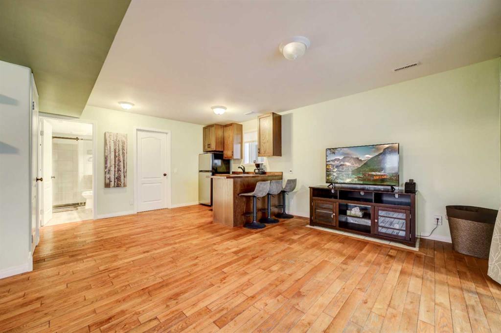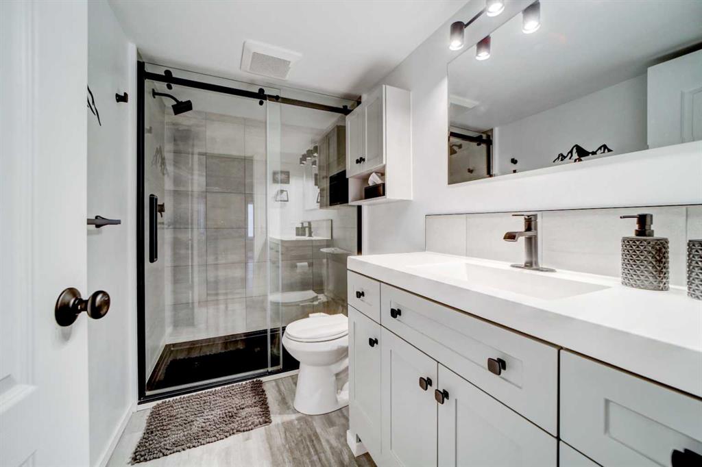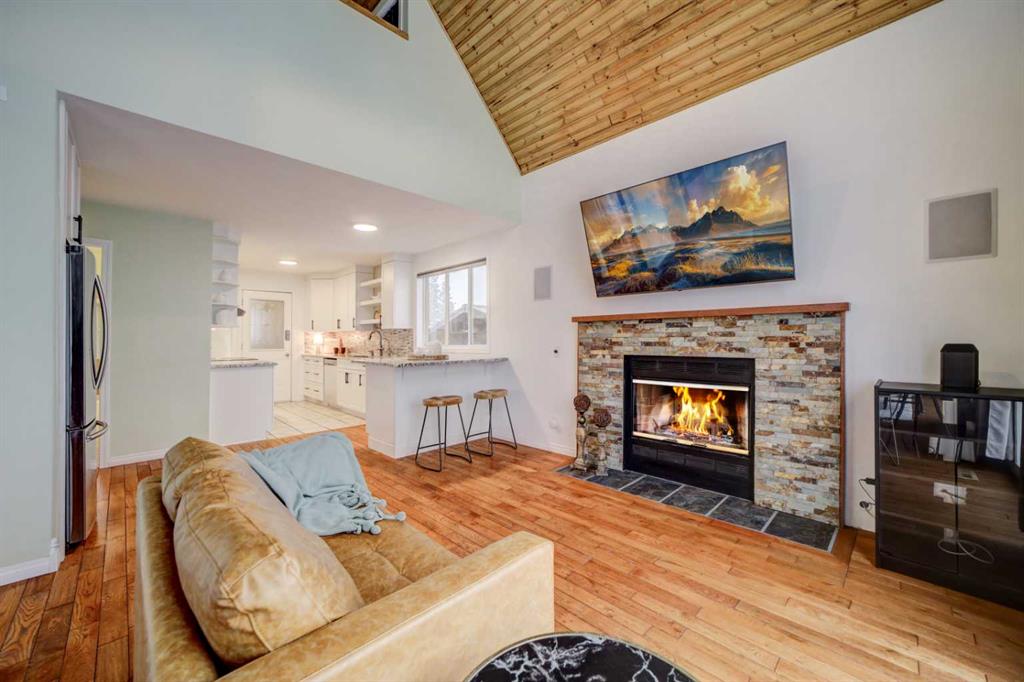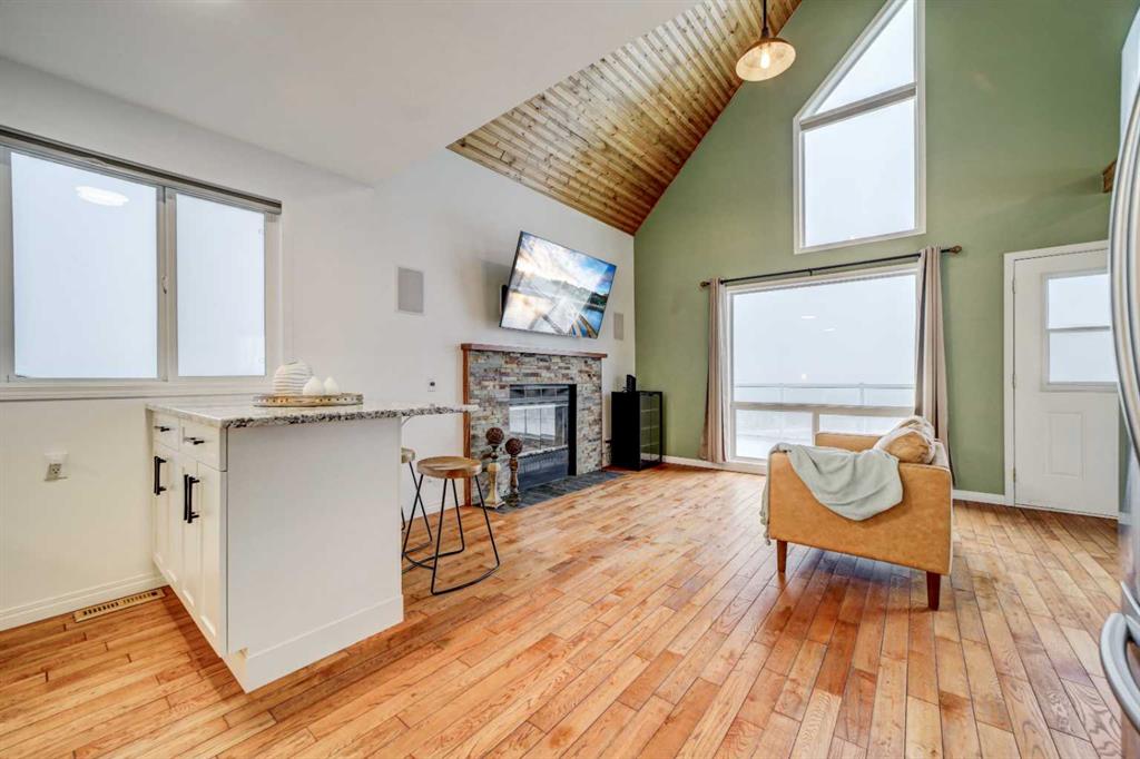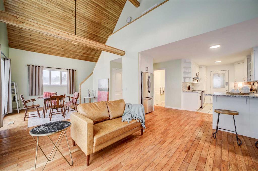 This property truly has it all and is move-in ready! Situated on 0.91 acres at the end of a quiet street, the home has the most amazing, unobstructed mountain views. Built on a slab foundation, the first floor features an enclosed sunroom - the perfect place to enjoy the views in any weather, with an electric fireplace for cooler days. The family room features dual patio doors leading to the sunroom, providing natural light and access to the views. This level also has a large bedroom and beautifully renovated bathroom and kitchenette. Subject to the appropriate municipal approval, it would make a great short-term rental. The second level features gorgeous, vaulted ceilings and a large deck, all designed to highlight the beautiful mountains. There are rich hardwood floors, and a fully renovated kitchen with granite countertops and good-sized breakfast bar peninsula. The open floor plan brings everyone together with a wood fireplace providing warmth & ambience. The top floor is dedicated to the private primary bedroom, complete with four-piece ensuite and walk-in closet. Additional amenities include a double heated garage and newly fenced private yard with an expansive deck, built-in garden boxes and a large gate suitable for RV or additional parking. An added bonus - the electrical wiring is in place to add a hot tub to the deck. Recent upgrades to the property include central air conditioning, hot water tank, water softener, reverse osmosis water filtration system, carpeting, and remote-controlled blinds on the top windows, as well as insulation, windows and a gas furnace in the garage. The property’s exterior was improved with the addition of new foam insulation and new stucco on the house, a newly poured concrete driveway and walkway, and fresh paint on the garage. There is so much to see at this property - check out the attached video and virtual tour. Call your favourite REALTOR® to schedule a showing today!