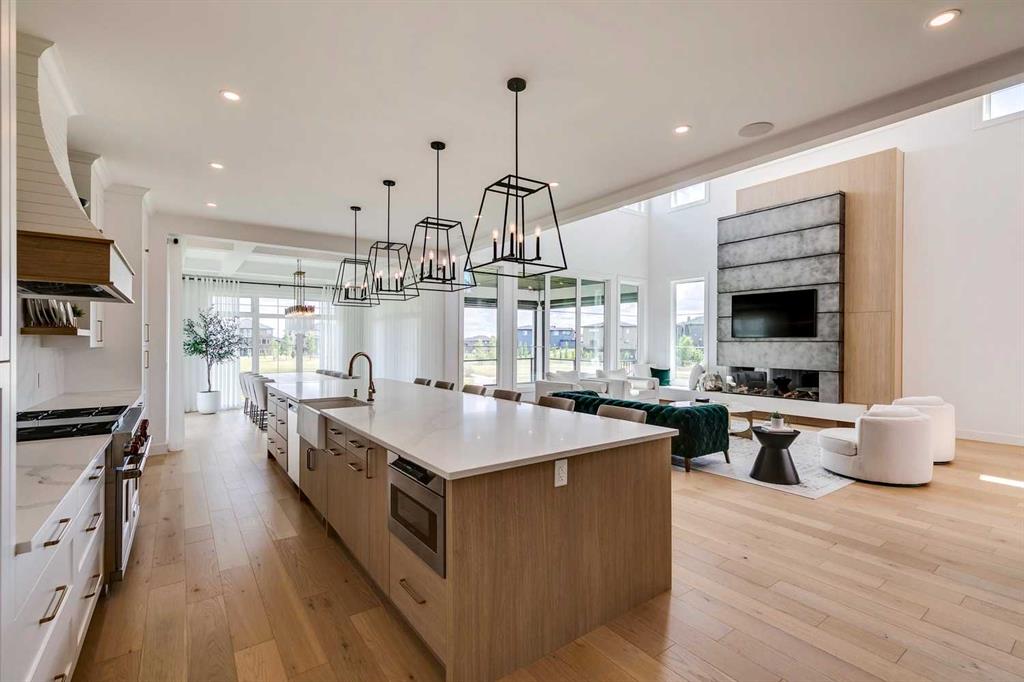 Welcome to the brand new development of Knightsbridge in Cambridge Park. Minutes away from access to Stoney Trail and East Hills shopping centre. The EVERLY is a stunning estate home designed to blend luxury and practicality. Set on a generous 8208 sq ft lot, this home provides an expansive backyard and a side-drive FOUR car garage. These are not your typical cookie cutter homes. With 3,643 sq ft. of living space, this custom-built masterpiece features 5 spacious bedrooms and 4.5 beautifully designed bathrooms, offering ample room for family and guests. This home is loaded with upgrades including: Main floor full ensuite bath as well as an added powder room, ensuite bathrooms upstairs for added convenience, high ceilings & a Spice kitchen to enhance your culinary experiences. Inside, the main floor exudes elegance with rich hardwood flooring and 9 ft ceilings with 8 ft doors, and striking black-framed windows that invite natural light. The gourmet kitchen is a chef’s dream, complete with an oversized island, a secondary spice kitchen, sleek stainless steel appliances. An open concept formal dining and living area set the stage for gatherings. The main floor also includes a separate flex room that can be perfect for a home office or a prayer room. The main floor also feature a spacious bedroom along with a 4 pc ensuite bathroom, perfect for multigenerational living. The primary suite on the upper floor is a true sanctuary with a freestanding tub and a custom-built closet. The home’s thoughtful design continues with 3 more generous sized bedrooms on the second floor, a bonus room for entertaining, ensuite bathrooms for convenience, as well as a second floor laundry room. Step outside to enjoy a completed rear deck with steps leading to a private outdoor oasis. This home also offers a 4 car attached garage allowing plenty of space for extra parking. This community is within minutes to Calgary, Chestermere, and East Hills, 18 minutes to Downtown Calgary, and provides quick access to Stoney Trail, Highway 1, and McKnight Blvd making it easy to get anywhere in and around the city. Located near shopping centres, public and private schools, Khalsa school's, parks, and many other amenities, while still offering quiet country-living with wide open green spaces, walking paths and playgrounds.
