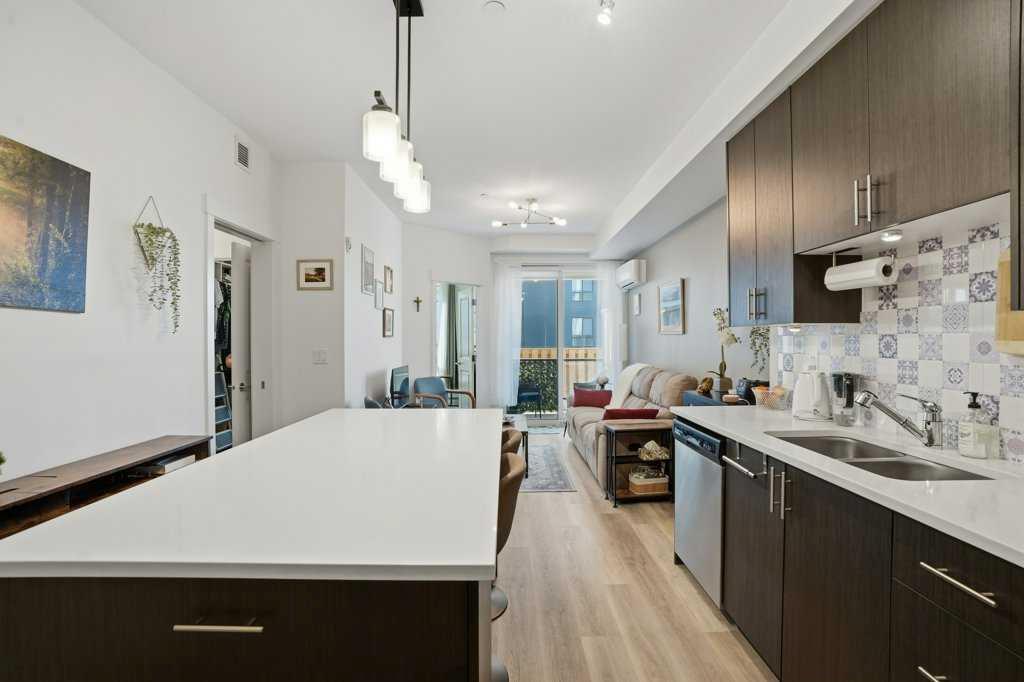 Modern Comfort ; Prime Location Discover this stylish and Bright unit in the heart of Sage Hill, designed for both comfort and convenience. The open-concept layout welcomes you with a spacious foyer that flows seamlessly into the kitchen, living area, and a private West facing balcony ideal for entertaining or relaxing at home. Enjoy a bright, neutral color palette, durable vinyl plank flooring, and stainless-steel appliances. This unit features Large west facing windows flooding the living room and bedroom with natural light. The primary bedroom boasts a custom walk-in closet and private access to a four-piece bathroom, while the second bedroom off the entry is perfect for a home office or exercise room Step outside to scenic green spaces and walking/biking paths, bringing nature close to home. Shopping and dining are minutes away at Sage Hill Crossing, with quick access to Beacon Hill Centre and Costco. Commuting is simple with nearby Stoney Trail, connecting you to the entire city. Experience designer style, modern amenities, and upscale finishes , including a huge island , quartz counter tops through out, oversized full height kitchen cabinets , air conditioning, upgraded light fixtures , full size front load washer and dryer and an unbeatable location, this home truly has it all. Added bonus, the parking stall is Titled adding value to your unit. Located in front of the balcony for easy access. Stall number 15.