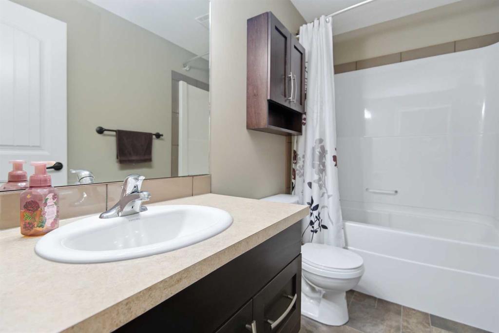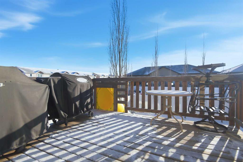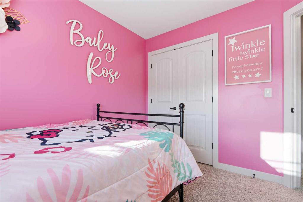 Classic family home, quiet close, bright backyard (with its own playground), short safe walk to elementary school and not far from local shops and restaurants....all ingredients for the perfect place to reside, raise a family and plan your future! This Blackfalds bilevel has a giant primary suite over the garage with a 4 piece ensuite and generous walk in closet. Main level has double vaulted ceiling, massive kitchen with upscale stainless appliances, family sized eating area with access to the deck for BBQs and entertainment. Two good sized bedrooms on main and well as two more in basement with 2 more 4 piece baths offers lots of space and options for a growing family. Heated attached garage currently houses a "dream machine" and personal use equipment but could be your "hobby spot" or just a garage. Vinyl fenced south backyard with irrigation system completes a well presented and great value home...