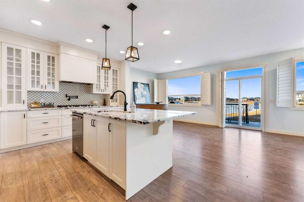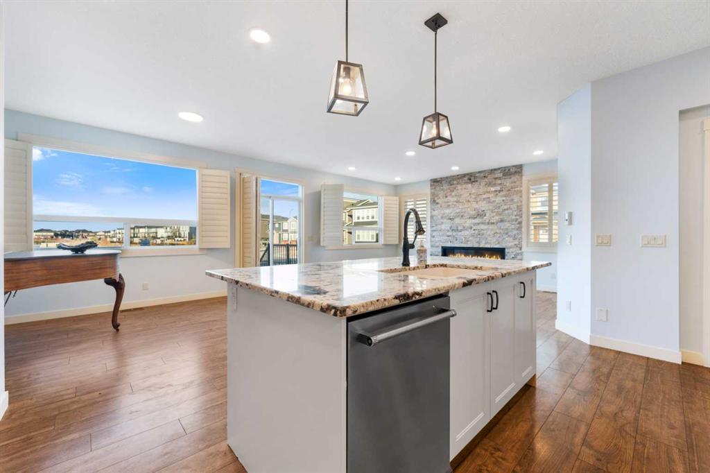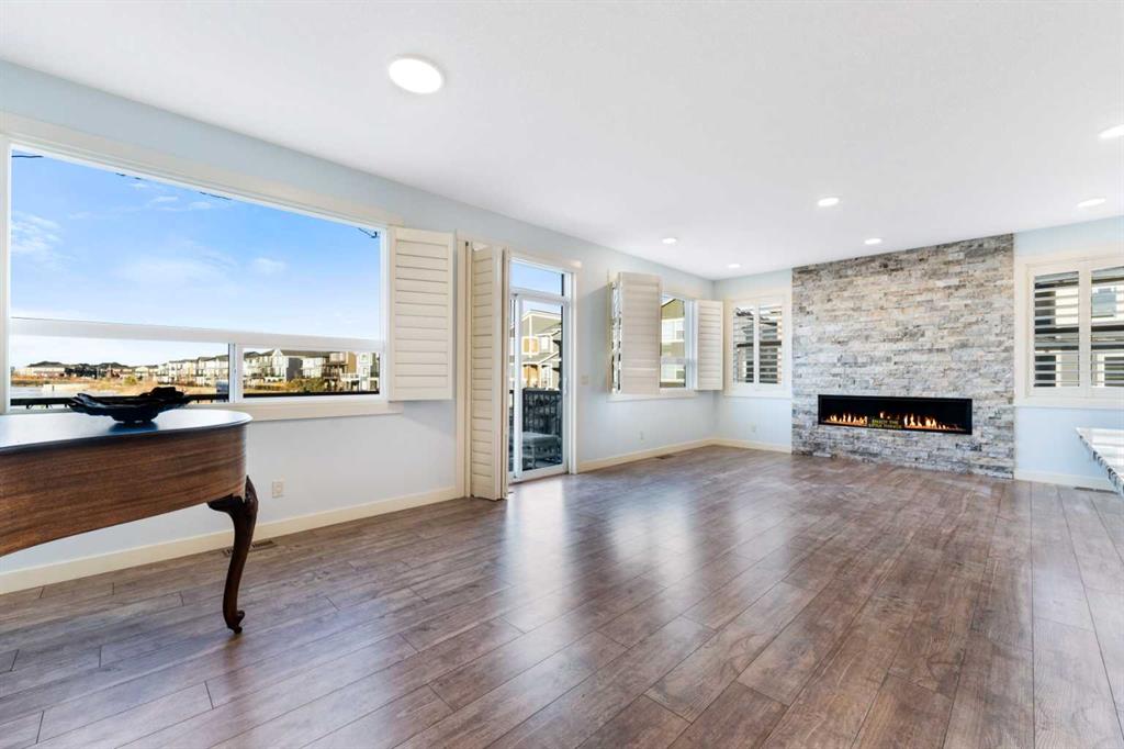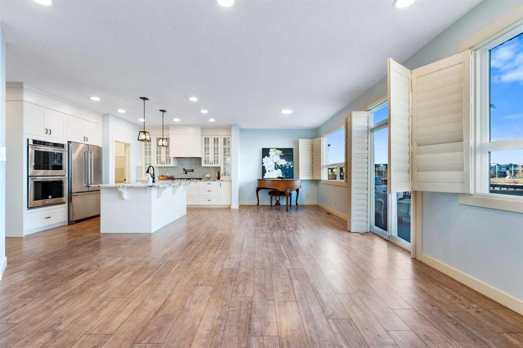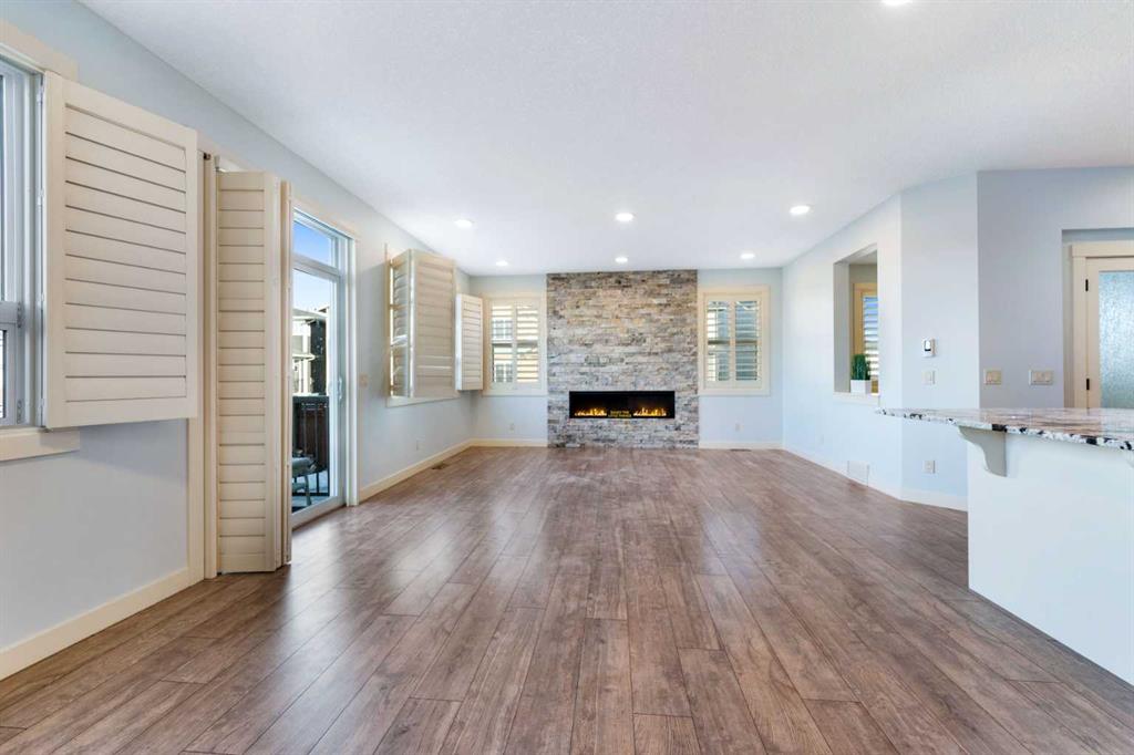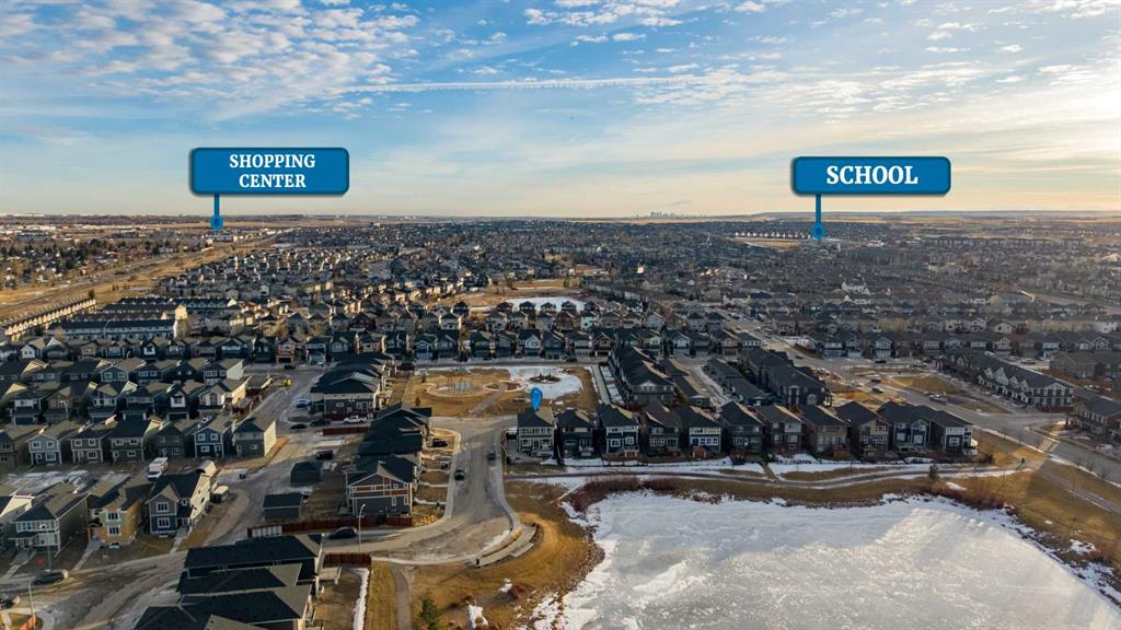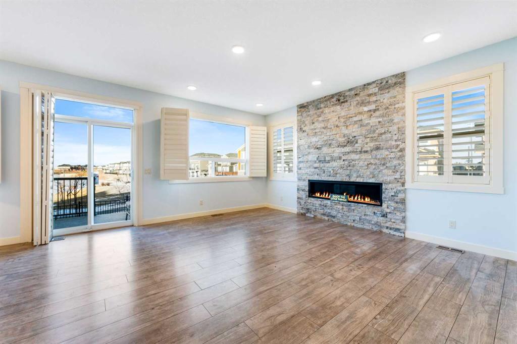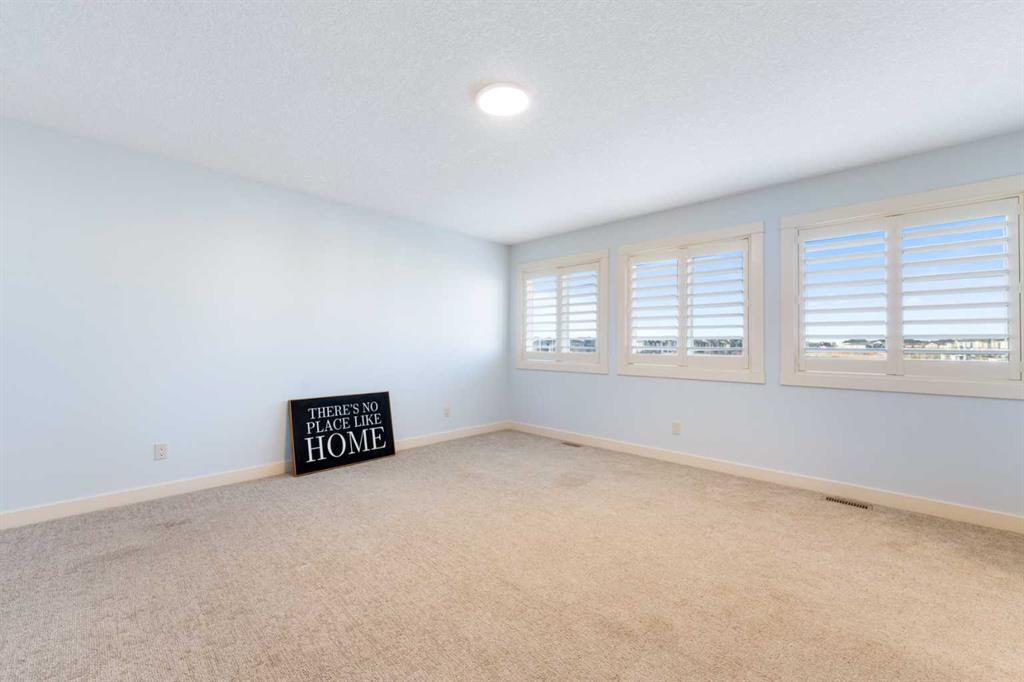 OPEN HOUSE JAN 31 & FEB 01, SAT, SUN: 1-3PM Welcome to this beautifully upgraded corner-lot family home in the heart of Midtown, Airdrie, backing onto the pond and walking paths with park-facing views that offer calming scenery and exceptional privacy. This home provides over 2,500 sq ft of thoughtfully designed living space above grade, plus an unfinished basement ready for future development. Inside, you’ll appreciate 9-foot ceilings throughout, a vaulted upper-level living area, and an expanded back wall that enhances natural light and usable space. The main floor features a functional open-concept layout with a spacious kitchen complete with double wall ovens, a pot filler above the range, a dedicated pantry fridge, and seamless flow into the dining and living areas anchored by an upgraded stone fireplace featuring one of the largest fireplace sizes available. Upstairs offers an ideal family layout with a generous primary retreat and spa-inspired ensuite with the largest tub option, additional well-sized bedrooms, a kids’ wet-room bathroom with three sinks, shower, and tub, convenient upper-level laundry, and excellent built-in storage. The outdoor space has seen over $30,000 invested, including a stone patio with fire pit, low-maintenance deck, and natural gas hookup, all perfectly positioned to enjoy pond views and the surrounding pathways. Practical upgrades include lifetime-warranty shutters on every window, a water softener system, a custom mudroom with cleaning closet and coat hooks, and an extra-long, extra-wide garage ideal for trucks, with natural gas and power roughed in for a heater, hose bibs, and security wiring. Located in the vibrant Midtown community, this home is steps from walking paths, parks, and green spaces, close to schools, shopping, restaurants, and everyday amenities, with easy access to major routes, making it a rare opportunity to own a premium, park-front, pond-backing home in one of Airdrie’s most desirable neighborhoods.