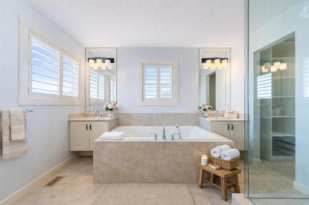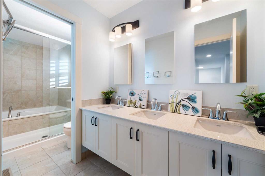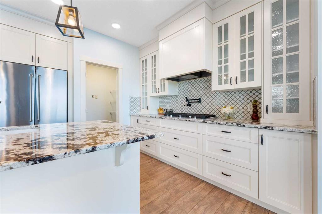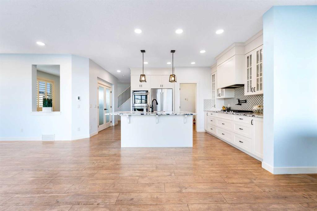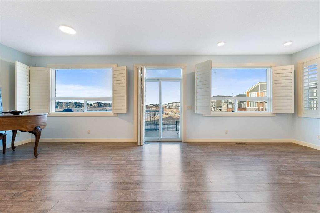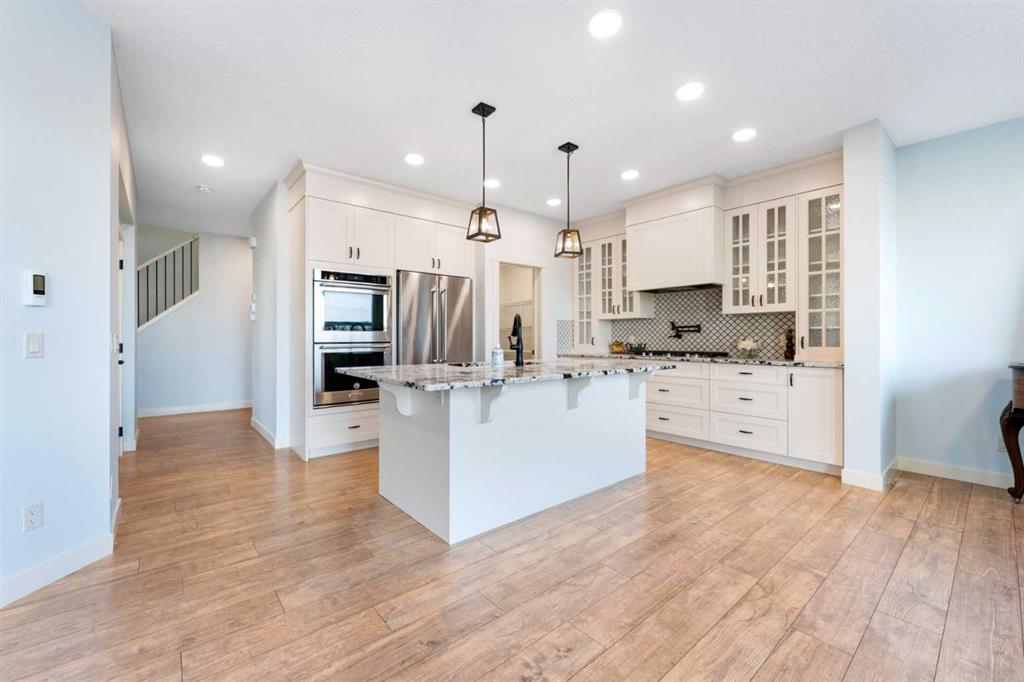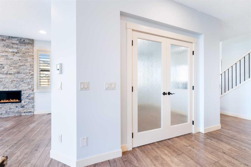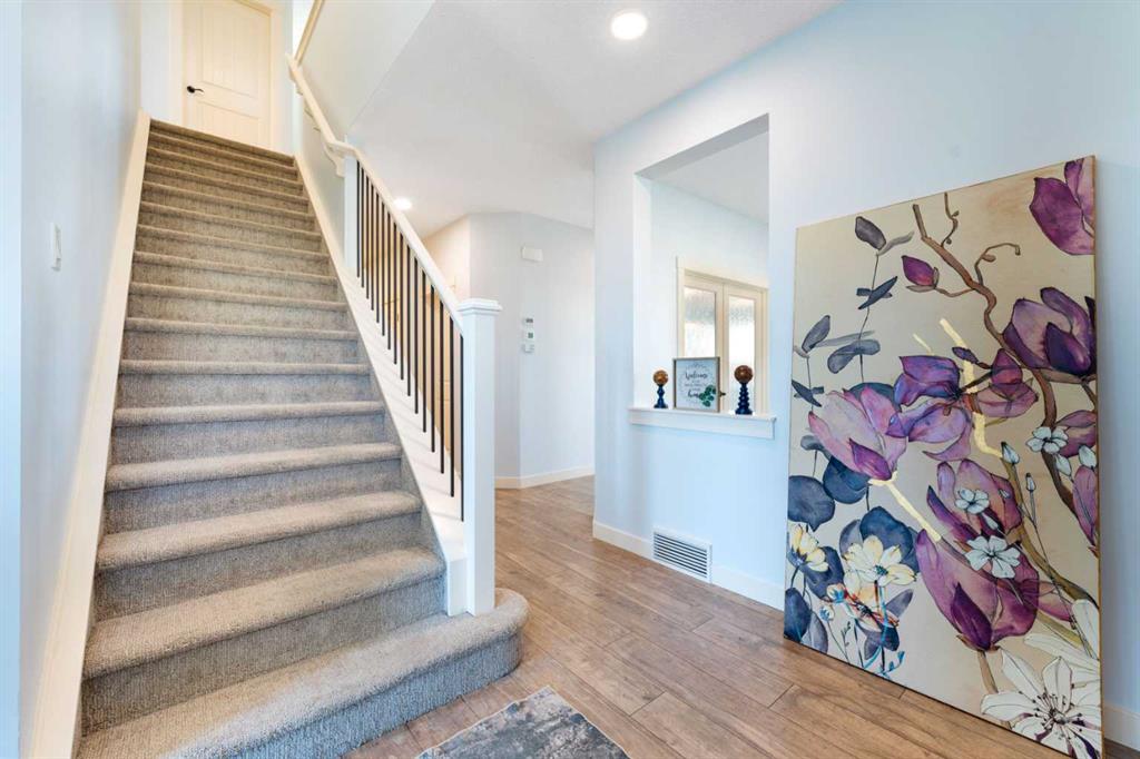 OPEN HOUSE JAN 31 & FEB 01, SAT, SUN: 1-3PM Welcome to this beautifully upgraded corner-lot family home in the heart of Midtown, Airdrie, backing onto the pond and walking paths with park-facing views that offer calming scenery and exceptional privacy. This home provides over 2,500 sq ft of thoughtfully designed living space above grade, plus an unfinished basement ready for future development. Inside, you’ll appreciate 9-foot ceilings throughout, a vaulted upper-level living area, and an expanded back wall that enhances natural light and usable space. The main floor features a functional open-concept layout with a spacious kitchen complete with double wall ovens, a pot filler above the range, a dedicated pantry fridge, and seamless flow into the dining and living areas anchored by an upgraded stone fireplace featuring one of the largest fireplace sizes available. Upstairs offers an ideal family layout with a generous primary retreat and spa-inspired ensuite with the largest tub option, additional well-sized bedrooms, a kids’ wet-room bathroom with three sinks, shower, and tub, convenient upper-level laundry, and excellent built-in storage. The outdoor space has seen over $30,000 invested, including a stone patio with fire pit, low-maintenance deck, and natural gas hookup, all perfectly positioned to enjoy pond views and the surrounding pathways. Practical upgrades include lifetime-warranty shutters on every window, a water softener system, a custom mudroom with cleaning closet and coat hooks, and an extra-long, extra-wide garage ideal for trucks, with natural gas and power roughed in for a heater, hose bibs, and security wiring. Located in the vibrant Midtown community, this home is steps from walking paths, parks, and green spaces, close to schools, shopping, restaurants, and everyday amenities, with easy access to major routes, making it a rare opportunity to own a premium, park-front, pond-backing home in one of Airdrie’s most desirable neighborhoods.