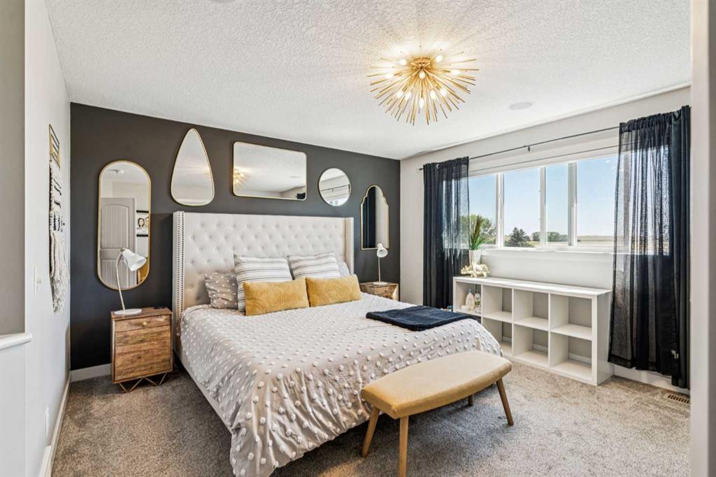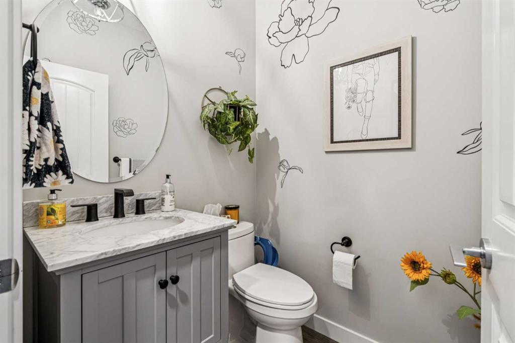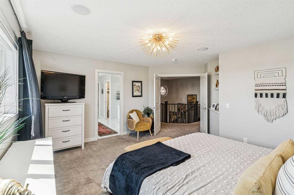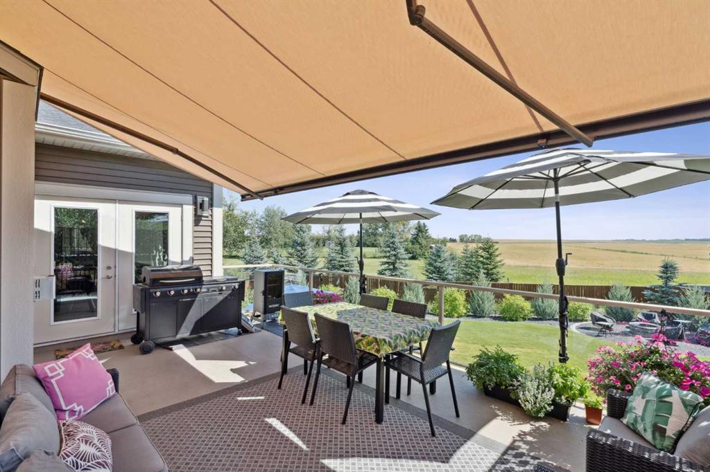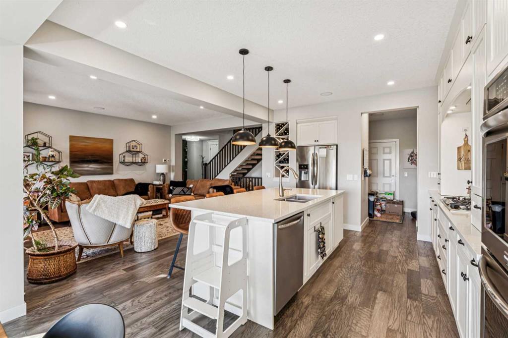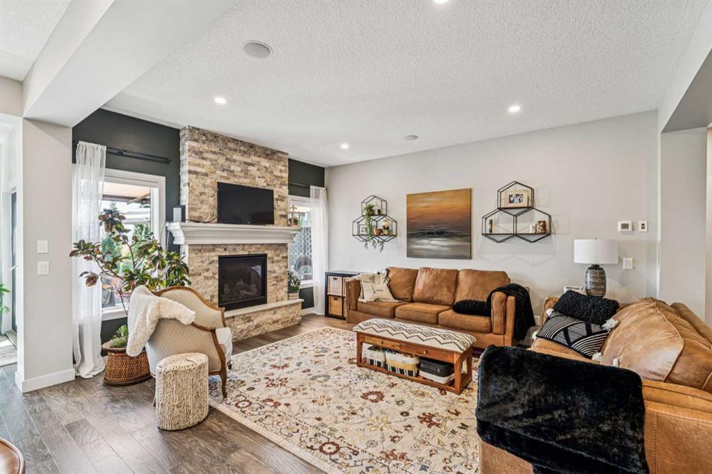 Step into this beautifully designed home through a bright and inviting foyer, featuring modern light fixtures and ample closet space—setting the stage for the sophistication found throughout this SOLAR POWERED home. Just off the main entry, you'll find a well-appointed half bath and a versatile flex room—ideal as a home office, playroom, or guest suite. The open-concept main living area is designed for both entertaining and everyday comfort. The spacious family room flows seamlessly into the dining area and showstopping kitchen, all framed by large windows that capture stunning prairie views. The gourmet kitchen features dual ovens, a 5-burner gas cooktop, sleek countertops, elegant backsplash, and ample prep and storage space. A dedicated nook offers the perfect setup for a coffee bar or extra appliances. A gas line is ready for outdoor grilling on the upper deck, which includes a retractable awning for shade and comfort. Off the kitchen, a large mudroom with custom built-ins leads to a generous 3-car garage—keeping life organized and efficient. Upstairs, you’ll find four bright and spacious bedrooms. One includes a built-in Murphy bed for added flexibility. A vaulted-ceiling bonus room provides the perfect space for movie nights, gaming, or a quiet retreat. The luxurious primary suite overlooks uninterrupted prairie views with no rear neighbors. The spa-inspired ensuite features a soaking tub, dual vanities, a large glass shower, and tile finishes. A massive walk-through closet connects directly to the upstairs laundry room for maximum convenience. The finished lower level has been extensively renovated to add a fully legalized in-law suite that expands your living space with a cozy sitting area and fireplace, a second kitchen—ideal for multi-generational living or guests—a large bedroom, and a full bathroom with custom walk-in closet. A second laundry area with stacked washer and dryer adds extra practicality. In-ceiling speakers throughout the home and outdoor areas create the perfect ambiance for entertaining. Step out onto the beautifully landscaped yard, complete with irrigation system and four raised garden beds. Five unique outdoor seating areas, including a fire pit space, make this backyard ideal for gatherings, relaxing, or play. A charming playhouse and hot tub (both negotiable) offer even more ways to enjoy this incredible outdoor retreat. This exceptional home combines thoughtful design, high-end finishes, and unmatched comfort—inside and out. Come experience the perfect blend of elegance, space, and functionality.