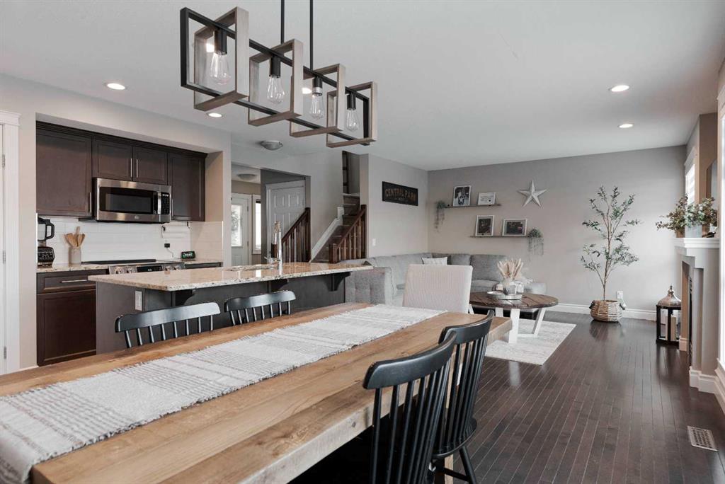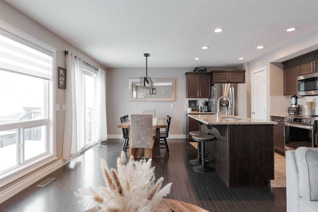 Welcome to 108 Diamondstone Ridge, a beautifully maintained home backing onto walking trails in the highly desirable Stonecreek community. Pride of ownership is evident throughout this spacious 4 bedroom, 3.5 bathroom home featuring a bonus room and a fully developed basement with separate entrance. The welcoming front foyer offers ample space and a convenient coat closet, creating a comfortable first impression for guests. The main level boasts an open concept layout filled with natural light from the large rear windows. The kitchen is well appointed with new stainless steel appliances, dark cabinetry, granite countertops, a walk-in corner pantry, and a large center island with eat-up breakfast bar. Adjacent is a generous dining area with direct access to the two-tier back deck, ideal for indoor-outdoor entertaining. The living room is warm and inviting with a gas fireplace and hardwood flooring throughout the main level. A conveniently located 2-piece bathroom sits near the entrance to the heated double attached garage, completing the main floor. Upstairs, the thoughtfully designed second level features three bedrooms, a 4-piece main bathroom, and a large bonus room that separates the primary suite from the secondary bedrooms, perfect for added privacy. The spacious primary bedroom easily accommodates king size furniture and includes a walk-in closet and 4-piece ensuite. A full-size laundry room is also conveniently located on this level. The fully developed basement offers excellent flexibility with a separate entrance, fourth bedroom, modern 4-piece bathroom, and a massive recreation/family room, making it ideal for guests, extended family, or future rental potential. Outside, enjoy the large west-facing backyard, fully fenced and landscaped to take full advantage of Fort McMurray’s stunning sunsets. The yard features a huge two-tier deck and stone surround fire pit, perfect for entertaining. Backing directly onto walking trails, the property offers immediate access to neighborhood strolls and outdoor enjoyment. Ideally located within walking distance to grocery stores, restaurants, pubs, spas, shops, parks, and more, this home offers both comfort and convenience in one of Fort McMurray’s most sought after neighborhoods.