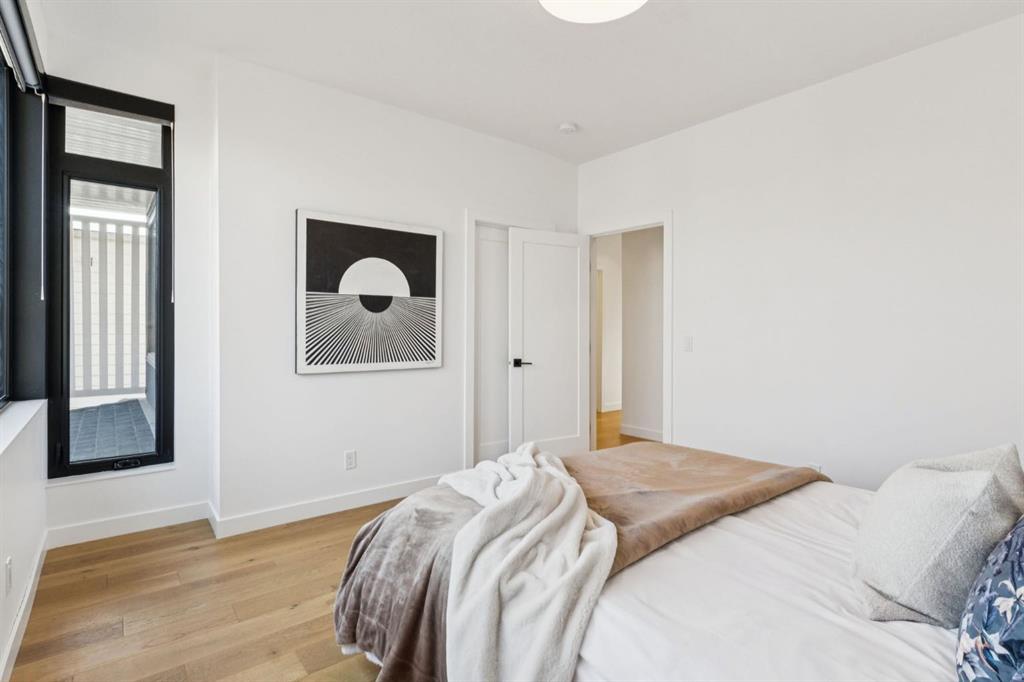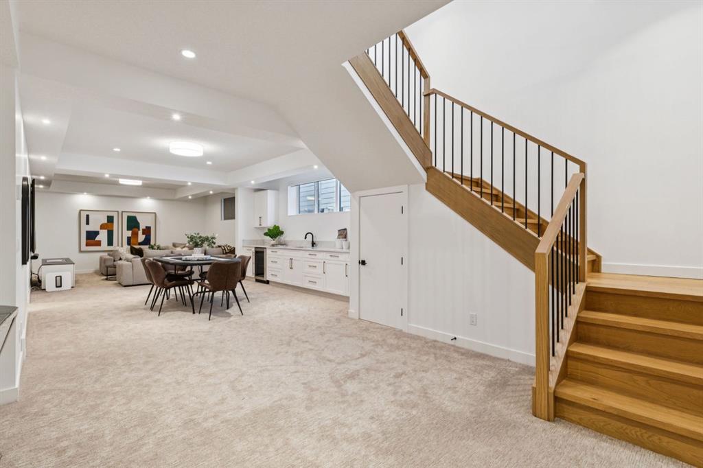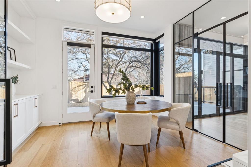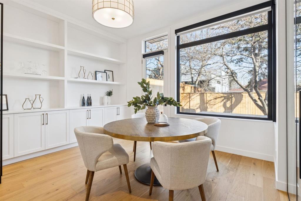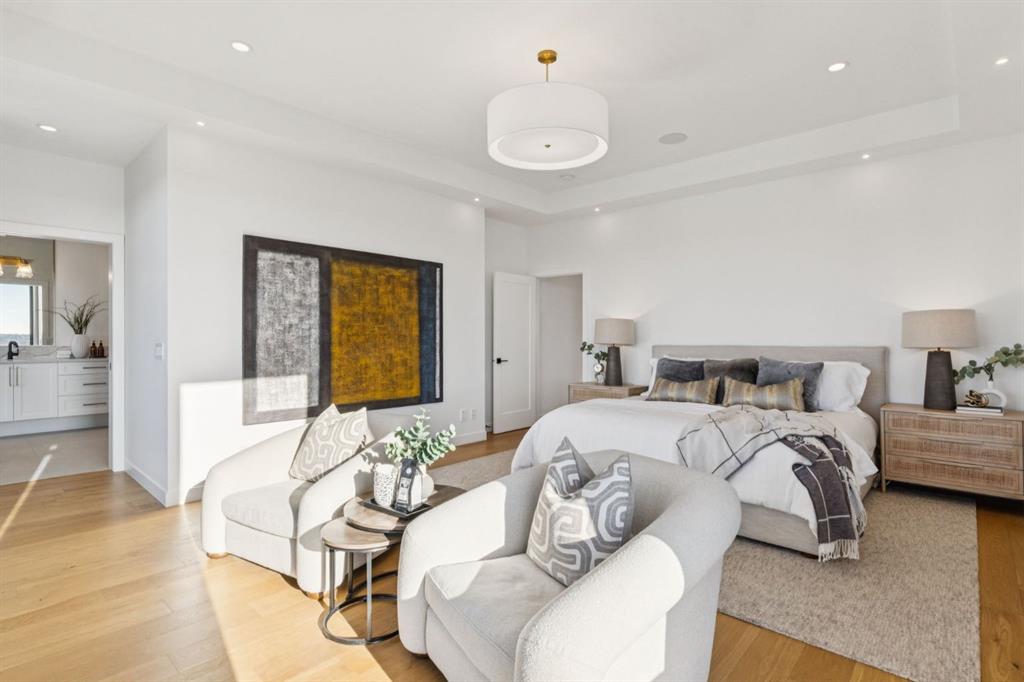 An extraordinary hillside sanctuary awaits in the exclusive inner-city community of Briar Hill. Ideally located on a peaceful street, this fabulous home offers over 4,600 square feet of contemporary living space and sweeping views of the city skyline and the Rocky Mountains. Sunlight streams through floor-to-ceiling windows, filling the open main floor all day with natural light. A heated porcelain-tiled foyer, 10 ft. ceilings, and wide-plank white oak floors throughout provide warmth and sophistication. Relax by the modern gas fireplace on quiet winter evenings with a book or connect with friends and family on the front deck. The chef’s dream kitchen features a large quartz-topped island with cabinetry on both sides, ideal for meal prep and casual dining. Premium Italian-designed Fulgor Milano appliances—including a professional 6-burner gas stove, an integrated warming drawer, and a combi speed oven—make entertaining seamless. The butler’s pantry adds functionality with an additional counter space, storage, and a wine/beverage fridge for extra convenience. Host memorable dinners in the expansive dining room, with sliding doors to a private back patio and backyard, which is perfect for BBQ's and al fresco dining in warmer months. The private office, accessible from the kitchen and backyard, is filled with morning light and offers a tranquil, creative workspace. Upstairs, the serene primary suite impresses with a 10-foot tray ceiling and a second balcony with west-facing mountain views. A cozy seating area is perfect for morning coffee, watching the city wake, and enjoying the incredible, vibrant Calgary sunsets. The luxurious ensuite has a massive double steam shower with a bench, heated floors, oversized soaker tub, dual vanities, and a large walk-in closet. Begin and end your day with relaxation and rejuvenation in the wellness room, featuring an authentic Finnish sauna with a Bluetooth sound system. Two additional bedrooms with oversized windows, spectacular city views, and walk-in closets provide comfort for family or guests. A convenient laundry room with sink and storage completes the upper level. The lower level includes a spacious rec room with a wet bar, a beverage fridge, and flex space for game tables or workouts. The entertainment area is ideal for movie nights or big game day parties. The fourth bedroom and full bath provide guests with privacy and ease. Two massive storage rooms and a large mudroom lead to the oversized 698 sq. ft. heated double garage, with even more storage or a spot for a workshop. Highlights include a Sonos home & audio system, Hunter Douglas electronic window coverings, Lutron integrative lighting, hydronic in-floor heating in the lower level and central air conditioning. Only 10 minutes from downtown, a 20-minute walk to shops and restaurants in Kensington, and steps from walking paths on the hillside. Experience luxury, comfort, and breathtaking surroundings—this is the quintessential urban lifestyle you’ve been waiting for!