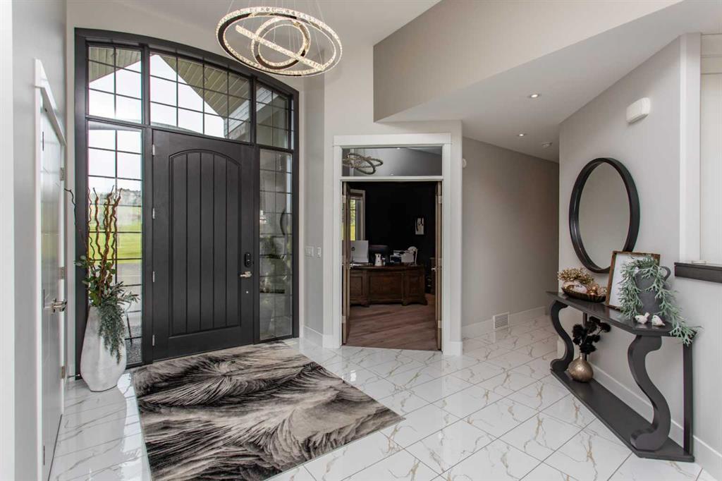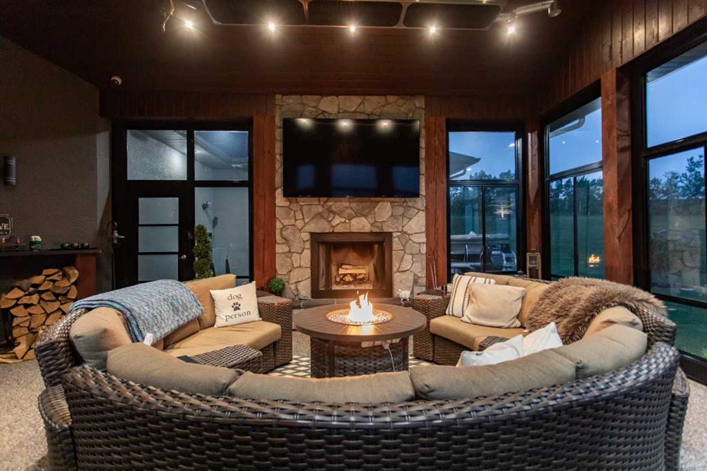 EXPERIENCE UNRIVALED LUXURY LIVING IN THIS BREATHAKING WALKOUT BUNGALOW ON 3.06 ACRES. Welcome to a lifestyle of ELEGANCE and sophistication in this custom-built masterpiece by the renowned SORRENTO CUSTOM HOMES, one of Red Deer's most prestigious builders. This stunning walkout bungalow offers the perfect blend of privacy, space and high-end living. Boasting 4 spacious bedrooms and 4.5 lavish bathrooms, this home is designed for comfort and style. The heart of the home dazzles with QUARTZ countertops, polished tiled floors and rich hardwood flooring, showcasing the exquisite craftsmanship & attention to detail throughout. The primary bedroom features tray ceilings, 2-sided gas fireplace with stone to ceiling, private balcony, glass railing and awning. Indulge in SPA-LIKE LUXURY everyday in this 5-piece ensuite that redefines indulgence. Greeted by heated floors, 6 ft soaker tub, custom steam shower, water closet, and makeup desk! The walk-in closet is completed with bench storage seating, lots of custom built in drawers, and a shoe rack. The main floor features a laundry room with sink and lots of cabinetry, a spacious office with custom built in maple cabinets, drawers and bookcase. THE ULTIMATE THREE SEASON ESCAPE~ where comfort meets outdoor living. The CROWN JEWEL of this extraordinary home is the 3-season room that is designed to captivate and indulge. Host summer parties, or enjoy a quiet, fire-lit evening. The built-in BBQ, framed by sleek granite countertops that offer both STYLE & durability for effortless entertaining. As the sun sets, gather around the wood burning fireplace, where crackle of the flames set the mood for cozy nights & memorable conversations. All of this while taking in the breathtaking views of the city lights ~ A DAZZLING BACKDROP that transforms every evening into a private retreat. Step into the lower level that's anything but ordinary. This fully developed basement is a masterpiece of comfort, design, & functionality - every inch thoughtfully crafted for elevated living. Completed with operational in floor heat, gas fireplace, full size wet bar with NEW BEVERAGE fridge, and incredible theatre room with ambient lighting that sets a relaxing and inviting mood. A spacious designated gym equipped with treadmill, elliptical & workout bench. Step outside through walkout doors onto a stamped concrete patio, a serene escape surrounded by professional landscaping, stone retaining wall, mulched flower beds and fully irrigated. Other great features include: pavement to your front door, rock water fountain, epoxy floors in garage, with drains, a 2-pc bath in garage, wash sink, Hayley cabinets, RV parking with power & sewer dump, solar power gate, insulated theatre room, ensuite custom steam shower, walnut & maple cabinets, custom wine room, water filtration system, reverse osmosis, newer hot tub, maintenance free decking with farmless glass railing. This estate home offers a RARE opportunity to enjoy the finest luxuries in life, everyday.