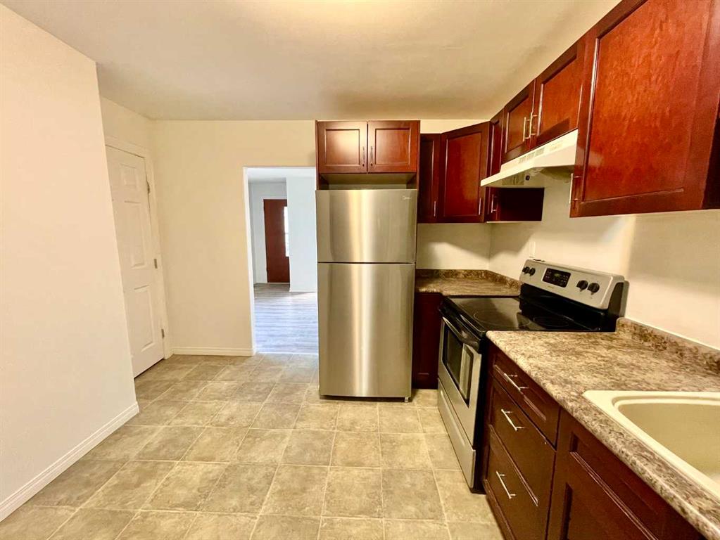 This cozy 3 bedroom 2 bath home is perfect for your first place or if you’re looking for a revenue property. Upstairs has been refreshed with new windows, flooring and paint. It also boasts a large living room, 2 bedrooms, 4 pc bath and a kitchen/dining that opens up to a covered deck. Downstairs finishes off with an extra bedroom, 3 pc bath, laundry and a storage room. Enjoy the privacy outside relaxing on the 10'x16' covered deck and being surrounded by mature trees and the fenced yard. Great location with only being half a block from the New hot water tank in 2026, new windows in 2024, and roof preservation spray applied to extend 5-10 years with a 5 year guarantee that can be transferred to the new owners. High School and Hospital plus not far from the Elementary School, downtown and the Peace Memorial Multiplex. Having a revenue property in Wainwright is always a great investment, don’t miss out on this one.