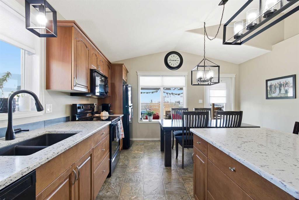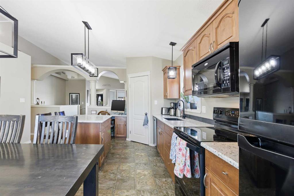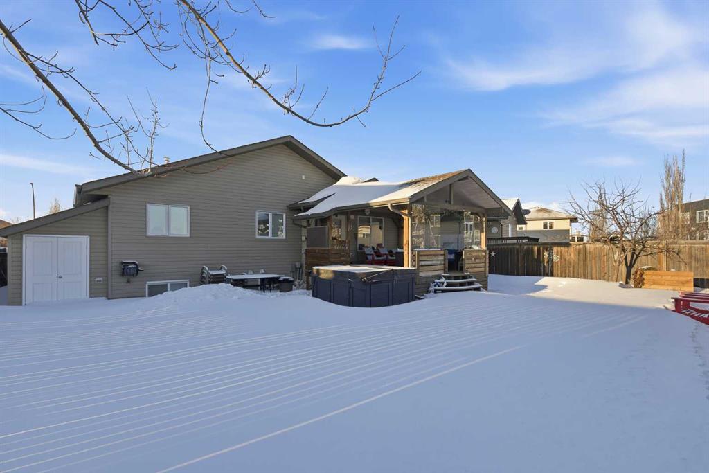 Welcome to this beautifully maintained 5-bedroom, 3-bathroom bungalow located in the heart of College Park, just steps from schools, parks, and the Servus Sports Centre. Built in 2006, this 1,261 sq ft home offers a thoughtful layout, quality finishes, and exceptional indoor-outdoor living. The main floor features three bedrooms, including a spacious primary suite with a walk-in closet and 3-piece ensuite. The large kitchen is ideal for both everyday living and entertaining, showcasing quartz countertops, a corner pantry, and an abundance of alder cabinetry. Central air conditioning ensures year-round comfort. The fully developed basement expands your living space with a generous family room and recreation room, two additional bedrooms (one with a walk-in closet), a full bathroom, a dedicated laundry room, and ample storage. Outside, you’ll find a well-manicured, fully fenced and landscaped yard designed for enjoyment and functionality. The covered deck/pergola features added glass, power, and natural gas hookup for your BBQ, making it perfect for entertaining. RV parking, a shed, and a hot tub (included) add even more value. Completing the property is an impressive 24 x 26 heated garage with 11.5-foot ceilings, easily accommodating two full-size vehicles. This move-in-ready home combines space, comfort, and an unbeatable location—an excellent opportunity for families looking to settle in College Park.