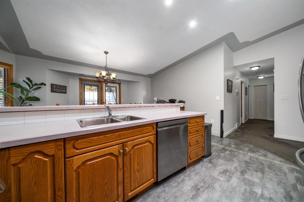 Welcome to this spacious 5 bedroom, 1,572 sqft bi-level located in the highly desirable Parkview neighbourhood. Known for its peaceful atmosphere and easy access to nature, this is a location that’s hard to beat. Just minutes from the Medicine Hat Golf Course, the scenic walking paths of Police Point Park, and with a park and playground just around the corner, endless opportunities to enjoy the outdoors is right out your front door. From the spacious entryway, you’re welcomed into a sunken front living room with vaulted ceilings that add to the sense of openness and light. The open dining and kitchen area features ample cabinet and counter space, as well as newer appliances, making this layout ideal for both everyday living and entertaining. The main floor offers a generous primary bedroom complete with an ensuite, along with two additional bedrooms and a full 4 pc bathroom. Downstairs, the basement is equally impressive with brand new carpet, two large bedrooms, a spacious family room, a huge laundry room, and an extra-large storage room currently used as an awesome craft space. Outside, enjoy a private, fully landscaped tiered backyard. Underground sprinklers make maintenance easy, while the partially covered deck just off the kitchen is perfect for BBQing in any weather, with plenty of shade for those hot summer days. The double attached garage adds everyday convenience, and is heated with the home's upgraded hot water on demand. This is a fantastic family home offering space, updates, and an amazing location in one of Medicine Hat’s most sought-after neighbourhoods.