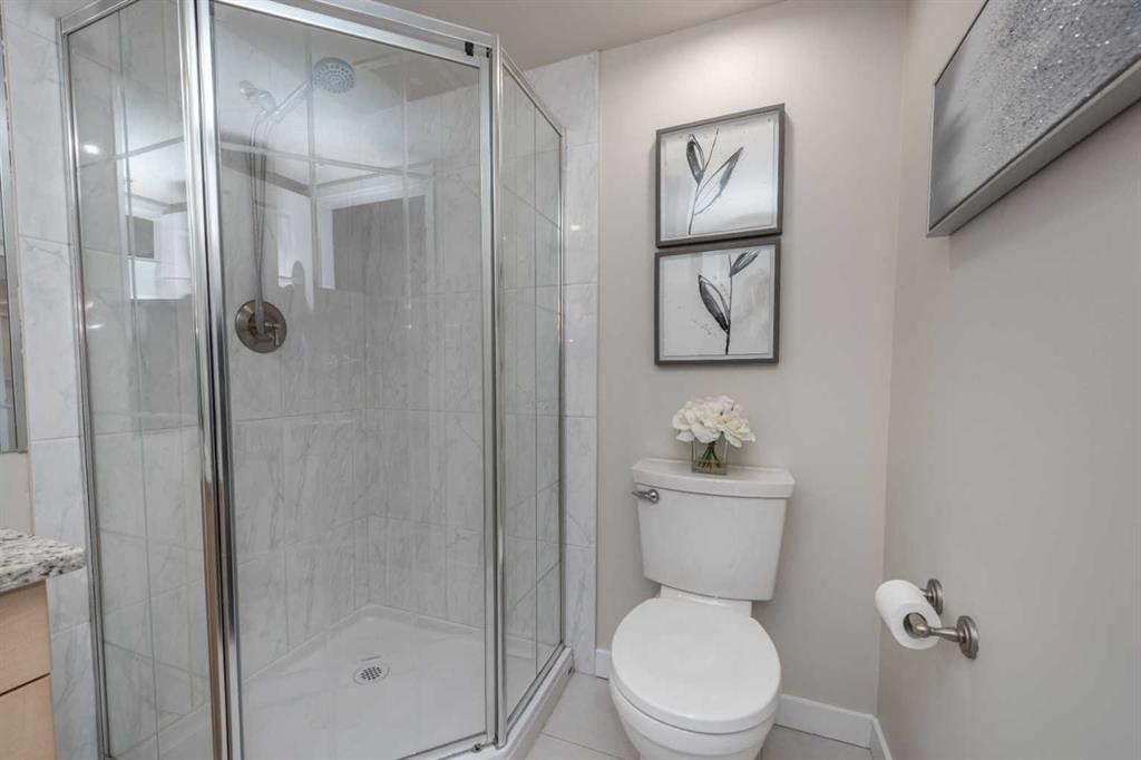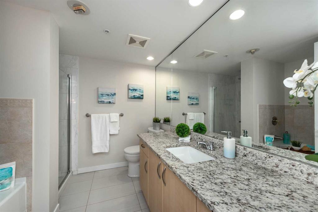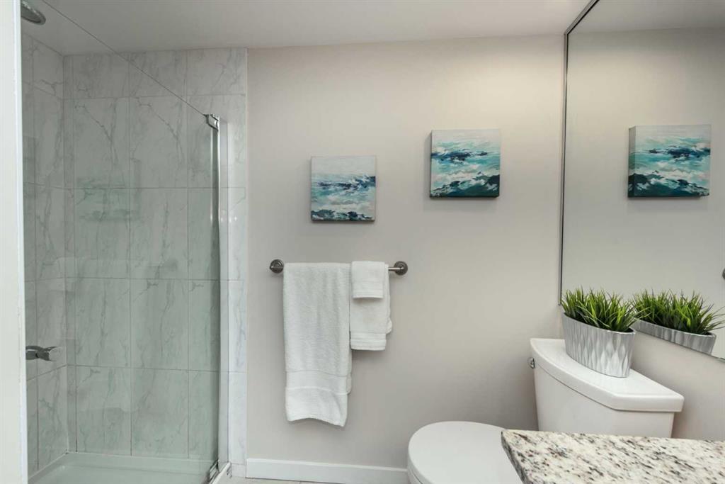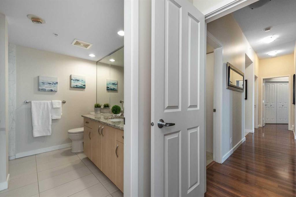 Penthouse at The Marquis - This is what you have been waiting for! Updated and renovated top floor, spacious 1274 SF river-side suite with oversized windows and extra height ceilings to take in the amazing North and West facing RIVER & MOUNTAIN VIEWS overlooking the Bow River. Freshly painted and showcasing a split bedroom design floor plan, this 2 bedroom PLUS DEN suite includes parking for 2 vehicles (tandem) plus additional storage locker. Entering the suite you are drawn to the open and spacious living and dining rooms – the view beckons! Cozy gas fireplace with marble tile front and mantle anchors the living room and oversized windows capture the views – sunset sky’s from here are stunning! The updated (in 2019), bright white kitchen overlooks the living area and offers ample granite counter space, breakfast ledge & stainless steel appliances. The primary bedroom is roomy and spacious and accommodates king sized furniture & features walk-through closets, 4 piece ensuite bath with soaker tub, separate shower and ample granite counter vanity space. Second bedroom easily fits queen-sized furniture, offers an extra closet as well and the 3 piece renovated bath (granite counters here, too!) is adjacent – perfect for a room mate or for when guests stay over. Don’t forget the den – it’s a great size and features floor to ceiling window on to the living room. Laundry room (new washer & dryer in 2024) with lots of storage space & extra shelving. Easy upkeep tile and laminate flooring are throughout the suite. The Marquis offers FULL concrete construction, including between suites, and all common areas have recently been renovated and are meticulously maintained. The gracious front lobby welcomes your guests and building amenities include 24 indoor visitor parking stalls, exercise facilities with his/her change rooms, yoga studio, a party room for gatherings and bike storage. With a walkability score of 95, this West Downtown location is amazing – super close to the Bow River pathways, Prince’s Island park, coffee shops, boutiques and great restaurants to explore, 1 block to the LRT (downtown free zone), & the fun and excitement of Kensington is just across the river. This is a pet friendly building (dogs under 20 lbs, with Board approval) – Start living the lifestyle you’ve dreamed of and call to view today!