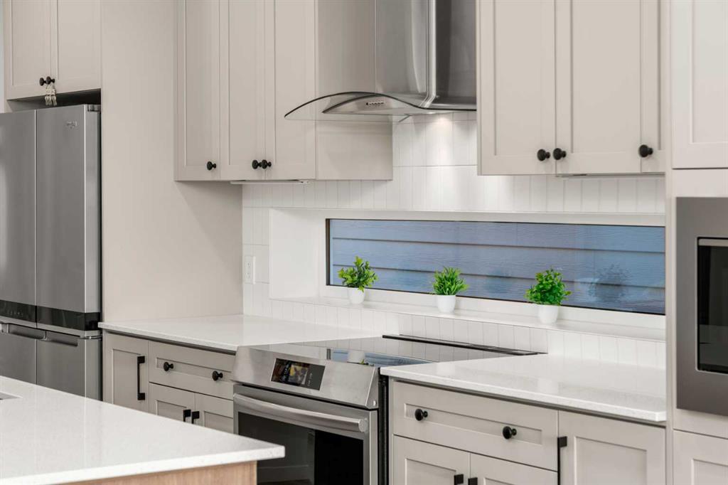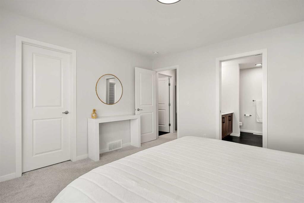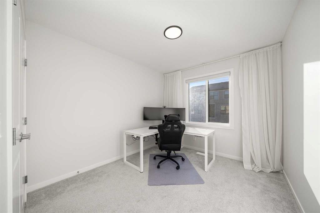 Immaculate and truly move-in ready, this Calbridge Homes Vista EV shows like new and offers a rare opportunity to enjoy a fully finished home without the wait or work of building. The modern layout spans three levels with three bedrooms and two and a half bathrooms, capped by a stunning third-floor bonus room that opens directly onto an incredible rooftop patio, a rare and highly desirable feature. The main level features a bright, open layout with 9-foot ceilings and great flow for everyday living. The kitchen offers ceiling-height cabinetry, a dedicated coffee bar, ample pantry space, and a large island, while the dining area opens directly to the rear deck, creating an easy indoor-outdoor connection. Upstairs, the primary bedroom offers generous space and a walk-in closet, paired with a well-appointed ensuite featuring dual vanities, a glass-enclosed shower, and a soaker tub. The conveniently located upstairs laundry area sits just steps from the primary bedroom. Two additional bedrooms and a full bathroom complete the second level. The third-floor bonus room is a true retreat, offering a bright, relaxed space to unwind, work, or host friends, with direct access to the rooftop patio and open-sky views that make it feel like a private escape above it all. Outside, the home is fully finished with low-maintenance landscaping, full fencing, and a spacious rear deck, making it truly ready to enjoy from day one. Located in Alpine Park, one of Calgary’s most thoughtfully designed new communities, residents enjoy walkable pathways, parks and picnic areas, community gardens, Skyline Pond, tennis and basketball courts, Central Park with city views, and a fully fenced, off-leash dog park within walking distance. The upcoming Alpine Park Village Centre will add cafés, shops, and everyday conveniences just minutes from your door. A rare combination of like-new condition, exceptional outdoor space, and a thoughtfully designed community, this home delivers an elevated and connected lifestyle.