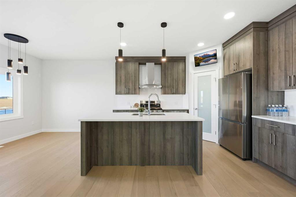 Welcome to 14 Cornerstone Parade NE, a brand-new 1,924 sq. ft. home located in the prime community of Cornerstone, backing directly onto green space with a future high school site—an exceptional setting for families and long-term value. This beautifully designed home features a modern open-concept main floor with a spacious living area, a double door entrance to main-floor office/or den, that flows seamlessly into a well-appointed kitchen and dining space, perfect for everyday living and entertaining. A functional foyer and convenient two-piece bathroom complete the main level. The upgrade list includes: fire place in living room, gas stove, chimney hood, cabinets to ceiling height, gas line garage, plumbing rough ins in garage, iron railing, big windows. Upstairs, the expansive primary bedroom offers a true private retreat with a walk-in closet and a luxurious five-piece ensuite. Two additional generously sized bedrooms, a family room, a full four-piece bathroom, and a dedicated laundry room provide outstanding comfort and functionality for the entire household. All toilet seats have been upgraded, lighting package has been upgraded, plus titles in the washrooms. The home also includes an under-construction 2-bedroom legal basement suite, with framing already completed. Once finished, the property will offer a total of 5 bedrooms and 3.5 bathrooms, including a legal kitchen, separate side entrance. Additional highlights include an attached double garage, ample storage space, and the peace of mind that comes with owning a brand-new home, eliminating concerns associated with older properties. All seasonal work will be completed by the builder. Ideally located just a few minutes’ walk to Cornerstone Chalo Fresco Plaza, with bus service only 3–4 minutes away, and close to parks, schools, shopping, and major amenities—this is a rare opportunity to own a versatile, income-generating home in one of Calgary’s fastest-growing communities.