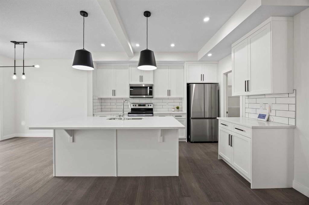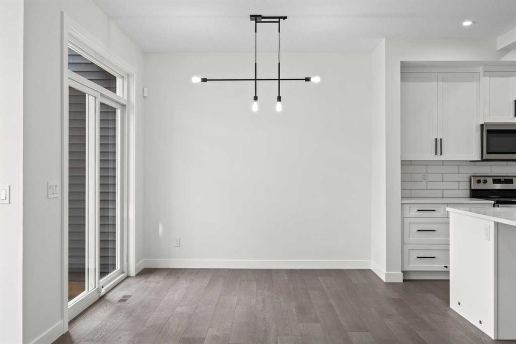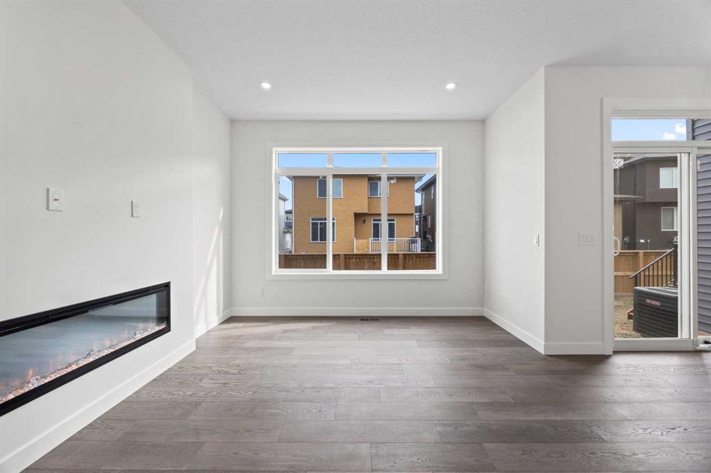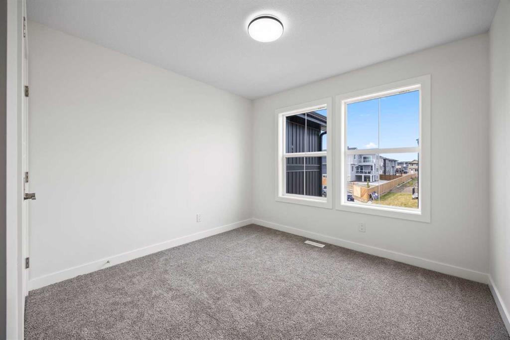 BRAND NEW SEMI DETACHED | LOADED WITH UPGRADES | SEPARATE ENTRANCE. Welcome to this brand new semi-detached home with a front double attached garage, perfectly located in the desirable community of Waterford. Designed with style and functionality in mind, this home boasts numerous upgrades throughout. Step inside to a bright, open foyer leading to the main floor, featuring 9-foot ceilings and beautiful engineered hardwood throughout. The open-concept kitchen showcases quartz countertops, stainless steel appliances, upgraded light fixtures, and painted cabinetry to ceiling height. It flows seamlessly into the spacious living room with an electric fireplace and dining area overlooking the large backyard — ideal for summer BBQs and outdoor entertaining. A convenient 2-piece bathroom completes the main level. Upstairs, the home offers three generously sized bedrooms, each with ample natural light and closet space. The primary suite is a true retreat, featuring a spacious walk-in closet and a luxurious ensuite with dual vanities. The additional bedrooms are perfect for family, guests, or a home office, and share a well-appointed 4-piece bathroom. Completing the upper level is a full-size laundry room for ultimate convenience. The unfinished basement includes a separate side entrance, providing flexibility for a future living space, guest suite, or investment opportunity. Tucked away on a quiet street, this home is just minutes from all the amenities Chestermere offers, including schools, parks, shopping, and the lake