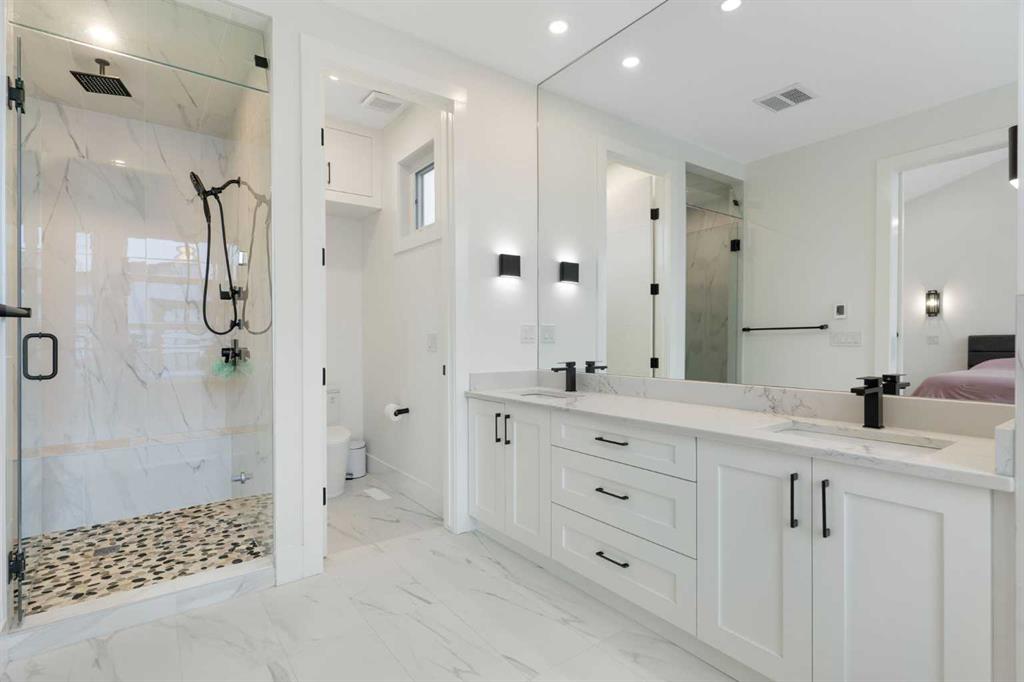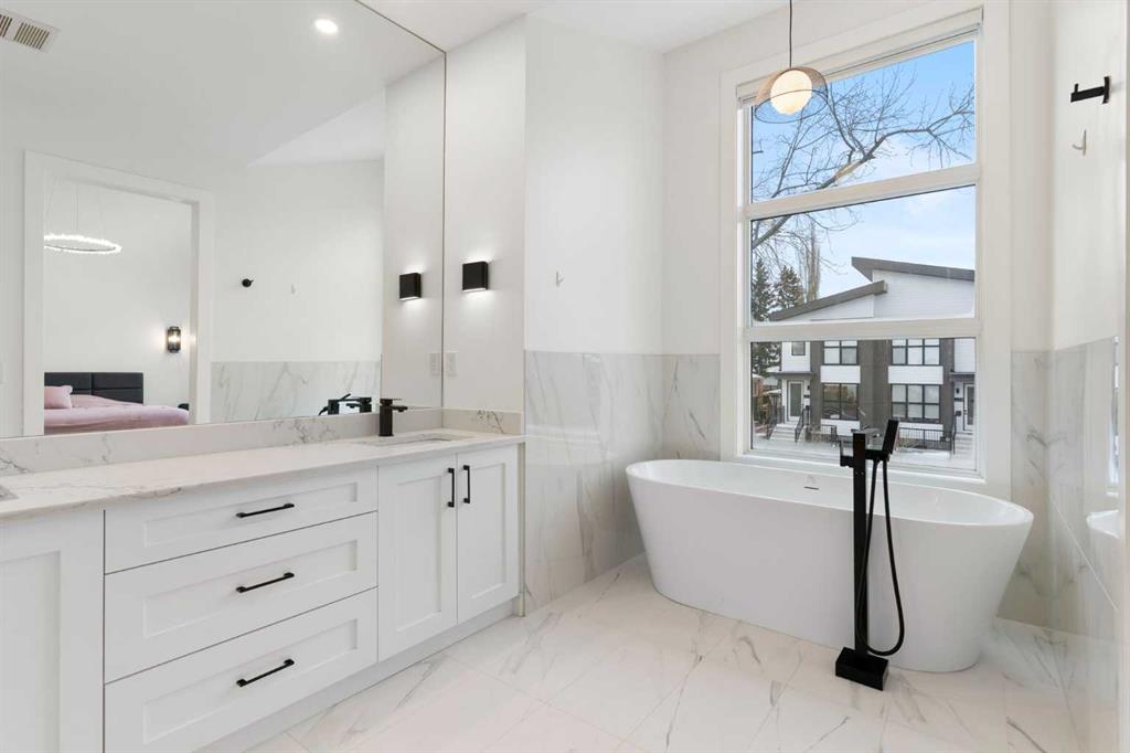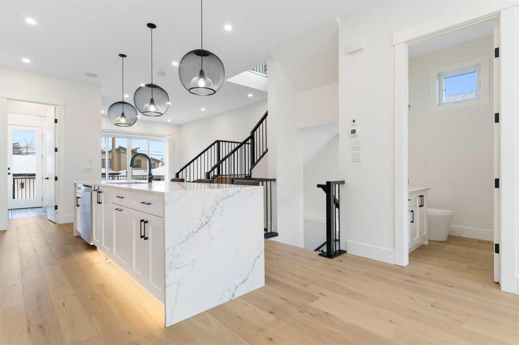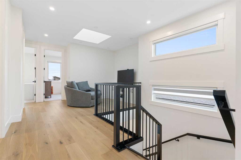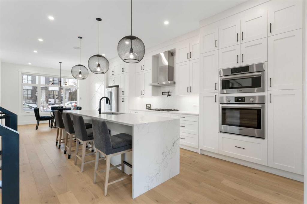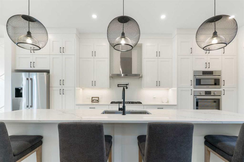 This is the kind of inner-city home that rarely hits the market—just shy of 3,000 sq. ft. of beautifully developed space, and no expense spared on the original build. A newer semi-attached infill with a layout, lot, and upgrade package that truly stands out in today’s market. Tuxedo is one of Calgary’s most desirable inner-city communities—offering the perfect blend of character, convenience, and lifestyle. Centrally located between Fox Hollow Golf Course, Confederation Park, downtown, and the Bow River, it’s easy to see why buyers love this neighbourhood. Sitting on an extra-deep 120’ lot, this property gives you something that’s incredibly hard to find in the inner city: an expansive full-width deck across the entire back of the home, a full double detached garage, and still plenty of green space to enjoy. Inside, the upgrades are extensive. The main floor features 10’ ceilings, oversized doors, and larger windows everywhere they could be added—flooding the home with natural light. Thoughtful finishing work continues throughout with elevated shaker cabinetry to the ceiling, feature walls, and multiple entertainment, bar, and fireplace areas that bring both style and warmth to the home. You’ll also love the functional prep/bar area between the kitchen and back mudroom, plus built-in lockers designed for real life. The kitchen is a true showstopper with a Bosch appliance package, toe-kick and cabinet lighting, a pot filler, herringbone tile backsplash, and a massive 12’ quartz island with waterfall edges. The main living area was made to entertain and flows seamlessly outdoors through an impressive 8’x8’ patio door assembly onto your private deck. Upstairs, the layout continues to impress with 4 bedrooms and 4 bathrooms, a loft-style entertainment area, and a full laundry room with sink. You’ll also find two spacious secondary bedrooms and a stunning primary retreat featuring vaulted ceilings, a wall of windows, a generous walk-in closet, and a beautifully upgraded 5-piece ensuite. Transom windows on the second level and skylights take the natural light to another level and add to the home’s bright, airy feel. Downstairs offers even more space to relax and host, with a full entertainment zone featuring built-ins, a wet bar with black tile backsplash, wine storage, beverage fridge area, sink, plus a full bathroom, an additional bedroom, and a dedicated gym with rubber flooring and floor-to-ceiling mirrors. Simply put, you can’t build this property today for anywhere close to the same price—and even if you could, it wouldn’t be on a 120’ deep lot in a location like this. Priced to sell, don’t wait to book your showing or reach out for more details. And when you live in Tuxedo, you’re not just buying a home—you’re buying one of Calgary’s best inner-city lifestyles.