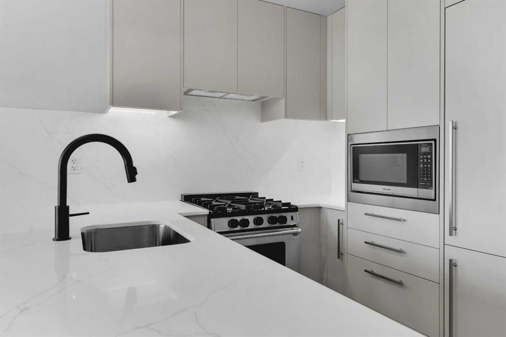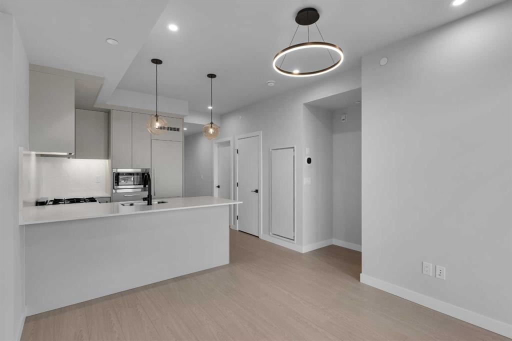 Welcome to Plaza at West District. Enjoy elevated urban living in this beautifully designed residence, perfectly positioned on the top floor of an award-winning concrete building by TRUMAN in Calgary’s highly sought-after West District community. With no neighbours above, this home offers exceptional privacy and quiet—an increasingly rare and valuable feature for condo living. Inside, the open-concept layout showcases modern finishes and a thoughtfully planned design that maximizes both comfort and functionality. The bright living and dining area flows seamlessly into a contemporary kitchen featuring premium appliances, sleek cabinetry, and efficient storage—ideal for everyday living as well as entertaining. Large windows invite abundant natural light while offering a peaceful vantage point above the surrounding community. Step onto your private balcony and enjoy the added sense of openness that comes with top-floor living—perfect for morning coffee, relaxing evenings, or simply unwinding without the distraction of overhead noise. The bedroom(s) provide comfortable, private retreats, complemented by a stylish, well-appointed bathroom designed with both form and function in mind. Additional features include a titled underground parking stall, ensuring secure and convenient access year-round. Residents of Plaza enjoy premium building amenities, including a fully equipped fitness centre and an inviting owners’ lounge—ideal for working remotely, socializing, or relaxing. Located in one of Calgary’s most desirable and walkable urban communities, this home places you just steps from boutique shopping, local services, green spaces, and some of the city’s best dining and entertainment options. West District continues to be one of the most preferred locations among Calgarians, offering a vibrant lifestyle with unmatched convenience. Live Better. Live TRUMAN